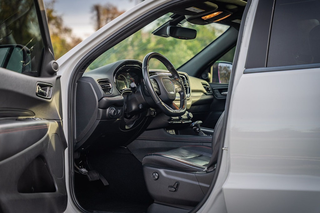 This Durango GT Plus includes Quick Order Package 2BG GT Plus (1-Year Trial (Registration Required), 10.1" Touchscreen Display, 115V Auxiliary Power Outlet, 180 Amp Alternator, 4G LTE Wi-Fi Hot Spot, 7 & 4 Pin Wiring Harness, Adaptive Cruise Control w/Stop, Apple CarPlay, Auto-Dimming Exterior Driver Mirror, Black Roof Rails, Blind Spot w/Trailer Detection, Class IV Receiver Hitch, Connected Travel & Traffic Services, Disassociated Touchscreen Display, Dual Remote USB Port - Charge Only, Exterior Mirrors w/Heating Element, Exterior Mirrors w/Memory, Exterior Mirrors w/Supplemental Signals, Floor Console w/Leather Armrest, For Details, Visit DriveUconnect.com, Full Speed Forward Collision Warning Plus, Global Telematics Box Module (TBM), Gloss Black Exterior Mirrors, Google Android Auto, GPS Antenna Input, GPS Navigation, HD Radio, Heated Second Row Seats, Heavy-Duty Engine Cooling, Integrated Center Stack Radio, Integrated Roof Rail Crossbars, Integrated Voice Command w/Bluetooth, Leather Trimmed Bucket Seats, Leather Wrapped Door Panels, LED Auxiliary Low Beam & Turn Signal, Power 6x9 Multi-Function Foldaway Mirrors, Power 8-Way Driver Memory 8-Way Passenger Seats, Power Driver/Passenger 4-Way Lumbar Adjust, Power Sunroof, Power Tilt & Telescopic Steering Column, Radio: Uconnect 5 Nav w/10.1" Display, Radio/Driver Seat/Mirrors Memory, Red Accent Stitching, SiriusXM Guardian - Included Trial (B), SiriusXM w/360L, Trailer Brake Control, USB Host Flip, and Ventilated Front Seats), 3.27 Rear Axle Ratio, 3rd row seats: split-bench, 4-Wheel Disc Brakes, 6 Speakers, ABS brakes, Air Conditioning, Alloy wheels, AM/FM radio: SiriusXM, Apple CarPlay/Android Auto, Auto-dimming Rear-View mirror, Auto-leveling suspension, Automatic temperature control, Brake assist, Bumpers: body-color, Cloth Bucket Seats w/Shift Insert, Compass, Delay-off headlights, Driver door bin, Driver vanity mirror, Dual front impact airbags, Dual front side impact airbags, Electronic Stability Control, Four wheel independent suspension, Front anti-roll bar, Front Bucket Seats, Front Center Armrest w/Storage, Front dual zone A/C, Front License Plate Bracket, Front reading lights, Fully automatic headlights, Garage door transmitter, Heated door mirrors, Heated front seats, Heated steering wheel, Illuminated entry, Knee airbag, Leather steering wheel, Low tire pressure warning, Occupant sensing airbag, Outside temperature display, Overhead airbag, Overhead console, Panic alarm, ParkView Rear Back-Up Camera, Passenger door bin, Passenger vanity mirror, Power door mirrors, Power driver seat, Power Liftgate, Power steering, Power windows, Radio data system, Radio: Uconnect 4 w/8.4" Display, Rear air conditioning, Rear anti-roll bar, Rear Load Leveling Suspension, Rear reading lights, Rear seat center armrest, Rear window defroster, Rear window wiper, Remote keyless entry, Speed control, Speed-sensing steering, Speed-Sensitive Wipers, Split folding rear seat, Spoiler, Sport steering wheel, Steering wheel mounted audio controls, Tachometer, Telescoping steering wheel, Tilt steering wheel, Traction control, Trip computer, Variably intermittent wipers, Voltmeter, and Wheels: 20" x 8.0" Fine Silver . While every effort has been made to ensure display of accurate data, the vehicle listings within this web site may not reflect all accurate vehicle items. All Inventory listed is subject to prior sale. The vehicle photo displayed may be an example only. Pricing throughout the web site does not include any options that may have been installed at the dealership. Please see the dealer for details. Vehicles may be in transit or currently in production. Some vehicles are shown with optional equipment. See the actual vehicle for complete accuracy of features, options & pricing. Because of the numerous possible combinations of vehicle models, styles, col