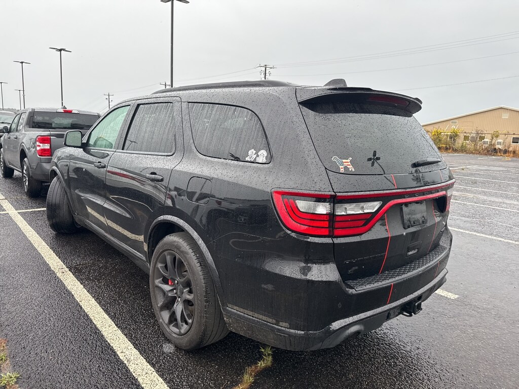 This vehicle comes equipped with Black Package (Eclipse Black Exhaust Tips, Gray Metallic Badges, Satin Black Dodge Tail Lamp Badge, and Wheels: 20" x 10" Lights Out Aluminum), Quick Order Package 29M SRT 392 Plus (7 & 4 Pin Wiring Harness, Adaptive Cruise Control w/Stop, Advanced Brake Assist, Black Roof Rails, Blind Spot w/Trailer Detection, Class IV Receiver Hitch, Full Speed Forward Collision Warning Plus, High Performance Laguna Leather Seats, Integrated Roof Rail Crossbars, Lane Departure Warning Plus, and Power Sunroof), AWD, 2nd Row Mini Console w/Cupholders, 3.70 Rear Axle Ratio, 3rd Row Floor Mat & Mini Console, 3rd row seats: split-bench, 4-Wheel Disc Brakes, 9 Speakers, ABS brakes, Adaptive suspension, Air Conditioning, Alloy wheels, AM/FM radio: SiriusXM w/360L, Apple CarPlay/Android Auto, Audio memory, Auto High-beam Headlights, Auto-dimming door mirrors, Auto-dimming Rear-View mirror, Automatic temperature control, Brake assist, Bumpers: body-color, Compass, Delay-off headlights, Driver door bin, Driver vanity mirror, Dual front impact airbags, Dual front side impact airbags, Electronic Stability Control, Emergency communication system, Four wheel independent suspension, Front anti-roll bar, Front Bucket Seats, Front Center Armrest w/Storage, Front dual zone A/C, Front reading lights, Fully automatic headlights, Garage door transmitter, Gloss Black Exterior Mirrors, Heated door mirrors, Heated front seats, Heated rear seats, Heated steering wheel, Illuminated entry, Knee airbag, Leather Shift Knob, Leather steering wheel, Leather Trimmed Bucket Seats, Low tire pressure warning, Memory seat, MOPAR Dual Stripes- Redline Red/Black, Navigation system: TomTom, Occupant sensing airbag, Outside temperature display, Overhead airbag, Overhead console, Panic alarm, ParkView Rear Back-Up Camera, Passenger door bin, Passenger vanity mirror, Power door mirrors, Power driver seat, Power Liftgate, Power passenger seat, Power steering, Power windows, Radio data system, Radio: Uconnect 5 Nav w/10.1" Display, Rain sensing wipers, Rear air conditioning, Rear anti-roll bar, Rear reading lights, Rear window defroster, Rear window wiper, Remote keyless entry, Security system, Speed control, Speed-sensing steering, Speed-Sensitive Wipers, Split folding rear seat, Spoiler, Sport steering wheel, Steering wheel mounted audio controls, Tachometer, Telescoping steering wheel, Tilt steering wheel, Traction control, Trip computer, Turn signal indicator mirrors, Variably intermittent wipers, Ventilated front seats, Voltmeter, and Wheels: 20" x 10" Hyper Black Aluminum.