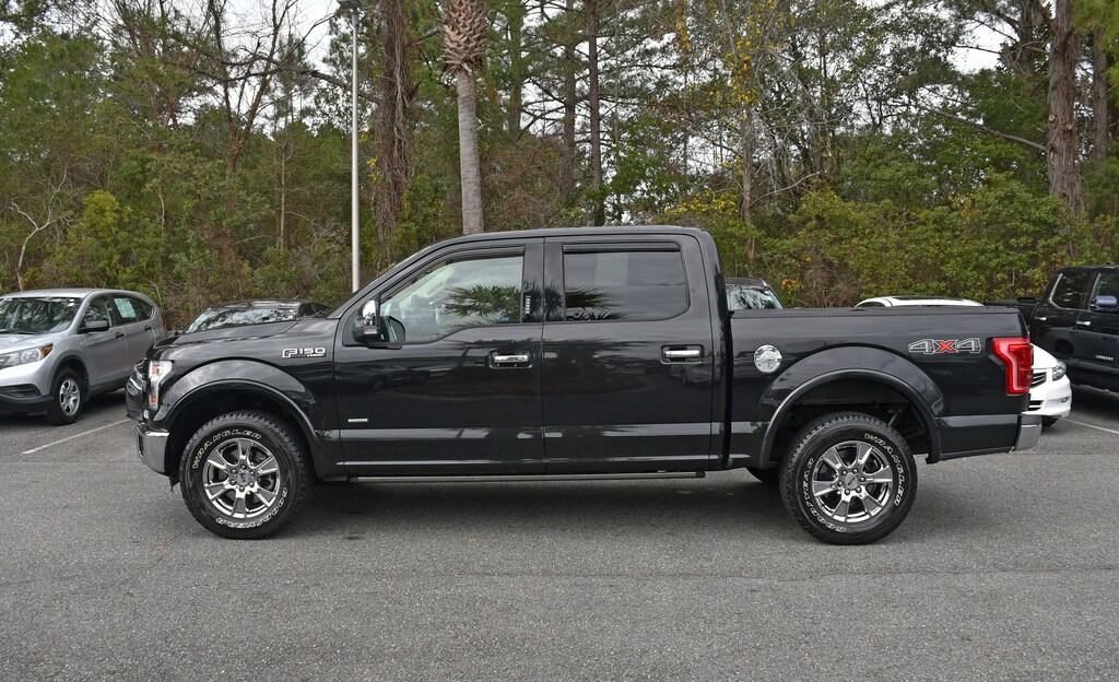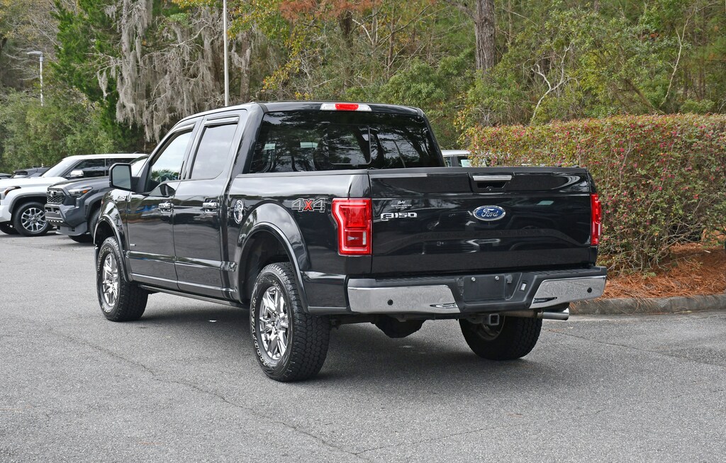 ***Stokes Toyota Hilton Head*** 2015 Ford F-150 Lariat in Tuxedo Black Metallic, Factory Equipped With: 110V/400W Outlet, 2nd Row Heated Seats, Automatic High Beam w/Rain-Sensing Wipers, BLIS Blind Spot Information System, Chrome 3-Bar Style Grille w/Chrome Surround, Chrome Angular Step Bars, Chrome Door Handles w/Body-Color Bezel, Chrome Skull Caps on Exterior Mirrors, Equipment Group 502A Luxury, Heated Steering Wheel, Lariat Chrome Appearance Package, Leather-Trimmed Bucket Seats, LED Side-Mirror Spotlights, Power Glass Sideview Mirr w/Chrome Skull Caps, Power Tilt/Telescoping Steering Column w/Memory, Quad Beam LED Headlamps & Taillamps, Radio: Sony Single CD w/HD & SiriusXM Satellite, Remote Start System, Reverse Sensing System, Single-Tip Chrome Exhaust, Universal Garage Door Opener, Voice-Activated Navigation, Wheels: 18" Chrome-Like PVD. CARFAX One-Owner.