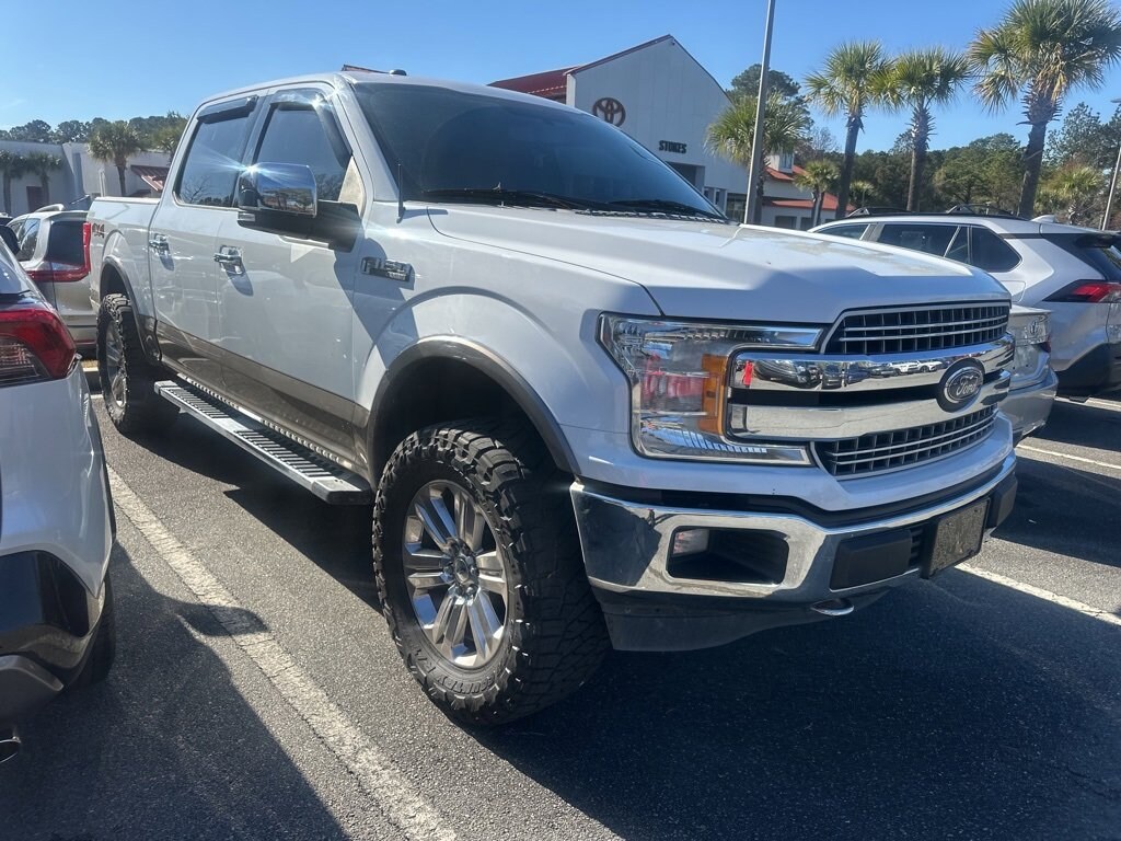 ***Stokes Toyota Hilton Head*** 4x4** 2018 Ford F-150 Lariat in Oxford White, Factory Equipped With: 110V/400W Outlet, BLIS Blind Spot Information System, Chrome 2-Bar Grille w/4 Minor Bars, Chrome Angular Step Bars, Chrome Door & Tailgate Handles w/Body-Color Bezel, Chrome Skull Caps on Exterior Mirrors, Equipment Group 501A Mid, Lariat Chrome Appearance Package, LED Sideview Mirror Spotlights, Power Glass Sideview Mirr w/Body-Color Skull Caps, Remote Start System w/Remote Tailgate Release, Reverse Sensing System, Single-Tip Chrome Exhaust, Universal Garage Door Opener, Wheels: 18" Chrome-Like PVD.