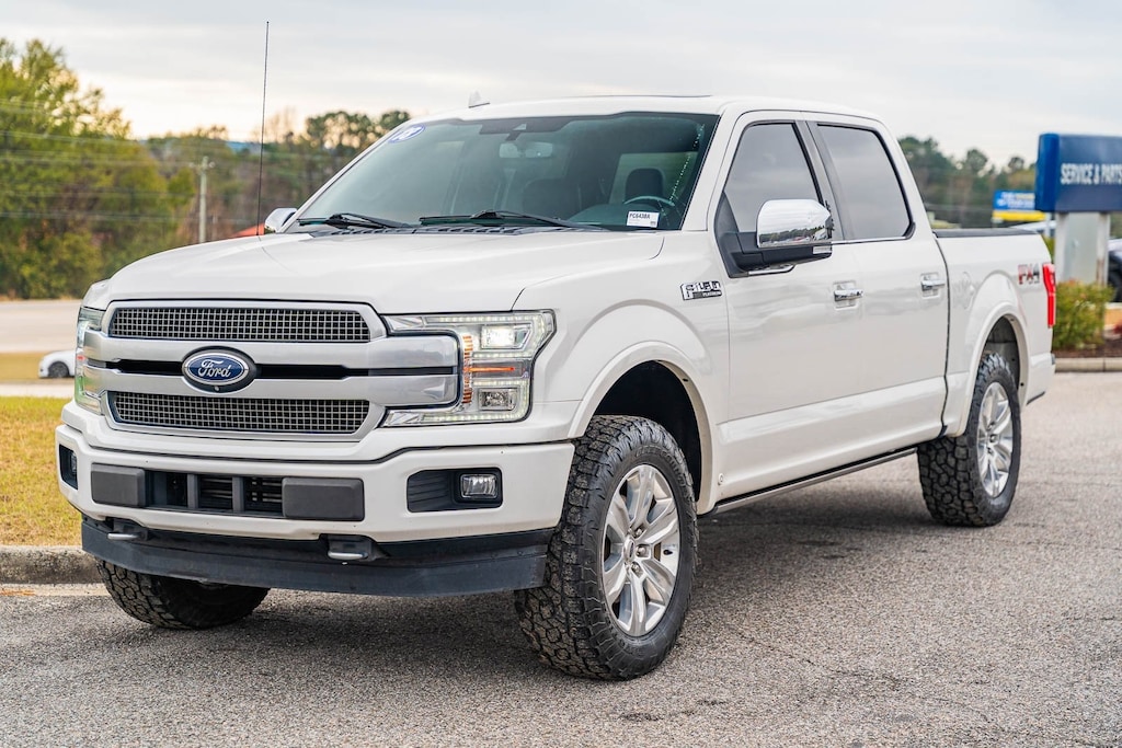 This vehicle comes equipped with Equipment Group 701A Luxury (Adaptive Cruise Control and Tailgate Step w/Tailgate Lift Assist), FX4 Off-Road Package (4x4 FX4 Off-Road Bodyside Decal, Hill Descent Control, and Off-Road Tuned Front Shock Absorbers), GVWR: 7,050 lbs Payload Package, Max Trailer Tow Package (Class IV Trailer Hitch Receiver, Extended Range 36 Gallon Fuel Tank, Higher-Capacity Radiator, Higher-Power Cooling Fans, Integrated Trailer Brake Controller, Pro Trailer Backup Assist, and Upgraded Front Stabilizer Bar), Technology Package (Active Park Assist and Lane-Keeping System), Ford Blue Certified Certified, 4WD, 10 Speakers, 20" Polished Aluminum Wheels, 3.31 Axle Ratio, 4-Wheel Disc Brakes, ABS brakes, Adjustable pedals, Air Conditioning, Alloy wheels, AM/FM radio: SiriusXM, AppLink/Apple CarPlay and Android Auto, Auto High-beam Headlights, Auto tilt-away steering wheel, Auto-dimming door mirrors, Auto-dimming Rear-View mirror, Automatic temperature control, Black Unique Multi-Contour Leather Bucket Seats, Brake assist, Bumpers: body-color, CD player, Compass, Delay-off headlights, Driver door bin, Driver vanity mirror, Dual front impact airbags, Dual front side impact airbags, Electronic Stability Control, Emergency communication system: SYNC 3 911 Assist, Exterior Parking Camera Rear, Front anti-roll bar, Front Bucket Seats, Front Center Armrest, Front dual zone A/C, Front fog lights, Front reading lights, Front wheel independent suspension, Fully automatic headlights, Garage door transmitter, Genuine wood door panel insert, Heated door mirrors, Heated front seats, Heated rear seats, Heated steering wheel, Illuminated entry, Low tire pressure warning, Memory seat, Navigation System, Occupant sensing airbag, Outside temperature display, Overhead airbag, Overhead console, Panic alarm, Passenger door bin, Passenger vanity mirror, Pedal memory, Power door mirrors, Power driver seat, Power passenger seat, Power steering, Power windows, Radio data system, Radio: B&O Play Premium Audio System, Rain sensing wipers, Rear Parking Sensors, Rear reading lights, Rear seat center armrest, Rear step bumper, Rear window defroster, Remote keyless entry, Security system, Speed control, Speed-sensing steering, Split folding rear seat, Steering wheel memory, Steering wheel mounted audio controls, SYNC 3, Tachometer, Telescoping steering wheel, Tilt steering wheel, Traction control, Trip computer, Turn signal indicator mirrors, Twin Panel Moonroof, Variably intermittent wipers, Ventilated front seats, Voice-Activated Touchscreen Navigation System, and Voltmeter.