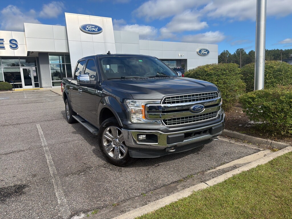 This vehicle comes equipped with Equipment Group 501A Mid (110V/400W Outlet, BLIS Blind Spot Information System, LED Sideview Mirror Spotlights, Power Glass Sideview Mirr w/Body-Color Skull Caps, Remote Start System w/Remote Tailgate Release, Reverse Sensing System, and Universal Garage Door Opener), FX4 Off-Road Package (Tray Style Floor Liner), Lariat Chrome Appearance Package (Chrome 2-Bar Grille w/4 Minor Bars, Chrome Angular Step Bars, Chrome Door & Tailgate Handles w/Body-Color Bezel, Chrome Skull Caps on Exterior Mirrors, Single-Tip Chrome Exhaust, and Wheels: 18" Chrome-Like PVD), Max Trailer Tow Package (Class IV Trailer Hitch Receiver, Electronic Locking w/3.55 Axle Ratio, Engine Oil Cooler, Extended Range 36 Gallon Fuel Tank, Integrated Trailer Brake Controller, Pro Trailer Backup Assist, and Upgraded Front Stabilizer Bar), 4WD, 18" Machined-Aluminum Wheels, 4-Wheel Disc Brakes, 7 Speakers, ABS brakes, Adjustable pedals, Air Conditioning, Alloy wheels, AM/FM radio: SiriusXM, AppLink/Apple CarPlay and Android Auto, Auto High-beam Headlights, Auto-dimming door mirrors, Auto-dimming Rear-View mirror, Automatic temperature control, Brake assist, Bumpers: chrome, Compass, Delay-off headlights, Driver door bin, Driver vanity mirror, Dual front impact airbags, Dual front side impact airbags, Electronic Stability Control, Emergency communication system: SYNC 3 911 Assist, Exterior Parking Camera Rear, Front anti-roll bar, Front Center Armrest w/Storage, Front dual zone A/C, Front fog lights, Front reading lights, Front wheel independent suspension, Fully automatic headlights, Heated door mirrors, Heated front seats, Illuminated entry, Leather-Trimmed 40/20/40 Front Seat, Low tire pressure warning, Memory seat, Occupant sensing airbag, Outside temperature display, Overhead airbag, Overhead console, Panic alarm, Passenger door bin, Passenger vanity mirror, Pedal memory, Power door mirrors, Power driver seat, Power passenger seat, Power steering, Power windows, Radio data system, Radio: AM/FM Stereo w/6 Speakers, Rear reading lights, Rear seat center armrest, Rear step bumper, Rear window defroster, Remote keyless entry, Security system, SiriusXM Radio, Speed control, Speed-sensing steering, Split folding rear seat, Steering wheel mounted audio controls, SYNC 3, Tachometer, Tailgate Step w/Tailgate Lift Assist, Telescoping steering wheel, Tilt steering wheel, Traction control, Trip computer, Turn signal indicator mirrors, Variably intermittent wipers, Ventilated front seats, Voice-Activated Touchscreen Navigation, Voltmeter, Wheel Well Liner, and Wheels: 20" Chrome-Like PVD.