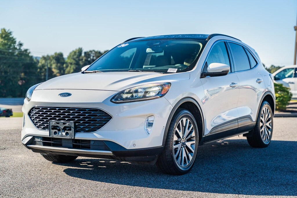 This vehicle comes equipped with Equipment Group 401A (Wireless Charging Pad), AWD, 10 Speakers, 3.47 Axle Ratio, 4-Wheel Disc Brakes, ABS brakes, Air Conditioning, Alloy wheels, AM/FM radio: SiriusXM, Auto High-beam Headlights, Auto-dimming Rear-View mirror, Automatic temperature control, Brake assist, Bumpers: body-color, Compass, Delay-off headlights, Driver door bin, Driver vanity mirror, Dual front impact airbags, Dual front side impact airbags, Electronic Stability Control, Emergency communication system: SYNC 3 911 Assist, Exterior Parking Camera Rear, FordPass Connect, Four wheel independent suspension, Front & Rear Floor Liners, Front anti-roll bar, Front Bucket Seats, Front Center Armrest, Front dual zone A/C, Front fog lights, Front reading lights, Fully automatic headlights, Garage door transmitter, Heated door mirrors, Heated front seats, Heated Leather-Trimmed Front Sport Contour Seats, Heated steering wheel, Illuminated entry, Knee airbag, Leather steering wheel, Low tire pressure warning, Memory seat, Navigation System, Occupant sensing airbag, Outside temperature display, Overhead airbag, Overhead console, Panic alarm, Panoramic Vista Roof, Passenger door bin, Passenger vanity mirror, Power door mirrors, Power driver seat, Power Liftgate, Power passenger seat, Power steering, Power windows, Radio data system, Radio: B&O Sound System by Bang & Olufsen, Rain sensing wipers, Rear anti-roll bar, Rear reading lights, Rear seat center armrest, Rear window defroster, Rear window wiper, Remote keyless entry, Security system, Speed control, Speed-sensing steering, Speed-Sensitive Wipers, Split folding rear seat, Spoiler, Steering wheel mounted audio controls, SYNC 3 Communications & Entertainment System, Tachometer, Telescoping steering wheel, Tilt steering wheel, Traction control, Trip computer, Turn signal indicator mirrors, Variably intermittent wipers, Voice-Activated Touchscreen Navigation System, and Wheels: 19" Machined-Face Aluminum.