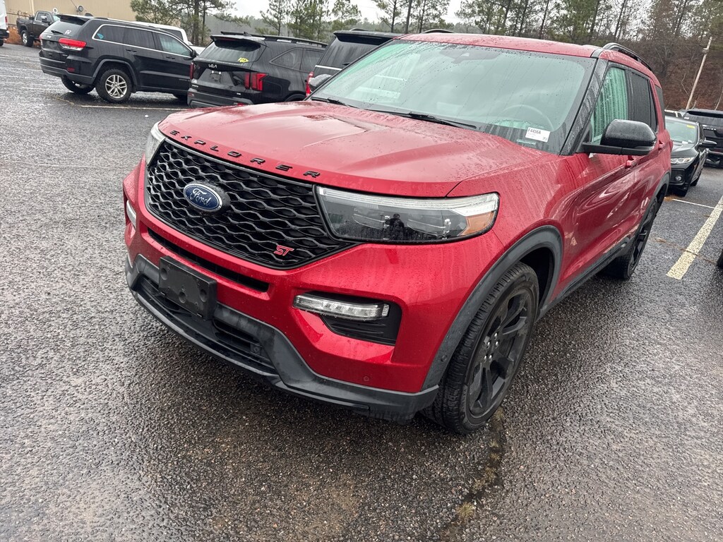 This vehicle comes equipped with Equipment Group 400A, Premium Technology Package (10.1" LCD Capacitive Portrait Touchscreen, 2 Additional Speakers, and Leather Htd/Ventilated Sport Captain's Chairs), ST Street Pack (Performance Front & Rear Brakes and Wheels: 21" Aluminum), 4WD, 12 Speakers, 20" Machined Aluminum w/Painted Pockets Wheels, 3.58 Non-Limited-Slip Rear Axle Ratio, 3rd row seats: bench, 4-Wheel Disc Brakes, ABS brakes, Air Conditioning, Alloy wheels, AM/FM radio: SiriusXM, Auto High-beam Headlights, Auto-dimming door mirrors, Auto-dimming Rear-View mirror, Automatic temperature control, Brake assist, Bumpers: body-color, Compass, Delay-off headlights, Driver door bin, Driver vanity mirror, Dual front impact airbags, Dual front side impact airbags, Electronic Stability Control, Emergency communication system: SYNC 3 911 Assist, Exterior Parking Camera Rear, FordPass Connect, Four wheel independent suspension, Front & Second Row Floor Liners, Front anti-roll bar, Front Bucket Seats, Front Center Armrest, Front dual zone A/C, Front fog lights, Front reading lights, Fully automatic headlights, Garage door transmitter: HomeLink, Heated door mirrors, Heated front seats, Heated rear seats, Heated steering wheel, Illuminated entry, Knee airbag, Leather steering wheel, Low tire pressure warning, Memory seat, Navigation System, Occupant sensing airbag, Outside temperature display, Overhead airbag, Overhead console, Panic alarm, Passenger door bin, Passenger vanity mirror, Power door mirrors, Power driver seat, Power Liftgate, Power passenger seat, Power steering, Power windows, Radio data system, Radio: B&O Sound System by Bang & Olufsen, Rain sensing wipers, Rear air conditioning, Rear anti-roll bar, Rear reading lights, Rear window defroster, Rear window wiper, Remote keyless entry, Roof rack: rails only, Security system, Speed control, Speed-sensing steering, Speed-Sensitive Wipers, Split folding rear seat, Spoiler, Sport steering wheel, Steering wheel memory, Steering wheel mounted audio controls, SYNC 3 Communications & Entertainment System, SYNC 3/Apple CarPlay/Android Auto, Tachometer, Telescoping steering wheel, Tilt steering wheel, Traction control, Trip computer, Turn signal indicator mirrors, Twin Panel Moonroof, Variably intermittent wipers, Ventilated front seats, and Voice-Activated Touchscreen Navigation System.