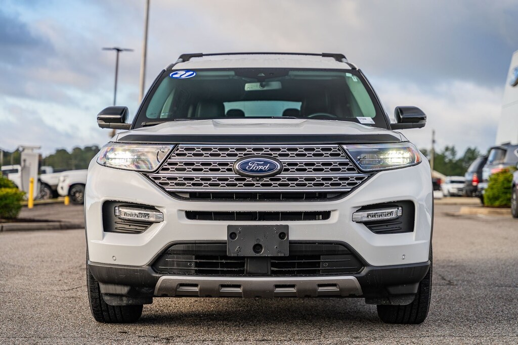 This vehicle comes equipped with Equipment Group 301A, Limited Convenience Package (110V/150W AC Power Outlet, 3rd Row PowerFold Seat, Hands-Free Foot-Activated Liftgate, Memory Driver's Seat, Power Tilt/Telescoping Steering Column, and Sideview Mirrors w/Gloss Black Caps), 4WD, 12 Speakers, 20" Premium Painted Aluminum Wheels, 3.58 Non-Limited-Slip Rear Axle Ratio, 3rd row seats: bench, 4-Wheel Disc Brakes, ABS brakes, Air Conditioning, Alloy wheels, AM/FM radio: SiriusXM, Auto High-beam Headlights, Auto-dimming Rear-View mirror, Automatic temperature control, Brake assist, Bumpers: body-color, Compass, Delay-off headlights, Driver door bin, Driver vanity mirror, Dual front impact airbags, Dual front side impact airbags, Electronic Stability Control, Emergency communication system: SYNC 3 911 Assist, Exterior Parking Camera Rear, FordPass Connect, Four wheel independent suspension, Front anti-roll bar, Front Bucket Seats, Front Center Armrest, Front dual zone A/C, Front fog lights, Front reading lights, Fully automatic headlights, Garage door transmitter: HomeLink, Heated door mirrors, Heated front seats, Heated rear seats, Heated steering wheel, Illuminated entry, Knee airbag, Leather Heated/Ventilated Captain's Chairs, Leather steering wheel, Low tire pressure warning, Navigation System, Occupant sensing airbag, Outside temperature display, Overhead airbag, Overhead console, Panic alarm, Passenger door bin, Passenger vanity mirror, Power door mirrors, Power driver seat, Power Liftgate, Power passenger seat, Power steering, Power windows, Radio data system, Radio: B&O Sound System by Bang & Olufsen, Rain sensing wipers, Rear air conditioning, Rear anti-roll bar, Rear reading lights, Rear window defroster, Rear window wiper, Remote keyless entry, Roof rack: rails only, Security system, Speed control, Speed-sensing steering, Speed-Sensitive Wipers, Split folding rear seat, Spoiler, Steering wheel mounted audio controls, SYNC 3 Communications & Entertainment System, SYNC 3/Apple CarPlay/Android Auto, Tachometer, Telescoping steering wheel, Tilt steering wheel, Traction control, Trip computer, Turn signal indicator mirrors, Variably intermittent wipers, Ventilated front seats, and Voice-Activated Touchscreen Navigation System.