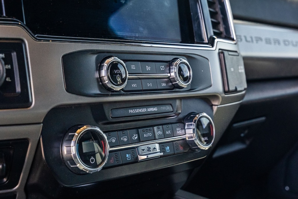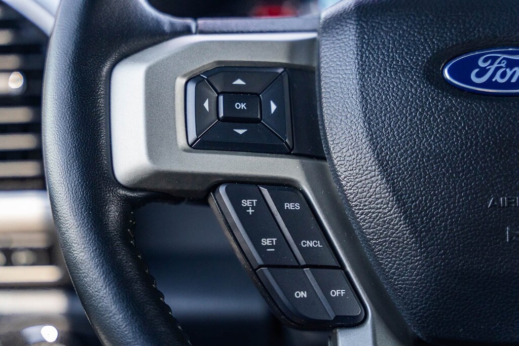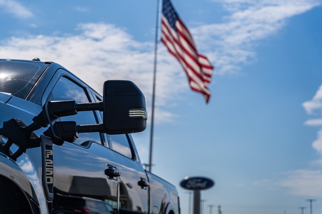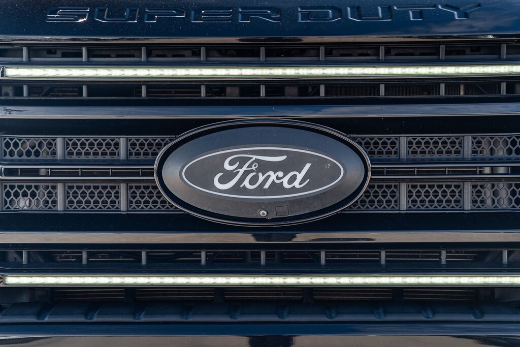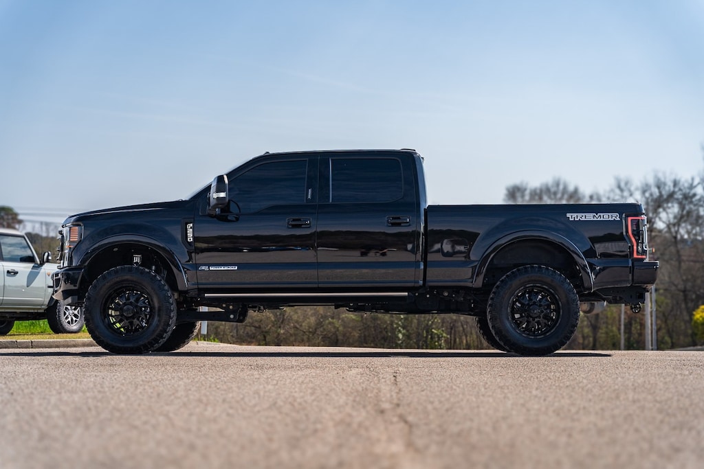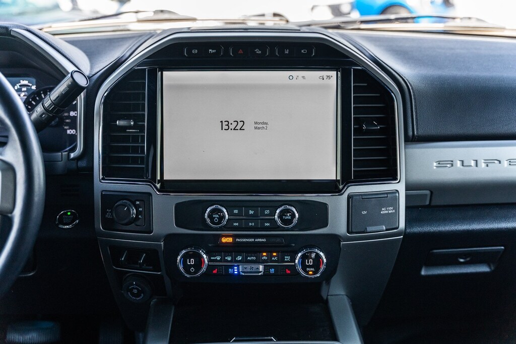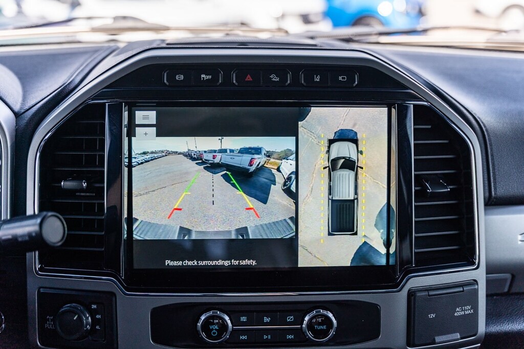 This vehicle comes equipped with GVWR: 10,000 lb Payload Package, High Capacity Trailer Tow Package, Lariat Black Appearance Pkg w/o Spray-In Bedliner (6" Ebony Black Angular Running Boards, Black Out Surrounds LED Only Headlamps, Body-Color Front & Rear Bumpers, Ebony Black Painted Front Grille Bars, Ebony Black Painted Mirror Caps, Rear Wheel Well Liners (Pre-Installed), and Wheels: 20" High-Gloss Black Premium Painted Alum), Lariat Ultimate Package (Ambient Lighting - Fixed Color, Easy Entry®/Exit Memory Driver's Seat Feature, Intelligent Access w/Push-Button Start, LED Box Lighting, Memory Power-Adjustable Pedals, Power Heated/Ventilated Driver Seat w/Memory, Power Heated/Ventilated Passenger Seat, Power Telescoping/Tilt Steering Wheel/Column, PowerScope Trailer Tow Mirrors w/Memory, Remote Start System, Remote Tailgate Release, and Tailgate Step & Handle), Order Code 608A, Pro Trailer Backup Assist - High Capacity (Lane Departure Warning System and Ultimate Trailer Tow Camera System), 4WD, 10 Speakers, 397 Amp Alternator, 4-Wheel Disc Brakes, ABS brakes, Adjustable pedals, Advanced Security Pack Inclination Sensor Removal, Air Conditioning, Alloy wheels, AM/FM radio: SiriusXM with 360L, Auto High-beam Headlights, Auto-dimming Rear-View mirror, Automatic temperature control, Brake assist, Bumpers: chrome, Compass, Delay-off headlights, Driver door bin, Driver vanity mirror, Dual front impact airbags, Dual front side impact airbags, Electronic Stability Control, Emergency communication system: SYNC 4 911 Assist, Engine Block Heater, Exterior Parking Camera Rear, Flow-Through Console, Front anti-roll bar, Front Bucket Seats, Front Center Armrest, Front dual zone A/C, Front fog lights, Front Leather Seating Surfaces 40/Console/40, Front reading lights, Fully automatic headlights, Heated door mirrors, Heated Steering Wheel, Illuminated entry, Leather steering wheel, LED Roof Clearance Lights, Low tire pressure warning, Navigation system: Connected Navigation, Outside temperature display, Overhead airbag, Overhead console, Panic alarm, Passenger door bin, Passenger vanity mirror, Power door mirrors, Power driver seat, Power passenger seat, Power steering, Power windows, Power-Deployable Running Boards, PowerScope Trailer Tow Mirrors w/Heat, Radio data system, Radio: B&O Sound System by Bang & Olufsen, Rain-Sensing Windshield Wipers, Rapid-Heat Supplemental Cab Heater, Rear Parking Sensors, Rear reading lights, Rear seat center armrest, Rear step bumper, Rear window defroster, Remote keyless entry, Security system, SiriusXM Radio w/360L, Speed control, Split folding rear seat, Steering wheel mounted audio controls, SYNC 4 w/Enhanced Voice Recognition, Tachometer, Telescoping steering wheel, Tilt steering wheel, Traction control, Trip computer, Turn signal indicator mirrors, Twin Panel Power Moonroof, Upfitter Switches (6), Variably intermittent wipers, and Wheels: 18" Bright Machined Cast Aluminum.