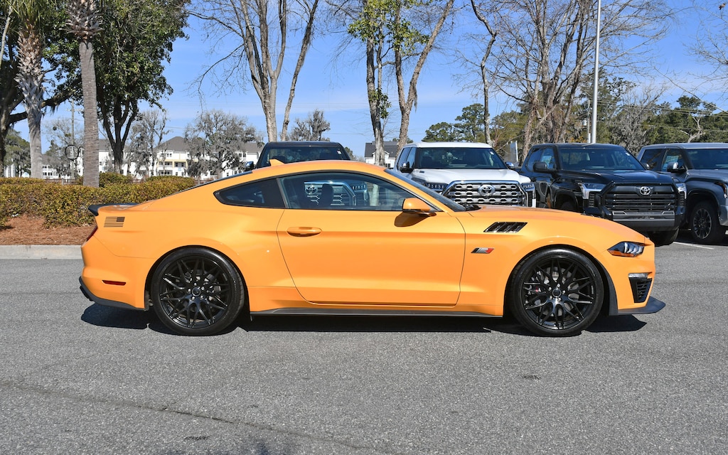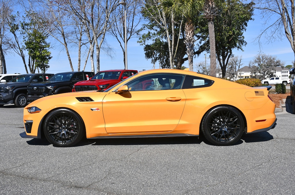 ***Stokes Toyota Hilton Head*** This a STAGE ONE ROUSH** 2022 Ford Mustang GT Premium in Cyber Orange Metallic Tricoat, factory Equipped With. 12" LCD Digital Instrument Cluster w/MyColor, Adaptive Cruise Control, Engine Spun Aluminum Instrument Panel, Equipment Group 401A, Ford Safe & Smart Package, Gauge Pack (Oil Pressure & Vacuum), GT Performance Package, Heated Steering Wheel, Heavy-Duty Front Springs, Integrated Turn Signals, Larger Brake Rotors, Larger Radiator, Leather-Trimmed Bucket Seats w/Color Accents, Memory Driver Seat, Mirrors & Ambient Lighting, Performance Rear Wing, Unique Stability Control, Voice-Activated Touch-Screen Navigation System, Wheels: 19" x 9" Fr & 19" x 9.5" Rr Ebony Black. CARFAX One-Owner. Clean CARFAX.
