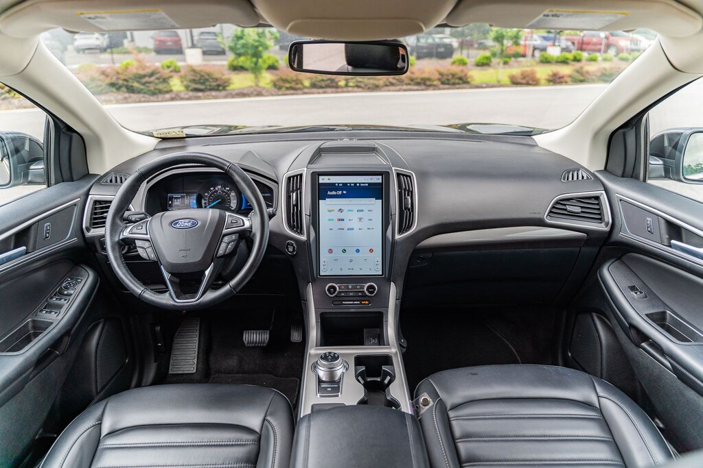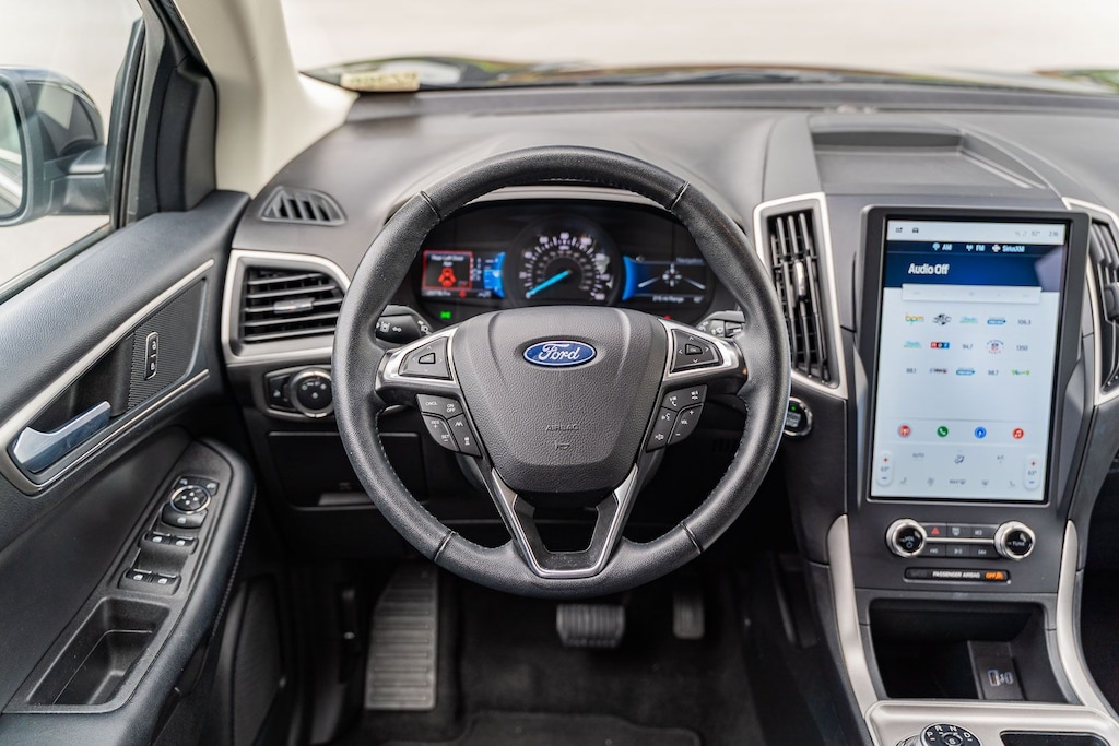 This Edge SEL includes Ford Co-Pilot360 Assist+ (Adaptive Cruise Control w/Stop & Go, Connected Navigation, Evasive Steering Assist, and Lane Centering), AWD, 3.80 Axle Ratio, 4-Wheel Disc Brakes, 6 Speakers, ABS brakes, ActiveX Trimmed Heated Bucket Seats, Air Conditioning, Alloy wheels, AM/FM radio: SiriusXM with 360L, AM/FM Stereo, Auto High-beam Headlights, Auto-dimming Rear-View mirror, Automatic temperature control, Brake assist, Bumpers: body-color, Compass, Delay-off headlights, Driver door bin, Driver vanity mirror, Dual front impact airbags, Dual front side impact airbags, Electronic Stability Control, Emergency communication system: SYNC 4 911 Assist, FordPass Connect, Four wheel independent suspension, Front anti-roll bar, Front Bucket Seats, Front Center Armrest w/Storage, Front dual zone A/C, Front License Plate Bracket, Front reading lights, Fully automatic headlights, Heated door mirrors, Heated front seats, Illuminated entry, Knee airbag, Leather steering wheel, Low tire pressure warning, Occupant sensing airbag, Outside temperature display, Overhead airbag, Overhead console, Panic alarm, Passenger door bin, Passenger vanity mirror, Power door mirrors, Power driver seat, Power Liftgate, Power passenger seat, Power steering, Power windows, Rear anti-roll bar, Rear Parking Sensors, Rear reading lights, Rear seat center armrest, Rear window defroster, Rear window wiper, Remote keyless entry, SiriusXM w/360L, Speed control, Speed-Sensitive Wipers, Split folding rear seat, Spoiler, Steering wheel mounted audio controls, SYNC 4A w/Enhanced Voice Recognition, Tachometer, Telescoping steering wheel, Tilt steering wheel, Traction control, Trip computer, and Variably intermittent wipers . While every effort has been made to ensure display of accurate data, the vehicle listings within this web site may not reflect all accurate vehicle items. All Inventory listed is subject to prior sale. The vehicle photo displayed may be an example only. Pricing throughout the web site does not include any options that may have been installed at the dealership. Please see the dealer for details. Vehicles may be in transit or currently in production. Some vehicles are shown with optional equipment. See the actual vehicle for complete accuracy of features, options & pricing. Because of the numerous possible combinations of vehicle models, styles, colors and options, the vehicle pictures on this site may not match your vehicle exactly; however, it will match as closely as possible. Some vehicle images shown are stock photos and may not reflect your exact choice of vehicle, color, trim and specification. Not responsible for pricing or typographical errors. Virtual Inventory, Available Configurations and In-Transit inventory contains vehicles that have not actually been manufactured. These vehicles show consumers sample vehicles that may be available. Pricing, Options, Color, and other data pertaining to these vehicles are provided for example only. All information pertaining to these vehicles should be independently verified through the dealer. 21/28 City/Highway MPG