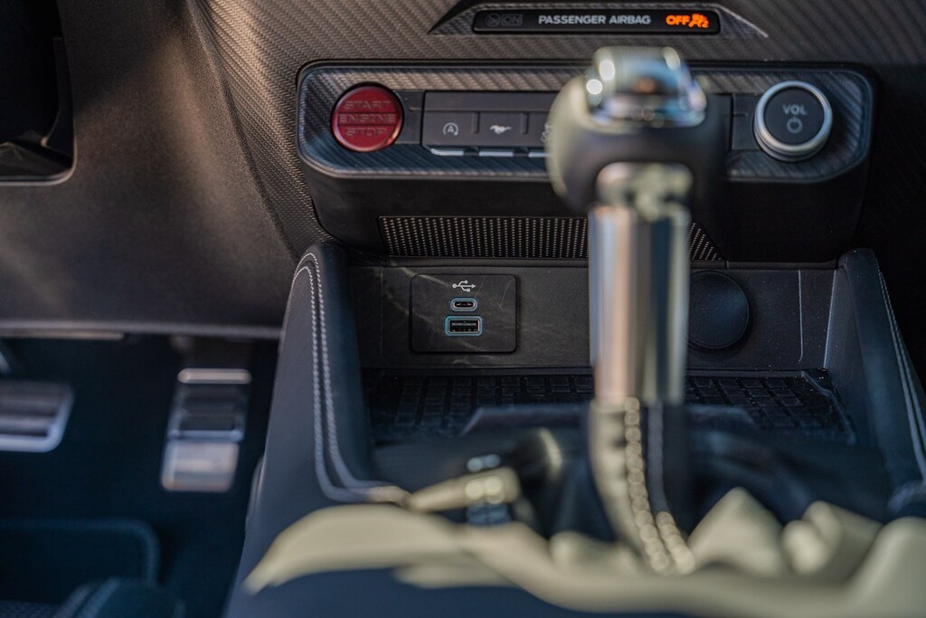 This vehicle comes equipped with Bronze Appearance Package, Equipment Group 401A High Package (Illuminated Door-Sill Scuff Plates), Ford Co-Pilot360 Assist+ (Pre-Collision Assist w/Automatic Emergency Braking), Security Package, 19" Branded Brake System w/Performance Linings, 3.55 Limited Slip Rear Axle, 4-Wheel Disc Brakes, ABS brakes, Active Valve Performance Exhaust, Air Conditioning, Alloy wheels, AM/FM Stereo, Auto High-beam Headlights, Automatic temperature control, Brake assist, Bumpers: body-color, Compass, Delay-off headlights, Driver door bin, Driver vanity mirror, Dual front impact airbags, Dual front side impact airbags, Electronic Stability Control, Emergency communication system: 911 Assist, Exterior Parking Camera Rear, Floor Mats, 1st Row, Black w/City Silver GT Logo, Four wheel independent suspension, Front anti-roll bar, Front Bucket Seats, Front Center Armrest, Front reading lights, Fully automatic headlights, Illuminated entry, Knee airbag, Leather Shift Knob, Leather steering wheel, Low tire pressure warning, Occupant sensing airbag, Outside temperature display, Overhead airbag, Overhead console, Panic alarm, Passenger door bin, Passenger vanity mirror, Power door mirrors, Power steering, Power windows, Radio data system, Rain sensing wipers, Rear anti-roll bar, Rear Parking Sensors, Rear window defroster, Red Painted Brake Calipers w/White Logo, Remote keyless entry, Speed control, Speed-sensing steering, Speed-Sensitive Wipers, Split folding rear seat, Spoiler, Sport steering wheel, Start/Stop System (DISC), Steering wheel mounted audio controls, SYNC 4.0 QNX, Tachometer, Telescoping steering wheel, Tilt steering wheel, Traction control, Trip computer, Variably intermittent wipers, and Voltmeter.