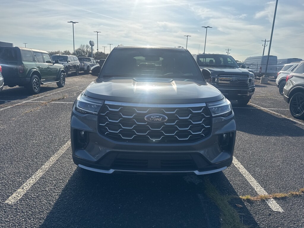 This vehicle comes equipped with Equipment Group 600A Ultimate Package (3.31 Non-Limited Slip Rear Axle), Lux Leather Package, Ultimate Package (Wheels: 21" Dark Alloy-Painted Machined Aluminum), Explorer Platinum, 3.0L EcoBoost V6, 4WD, 14 Speakers, 3.58 Non-Limited Slip Rear Axle, 3rd row seats: bench, 4-Wheel Disc Brakes, ABS brakes, ActiveX Trimmed Sport Captain's Chairs, Air Conditioning, Alloy wheels, AM/FM radio: SiriusXM with 360L, Apple CarPlay/Android Auto, Auto High-beam Headlights, Auto-dimming door mirrors, Auto-dimming Rear-View mirror, Automatic temperature control, Brake assist, Bumpers: body-color, Compass, Delay-off headlights, Driver door bin, Driver vanity mirror, Dual front impact airbags, Dual front side impact airbags, Electronic Stability Control, Emergency communication system: 911 Assist, Exterior Parking Camera Rear, Four wheel independent suspension, Front anti-roll bar, Front Bucket Seats, Front Center Armrest, Front dual zone A/C, Front fog lights, Front reading lights, Fully automatic headlights, Garage door transmitter, Heated door mirrors, Heated front seats, Heated rear seats, Heated steering wheel, Illuminated entry, Knee airbag, Leather steering wheel, Low tire pressure warning, Memory seat, Navigation System, Occupant sensing airbag, Outside temperature display, Overhead airbag, Overhead console, Panic alarm, Passenger door bin, Passenger vanity mirror, Power door mirrors, Power driver seat, Power Liftgate, Power moonroof, Power passenger seat, Power steering, Power windows, Radio data system, Radio: B&O Sound System by Bang & Olufsen w/HD, Rain sensing wipers, Rear air conditioning, Rear anti-roll bar, Rear reading lights, Rear window defroster, Rear window wiper, Remote keyless entry, Security system, Speed control, Speed-sensing steering, Speed-Sensitive Wipers, Split folding rear seat, Spoiler, Steering wheel mounted audio controls, Tachometer, Telescoping steering wheel, Tilt steering wheel, Traction control, Trip computer, Turn signal indicator mirrors, Variably intermittent wipers, Ventilated front seats, and Wheels: 20" Luster Nickel-Painted Aluminum.