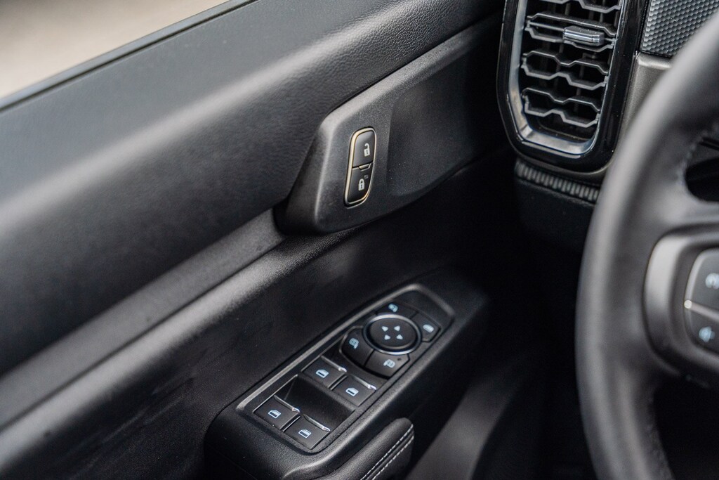 This vehicle comes equipped with Sport Appearance Package (Gray Painted Center Bar & Grille Surround, Gray Painted Front Fascia & Rear Bumper, and Sport Box Decal), 4WD, 3.73 Axle Ratio, 4-Wheel Disc Brakes, 6 Speakers, ABS brakes, Air Conditioning, Alloy wheels, AM/FM radio: SiriusXM, AM/FM Stereo, Auto High-beam Headlights, Auto-dimming Rear-View mirror, Brake assist, Cloth Front Bucket Seats, Compass, Delay-off headlights, Driver door bin, Driver vanity mirror, Dual front impact airbags, Dual front side impact airbags, Electronic Stability Control, Emergency communication system: SYNC 4 911 Assist, Front anti-roll bar, Front Bucket Seats, Front Center Armrest, Front fog lights, Front reading lights, Front wheel independent suspension, Fully automatic headlights, Illuminated entry, Internet access capable: FordPass Connect 4G, Leather Shift Knob, Low tire pressure warning, Navigation system: Connected Navigation, Occupant sensing airbag, Outside temperature display, Overhead airbag, Overhead console, Panic alarm, Passenger door bin, Passenger vanity mirror, Power door mirrors, Power steering, Power windows, Rear reading lights, Rear seat center armrest, Rear step bumper, Rear window defroster, Remote keyless entry, Security system, SiriusXM Satellite Radio, Speed control, Speed-sensing steering, Steering wheel mounted audio controls, SYNC 4A w/Connected Navigation, Telescoping steering wheel, Tilt steering wheel, Traction control, Trip computer, Variably intermittent wipers, Voltmeter, and Wheels: 17" Gray-Painted Aluminum.