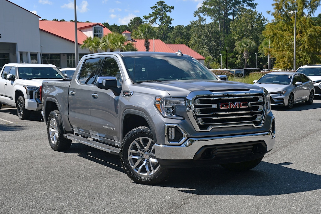 ***Stokes Toyota Hilton Head*** 2019 GMC Sierra 1500 SLT in Satin Steel Metallic, Factory Equipped With: 12-Volt Rear Auxiliary Power Outlet, 120-Volt Bed Mounted Power Outlet, 120-Volt Instrument Panel Power Outlet, 170 Amp Alternator, 2 USB Ports, 2 USB Ports (1st Row), Auxiliary External Transmission Oil Cooler, Chrome Assist Steps, Chrome Grille, Color-Keyed Carpeting Floor Covering, Compass, Deep-Tinted Glass, Dual Exhaust w/Premium Tips, Electric Rear-Window Defogger, Electrical Lock Control Steering Column, Floor Mounted Console, Front Bucket Seats, Front Frame-Mounted Black Recovery Hooks, GMC 4G LTE, GMC Connected Access, HD Radio, Heated 2nd Row Outboard Seats, Heated Driver & Front Passenger Seating, Heavy-Duty Rear Locking Differential, High-Capacity Air Filter, Hill Descent Control, Hitch Guidance, Hitch Guidance w/Hitch View, In-Vehicle Trailering App, Integrated Trailer Brake Controller, Keyless Open & Start, LED Cargo Area Lighting, Manual Tilt-Wheel & Telescoping Steering Column, Off-Road Suspension, OnStar & GMC Connected Services Capable, Power Door Locks, Power Front Passenger Windows w/Express Up/Down, Power Front Windows w/Driver Express Up/Down, Power Rear Windows w/Express Down, Power Sliding Rear Window w/Rear Defogger, Preferred Equipment Group 4SA, Rear Dual USB Charging-Only Ports, Rear Wheelhouse Liners, Remote Vehicle Starter System, SLT Convenience Package, SLT Premium Package, Steering Wheel Audio Controls, Theft Deterrent System (Unauthorized Entry), Trailering Package, Universal Home Remote, Ventilated Driver & Front Passenger Seats, X31 Hard Badge, X31 Off-Road Package.