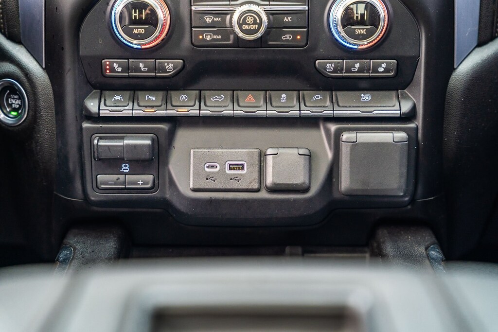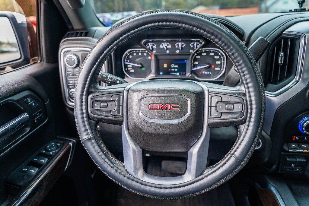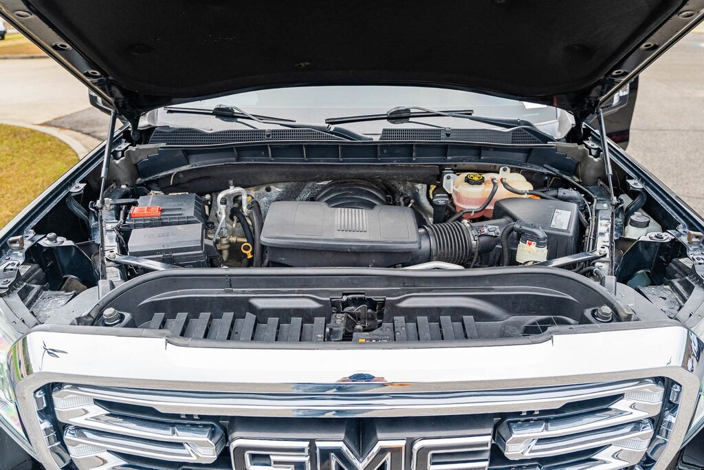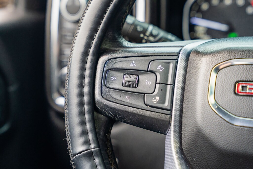This vehicle comes equipped with Driver Alert Package I (Lane Change Alert w/Side Blind Zone Alert, Perimeter Lighting, Rear Cross Traffic Alert, and Ultrasonic Front & Rear Park Assist), Driver Alert Package II (Following Distance Indicator, Forward Collision Alert, Front Pedestrian Braking, IntelliBeam Automatic High Beam On/Off, Lane Keep Assist w/Lane Departure Warning, Low Speed Forward Automatic Braking, and Safety Alert Seat), Max Trailering Package (220 Amp Alternator, Enhanced Cooling Radiator, Heavier Duty Rear Springs, and Increased RGAWR), Preferred Equipment Group 4SA (12-Volt Rear Auxiliary Power Outlet, 120-Volt Bed Mounted Power Outlet, 120-Volt Instrument Panel Power Outlet, 170 Amp Alternator, Auxiliary External Transmission Oil Cooler, Chrome Grille, Color-Keyed Carpeting Floor Covering, Compass, Deep-Tinted Glass, Electric Rear-Window Defogger, Electrical Lock Control Steering Column, Front Frame-Mounted Black Recovery Hooks, GMC 4G LTE, GMC Connected Access, HD Radio, Heated Driver & Front Passenger Seating, Heavy-Duty Rear Locking Differential, Hitch Guidance, Hitch Guidance w/Hitch View, In-Vehicle Trailering App, Integrated Trailer Brake Controller, Keyless Open & Start, LED Cargo Area Lighting, Manual Tilt-Wheel & Telescoping Steering Column, OnStar & GMC Connected Services Capable, Power Door Locks, Power Front Passenger Windows w/Express Up/Down, Power Front Windows w/Driver Express Up/Down, Power Rear Windows w/Express Down, Rear Dual USB Charging-Only Ports, Rear Wheelhouse Liners, Remote Vehicle Starter System, Steering Wheel Audio Controls, and Theft Deterrent System (Unauthorized Entry)), SLT Convenience Package (2 USB Ports, 2 USB Ports (1st Row), Floor Mounted Console, Front Bucket Seats, Heated 2nd Row Outboard Seats, Power Sliding Rear Window w/Rear Defogger, Universal Home Remote, and Ventilated Driver & Front Passenger Seats), SLT Preferred Package (Premium Bose 7-Speaker Sound System, Radio: Premium GMC Infotainment Sys w/Navigation, SiriusXM Radio, and Wireless Charging), SLT Premium Plus Package (Chrome Assist Steps, Spray-On Pickup Bed Liner w/GMC Logo, and Trailer Tire Pressure Monitor System), Trailering Package, 10-Speed Automatic, 4WD, Jet Black Leather, 10-Way Power Driver Seat Adjuster w/Lumbar, 10-Way Power Passenger Seat Adjuster w/Lumbar, 20" x 9" Polished Aluminum Wheels, 4-Wheel Disc Brakes, 6 Speakers, 6-Speaker Audio System Feature, ABS brakes, Air Conditioning, Alloy wheels, AM/FM radio: SiriusXM, Apple CarPlay/Android Auto, Auto-dimming door mirrors, Auto-dimming Rear-View mirror, Automatic temperature control, Brake assist, Bumpers: chrome, Delay-off headlights, Driver door bin, Driver Memory, Driver vanity mirror, Dual Exhaust w/Premium Tips, Dual front impact airbags, Dual front side impact airbags, Electronic Stability Control, Front 40/20/40 Split-Bench Seat, Front anti-roll bar, Front Center Armrest w/Storage, Front dual zone A/C, Front fog lights, Front License Plate Kit, Front reading lights, Front wheel independent suspension, Fully automatic headlights, Heated door mirrors, Heated front seats, Heated steering wheel, Heavy Duty Suspension, Illuminated entry, Low tire pressure warning, Memory seat, Occupant sensing airbag, Outside temperature display, Overhead airbag, Overhead console, Panic alarm, Passenger door bin, Passenger vanity mirror, Perforated Leather-Appointed Seat Trim, Power door mirrors, Power driver seat, Power passenger seat, Power steering, Power Sunroof, Power windows, Premium audio system: GMC Infotainment System, Radio data system, Radio: Premium GMC Infotainment Sys w/Multi-Touch, Rear reading lights, Rear seat center armrest, Rear step bumper, Rear window defroster, Remote keyless entry, Security system, Speed control, Speed-sensing steering, Split folding rear seat, Steering wheel mounted audio controls, Tachometer, Telescoping steering wheel, Tilt steering wheel, Traction control, Trip com