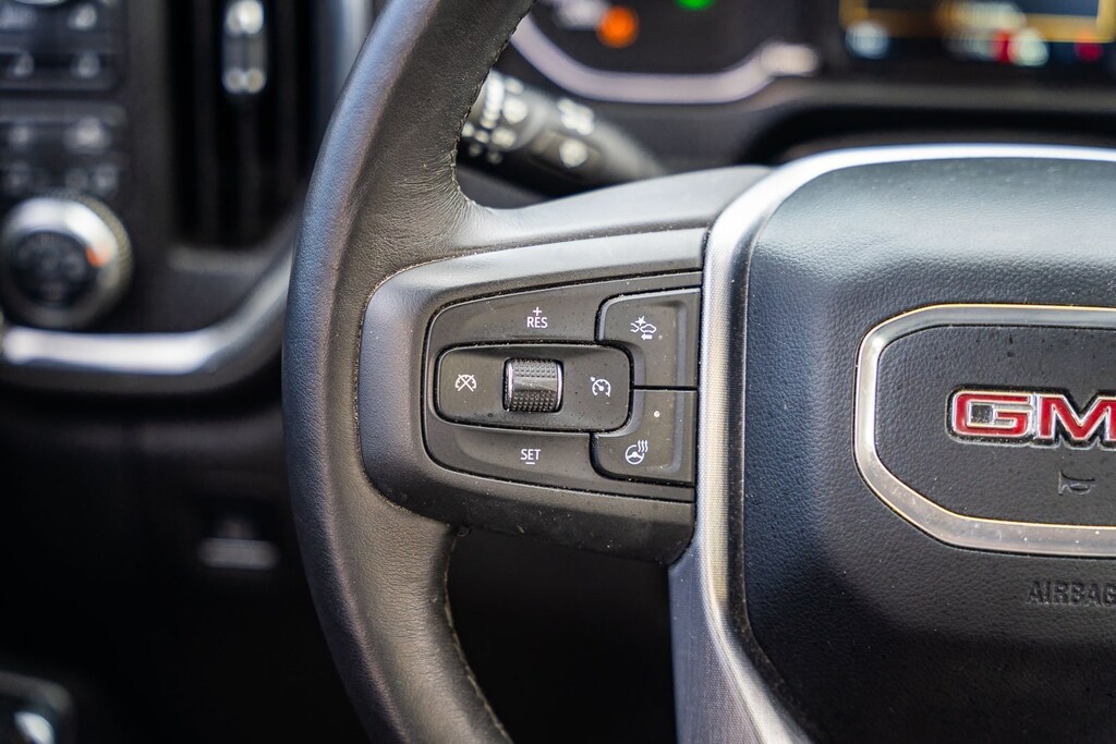 This vehicle comes equipped with Driver Alert Package I (Lane Change Alert w/Side Blind Zone Alert, Perimeter Lighting, Rear Cross Traffic Alert, and Ultrasonic Front & Rear Park Assist), Driver Alert Package II (Following Distance Indicator, Forward Collision Alert, Front Pedestrian Braking, IntelliBeam Automatic High Beam On/Off, Lane Keep Assist w/Lane Departure Warning, Low Speed Forward Automatic Braking, and Safety Alert Seat), Preferred Equipment Group 4SA (12-Volt Rear Auxiliary Power Outlet, 120-Volt Bed Mounted Power Outlet, 120-Volt Instrument Panel Power Outlet, 170 Amp Alternator, Auxiliary External Transmission Oil Cooler, Chrome Grille, Color-Keyed Carpeting Floor Covering, Compass, Deep-Tinted Glass, Electric Rear-Window Defogger, Electrical Lock Control Steering Column, Front Frame-Mounted Black Recovery Hooks, GMC 4G LTE, GMC Connected Access, HD Radio, Heated Driver & Front Passenger Seating, Heavy-Duty Rear Locking Differential, Hitch Guidance, Hitch Guidance w/Hitch View, In-Vehicle Trailering App, Integrated Trailer Brake Controller, Keyless Open & Start, LED Cargo Area Lighting, Manual Tilt-Wheel & Telescoping Steering Column, OnStar & GMC Connected Services Capable, Power Door Locks, Power Front Passenger Windows w/Express Up/Down, Power Front Windows w/Driver Express Up/Down, Power Rear Windows w/Express Down, Rear Dual USB Charging-Only Ports, Rear Wheelhouse Liners, Remote Vehicle Starter System, Steering Wheel Audio Controls, and Theft Deterrent System (Unauthorized Entry)), SLT Convenience Package (2 USB Ports, 2 USB Ports (1st Row), Floor Mounted Console, Front Bucket Seats, Heated 2nd Row Outboard Seats, Power Sliding Rear Window w/Rear Defogger, Universal Home Remote, and Ventilated Driver & Front Passenger Seats), SLT Preferred Package (Premium Bose 7-Speaker Sound System, Radio: Premium GMC Infotainment Sys w/Navigation, SiriusXM Radio, and Wireless Charging), SLT Premium Plus Package (Chrome Assist Steps, Spray-On Pickup Bed Liner w/GMC Logo, and Trailer Tire Pressure Monitor System), Trailering Package, X31 Off-Road Package (Dual Exhaust w/Premium Tips, High-Capacity Air Filter, Hill Descent Control, and X31 Hard Badge), 8-Speed Automatic, 4WD, Jet Black Leather, 10-Way Power Driver Seat Adjuster w/Lumbar, 10-Way Power Passenger Seat Adjuster w/Lumbar, 20" x 9" Polished Aluminum Wheels, 3.23 Rear Axle Ratio, 4-Wheel Disc Brakes, 6 Speakers, 6-Speaker Audio System Feature, ABS brakes, Air Conditioning, Alloy wheels, AM/FM radio: SiriusXM, Apple CarPlay/Android Auto, Auto-dimming door mirrors, Auto-dimming Rear-View mirror, Automatic temperature control, Brake assist, Bumpers: chrome, Delay-off headlights, Driver door bin, Driver Memory, Driver vanity mirror, Dual front impact airbags, Dual front side impact airbags, Electronic Stability Control, Front 40/20/40 Split-Bench Seat, Front anti-roll bar, Front Center Armrest w/Storage, Front dual zone A/C, Front fog lights, Front reading lights, Front wheel independent suspension, Fully automatic headlights, Heated door mirrors, Heated front seats, Heated steering wheel, Heavy Duty Suspension, Illuminated entry, Low tire pressure warning, Memory seat, Occupant sensing airbag, Outside temperature display, Overhead airbag, Overhead console, Panic alarm, Passenger door bin, Passenger vanity mirror, Perforated Leather-Appointed Seat Trim, Power door mirrors, Power driver seat, Power passenger seat, Power steering, Power windows, Premium audio system: GMC Infotainment System, Radio data system, Radio: Premium GMC Infotainment Sys w/Multi-Touch, Rear reading lights, Rear seat center armrest, Rear step bumper, Rear window defroster, Remote keyless entry, Security system, Speed control, Speed-sensing steering, Split folding rear seat, Steering wheel mounted audio controls, Tachometer, Telescoping steering wheel, Tilt steering wheel, Traction control, Trip computer, Variably intermittent wipers, Voltmeter, W