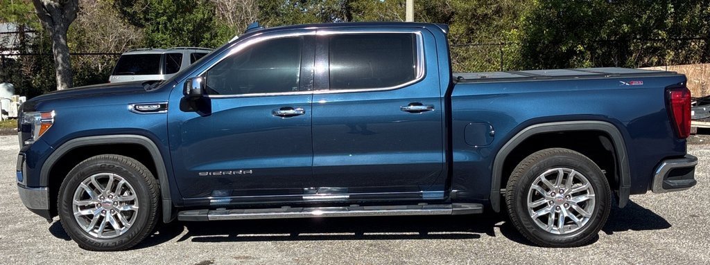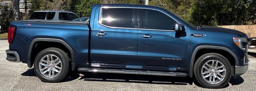 BACKUP CAMERA, AGGRESSIVE PRICING, ALLOY WHEELS, BLUETOOTH, CLIMATE PACKAGE, HEAT PACKAGE, LEATHER SEATS, MEMORY PACKAGE, POWER PACKAGE, REMOTE START, SUNROOF/MOONROOF, TOW PACKAGE, APPLE CAR PLAY, 8-Speed Automatic, 4WD, Dark Walnut/Slate Leather, 20 x 9 Polished Aluminum Wheels, Chrome Wheel To Wheel Assist Steps, Dual Exhaust w/Premium Tips, Heavy-Duty Air Filter, Hill Descent Control, Hitch Guidance, Off-Road Suspension, SLT Convenience Package, SLT Premium Package, Trailering Package, X31 Hard Badge, X31 Off-Road Package. Pacific Blue Metallic 2021 GMC Sierra 1500 SLT 4WD 8-Speed Automatic EcoTec3 5.3L V8