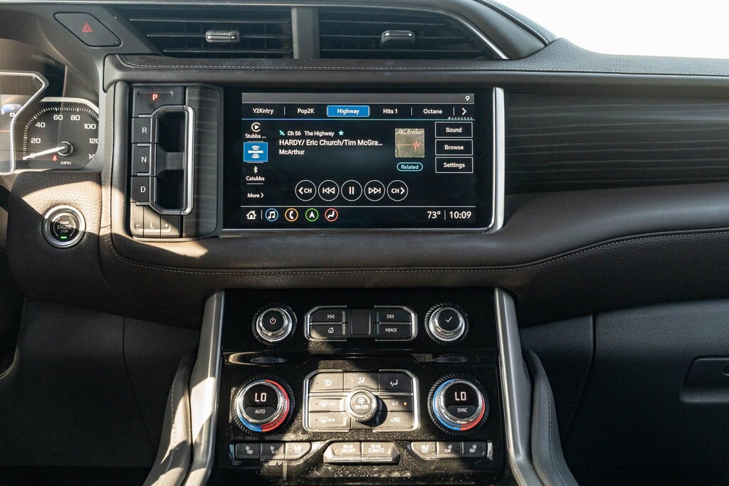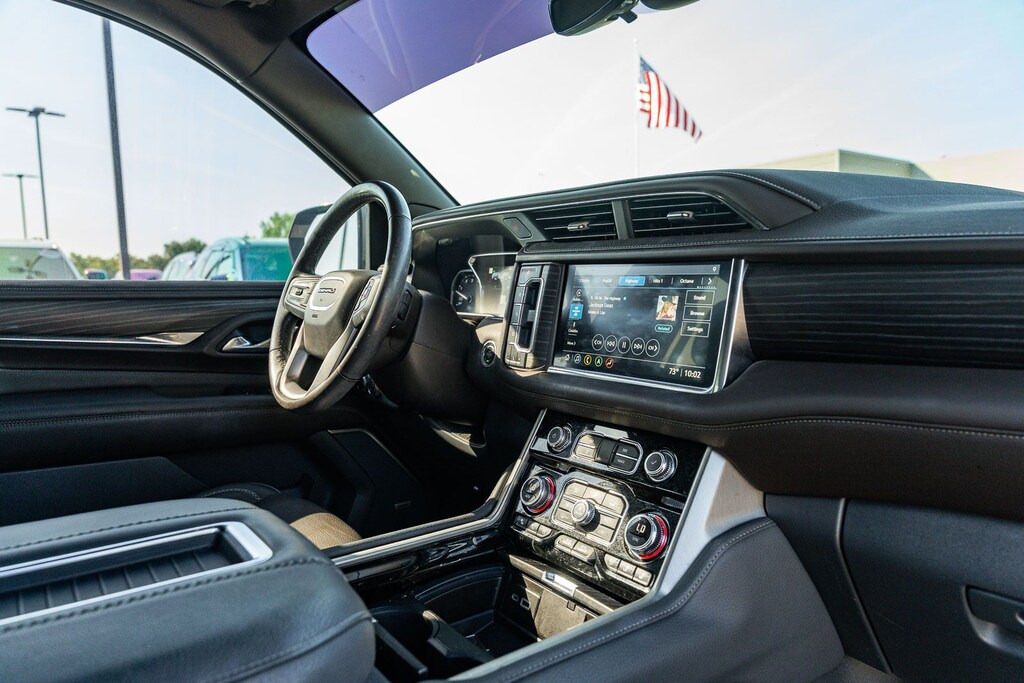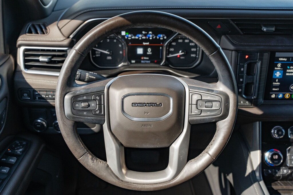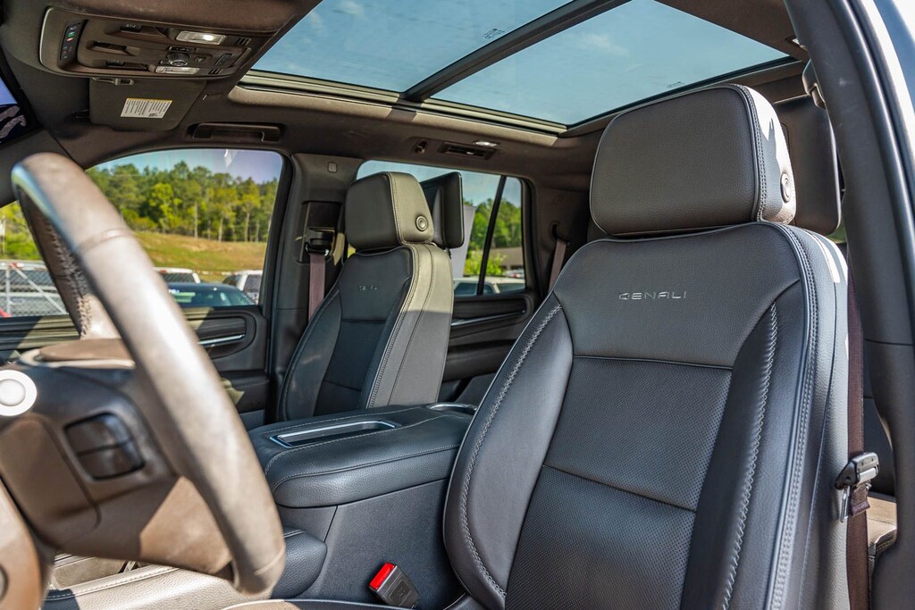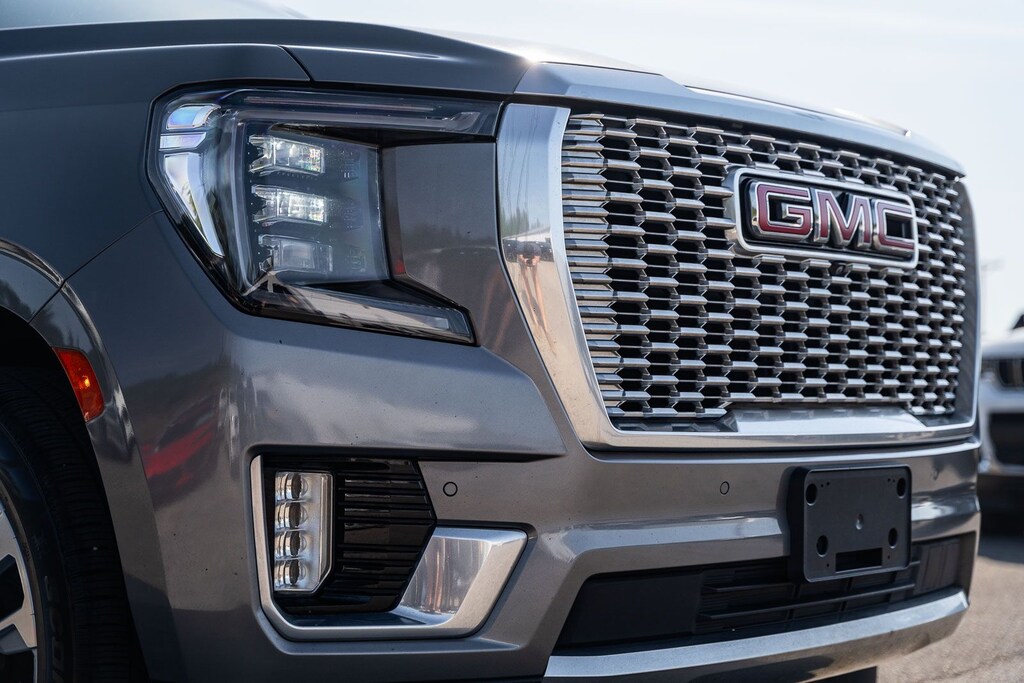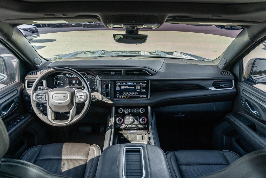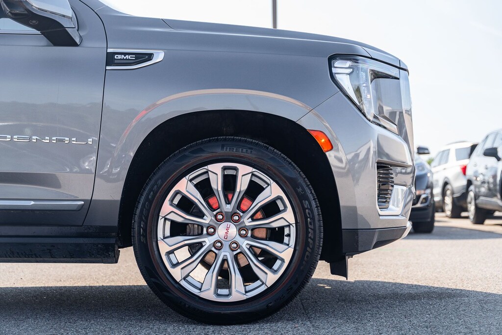 This vehicle comes equipped with Advanced Security Package (Glass Breakage Sensor, Theft-Deterrent Alarm System, Vehicle Inclination Sensor, and Vehicle Interior Movement Sensor), Advanced Technology Package (Adaptive Cruise Control, Enhanced Automatic Emergency Braking, Inside Rearview Auto-Dimming Rear Camera Mirror, and Rear Camera Mirror Washer), Denali Premium Package (Dual-Pane Panoramic Power Sunroof and Power-Retractable Assist Steps), License Plate Front Mounting Package, Preferred Equipment Group 5SA (12-Way Power Seat Adjusters, 15" Diagonal Multi-Color Head-Up Display, 2 Presets For Outside Rearview Mirrors, 3rd Row 60/40 Power-Folding Split-Bench Seat, Bright Front & Rear Door Sill Plates, Chrome Door Handles w/Body-Color Strip, Dual Exhaust System, Galvano Bodyside Moldings, Hands-Free Power Programmable Rear Liftgate, HD Surround Vision, Heated & Ventilated Driver & Front Passenger Seats, Heated 2nd Row Outboard Position Seats, Heated Automatic Steering Wheel, Heated Driver & Front Passenger Seats, Inside Rear-View Auto-Dimming Mirror, Outside Heated Power-Adjustable Mirrors, Power Release 2nd Row Bucket Seats, Power Tilt & Telescopic Steering Column, Rear Pedestrian Alert, Safety Alert Seat, and Universal Home Remote), GM Certified, 14 Speakers, 3.23 Rear Axle Ratio, 3rd row seats: split-bench, 4-Wheel Disc Brakes, ABS brakes, Adaptive suspension, Air Conditioning, Alloy wheels, AM/FM radio: SiriusXM with 360L, Apple CarPlay/Android Auto, Auto High-beam Headlights, Auto-dimming door mirrors, Auto-dimming Rear-View mirror, Auto-leveling suspension, Automatic Emergency Braking, Automatic temperature control, Bodyside moldings, Bose 14-Speaker Surround w/CenterPoint, Brake assist, Bumpers: body-color, Compass, Delay-off headlights, Driver door bin, Driver vanity mirror, Dual front impact airbags, Dual front side impact airbags, Electronic Stability Control, Emergency communication system: OnStar and GMC connected services capable, Following Distance Indicator, Forward Collision Alert, Four wheel independent suspension, Front & Rear Park Assist, Front anti-roll bar, Front Bucket Seats, Front Center Armrest, Front dual zone A/C, Front fog lights, Front Pedestrian Braking, Front reading lights, Fully automatic headlights, Garage door transmitter, HD Radio, Heads-Up Display, Heated door mirrors, Heated front seats, Heated rear seats, Heated steering wheel, Illuminated entry, IntelliBeam Automatic High Beam On/Off, Lane Change Alert w/Side Blind Zone Alert, Lane Keep Assist w/Lane Departure Warning, Leather steering wheel, Low tire pressure warning, Magnetic Ride Control Suspension, Memory seat, Navigation System, Occupant sensing airbag, Outside temperature display, Overhead airbag, Overhead console, Panic alarm, Passenger door bin, Passenger vanity mirror, Perforated Leather Seating Surfaces, Power door mirrors, Power driver seat, Power Liftgate, Power passenger seat, Power steering, Power windows, Radio: AM/FM/SiriusXM w/Navigation, Rain sensing wipers, Rear air conditioning, Rear anti-roll bar, Rear Cross Traffic Alert, Rear reading lights, Rear Seat Media System, Rear window defroster, Rear window wiper, Remote keyless entry, Roof rack: rails only, Security system, SiriusXM w/360L, Speed control, Speed-sensing steering, Split folding rear seat, Spoiler, Steering wheel memory, Steering wheel mounted audio controls, Tachometer, Telescoping steering wheel, Tilt steering wheel, Traction control, Trip computer, Turn signal indicator mirrors, Variably intermittent wipers, Ventilated front seats, Voltmeter, Wheel Locks, Wheels: 20" x 9" 6-Spoke Polished Aluminum, and Wheels: 22" x 9" Bright Machined Aluminum.