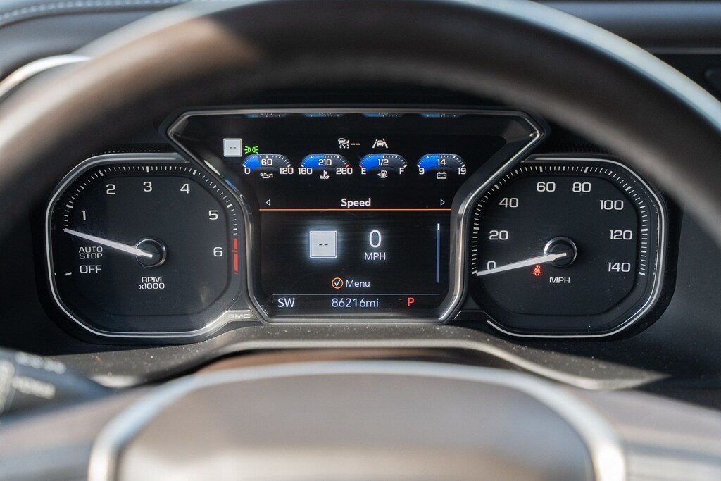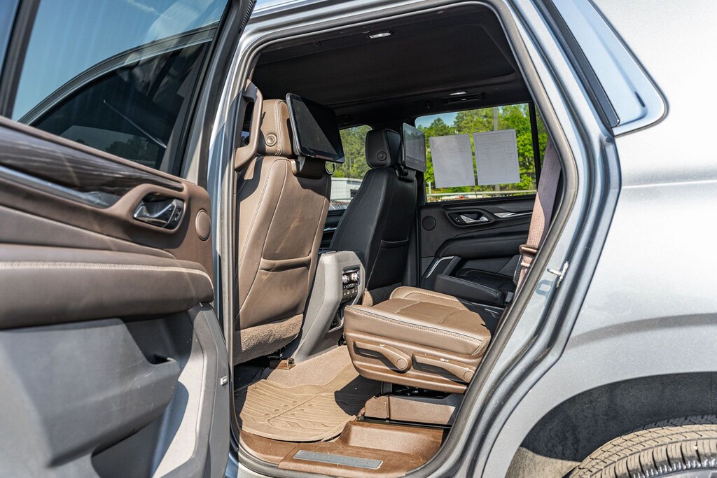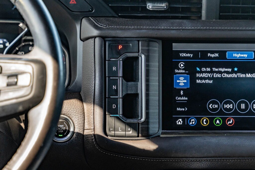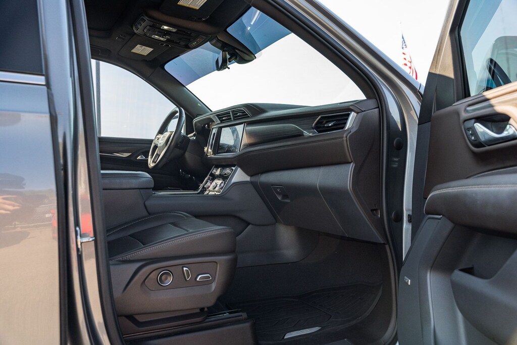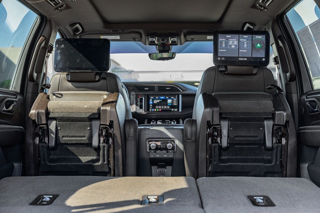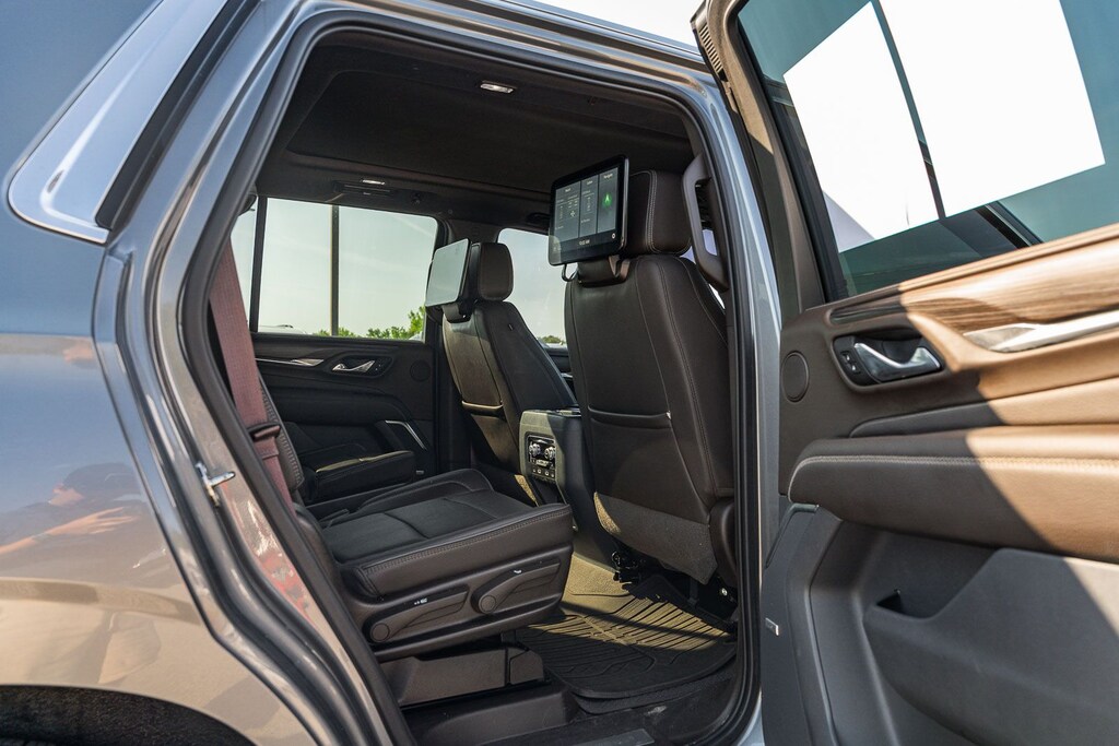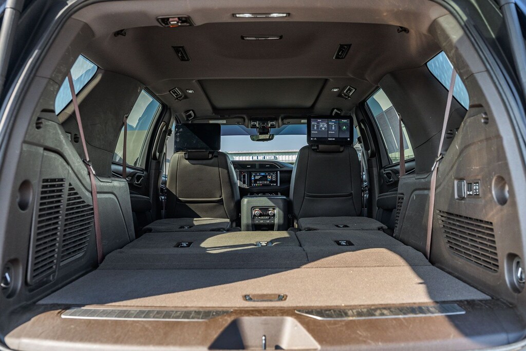This vehicle comes equipped with Advanced Security Package (Glass Breakage Sensor, Theft-Deterrent Alarm System, Vehicle Inclination Sensor, and Vehicle Interior Movement Sensor), Advanced Technology Package (Adaptive Cruise Control, Enhanced Automatic Emergency Braking, Inside Rearview Auto-Dimming Rear Camera Mirror, and Rear Camera Mirror Washer), Denali Premium Package (Dual-Pane Panoramic Power Sunroof and Power-Retractable Assist Steps), License Plate Front Mounting Package, Preferred Equipment Group 5SA (12-Way Power Seat Adjusters, 15" Diagonal Multi-Color Head-Up Display, 2 Presets For Outside Rearview Mirrors, 3rd Row 60/40 Power-Folding Split-Bench Seat, Bright Front & Rear Door Sill Plates, Chrome Door Handles w/Body-Color Strip, Dual Exhaust System, Galvano Bodyside Moldings, Hands-Free Power Programmable Rear Liftgate, HD Surround Vision, Heated & Ventilated Driver & Front Passenger Seats, Heated 2nd Row Outboard Position Seats, Heated Automatic Steering Wheel, Heated Driver & Front Passenger Seats, Inside Rear-View Auto-Dimming Mirror, Outside Heated Power-Adjustable Mirrors, Power Release 2nd Row Bucket Seats, Power Tilt & Telescopic Steering Column, Rear Pedestrian Alert, Safety Alert Seat, and Universal Home Remote), GM Certified, 14 Speakers, 3.23 Rear Axle Ratio, 3rd row seats: split-bench, 4-Wheel Disc Brakes, ABS brakes, Adaptive suspension, Air Conditioning, Alloy wheels, AM/FM radio: SiriusXM with 360L, Apple CarPlay/Android Auto, Auto High-beam Headlights, Auto-dimming door mirrors, Auto-dimming Rear-View mirror, Auto-leveling suspension, Automatic Emergency Braking, Automatic temperature control, Bodyside moldings, Bose 14-Speaker Surround w/CenterPoint, Brake assist, Bumpers: body-color, Compass, Delay-off headlights, Driver door bin, Driver vanity mirror, Dual front impact airbags, Dual front side impact airbags, Electronic Stability Control, Emergency communication system: OnStar and GMC connected services capable, Following Distance Indicator, Forward Collision Alert, Four wheel independent suspension, Front & Rear Park Assist, Front anti-roll bar, Front Bucket Seats, Front Center Armrest, Front dual zone A/C, Front fog lights, Front Pedestrian Braking, Front reading lights, Fully automatic headlights, Garage door transmitter, HD Radio, Heads-Up Display, Heated door mirrors, Heated front seats, Heated rear seats, Heated steering wheel, Illuminated entry, IntelliBeam Automatic High Beam On/Off, Lane Change Alert w/Side Blind Zone Alert, Lane Keep Assist w/Lane Departure Warning, Leather steering wheel, Low tire pressure warning, Magnetic Ride Control Suspension, Memory seat, Navigation System, Occupant sensing airbag, Outside temperature display, Overhead airbag, Overhead console, Panic alarm, Passenger door bin, Passenger vanity mirror, Perforated Leather Seating Surfaces, Power door mirrors, Power driver seat, Power Liftgate, Power passenger seat, Power steering, Power windows, Radio: AM/FM/SiriusXM w/Navigation, Rain sensing wipers, Rear air conditioning, Rear anti-roll bar, Rear Cross Traffic Alert, Rear reading lights, Rear Seat Media System, Rear window defroster, Rear window wiper, Remote keyless entry, Roof rack: rails only, Security system, SiriusXM w/360L, Speed control, Speed-sensing steering, Split folding rear seat, Spoiler, Steering wheel memory, Steering wheel mounted audio controls, Tachometer, Telescoping steering wheel, Tilt steering wheel, Traction control, Trip computer, Turn signal indicator mirrors, Variably intermittent wipers, Ventilated front seats, Voltmeter, Wheel Locks, Wheels: 20" x 9" 6-Spoke Polished Aluminum, and Wheels: 22" x 9" Bright Machined Aluminum.