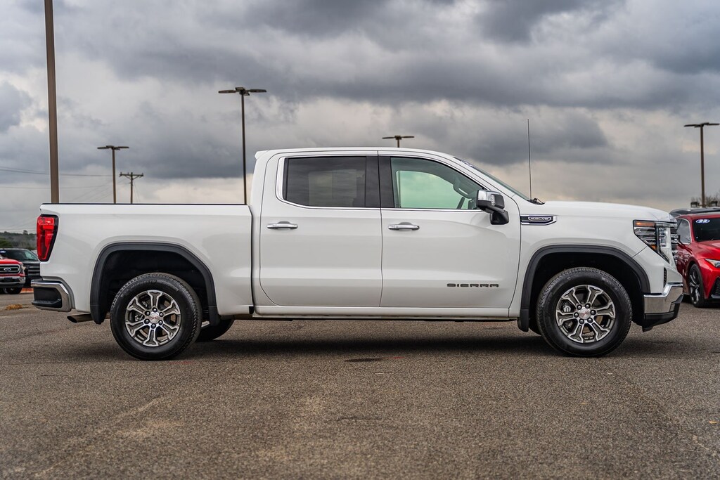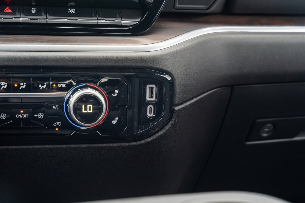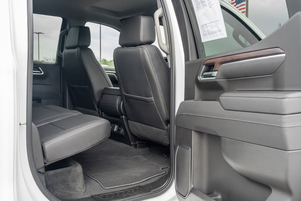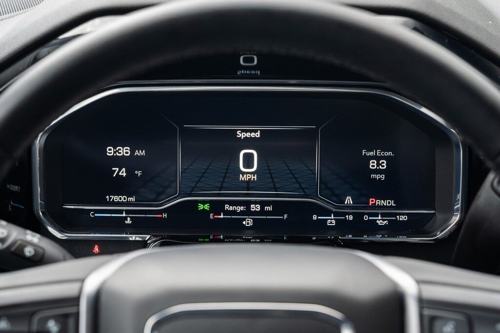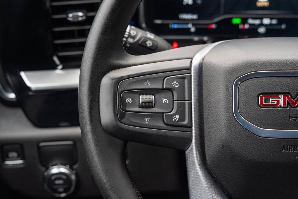 This vehicle comes equipped with Preferred Equipment Group 4SA (120-Volt Bed Mounted Power Outlet, 120-Volt Interior Power Outlet, 170 Amp Alternator, 2 Charge/Data USB Ports, 2 Type-C Charge-Only Rear USB Ports, 6-Speaker Audio System Feature, Auto-Locking Rear Differential, Auxiliary External Transmission Oil Cooler, Chrome Header & Chrome Grille Insert Bars, Color-Keyed Carpeting Floor Covering, Deep-Tinted Glass, Electric Rear-Window Defogger, Front Frame-Mounted Black Recovery Hooks, Front Rain-Sensing Wipers, HD Rear Vision Camera, Integrated Trailer Brake Controller, Keyless Open & Start, LED Cargo Area Lighting, Manual Tilt-Wheel & Telescoping Steering Column, OnStar Services Capable, Perimeter Lighting, Power Door Locks, Power Front Passenger Windows w/Express Up/Down, Power Front Windows w/Driver Express Up/Down, Power Rear Windows w/Express Down, Push Button Start, Rear Wheelhouse Liners, Remote Vehicle Starter System, SiriusXM w/360L Trial Subscription, Steering Wheel Audio Controls, Theft Deterrent System (Unauthorized Entry), and Wi-Fi Hotspot Capable), Standard Suspension Package, Trailering Package (Hitch Guidance), 10-Speed Automatic, Black Leather, 10-Way Power Driver Seat Adjuster w/Lumbar, 10-Way Power Passenger Seat Adjuster w/Lumbar, 3.23 Rear Axle Ratio, 4-Wheel Disc Brakes, 6 Speakers, ABS brakes, Air Conditioning, Alloy wheels, AM/FM radio: SiriusXM with 360L, Apple CarPlay/Android Auto, Auto High-beam Headlights, Auto-dimming door mirrors, Auto-dimming Rear-View mirror, Automatic Emergency Braking, Automatic temperature control, Brake assist, Buckle to Drive, Bumpers: chrome, Compass, Delay-off headlights, Driver door bin, Driver Memory, Driver vanity mirror, Dual front impact airbags, Dual front side impact airbags, Electronic Stability Control, Emergency communication system: OnStar, Following Distance Indicator, Forward Collision Alert, Front 40/20/40 Split-Bench Seat, Front anti-roll bar, Front Center Armrest w/Storage, Front dual zone A/C, Front fog lights, Front Pedestrian Braking, Front reading lights, Front wheel independent suspension, Fully automatic headlights, Heated door mirrors, Heated Driver & Front Outboard Passenger Seating, Heated front seats, Heated steering wheel, Illuminated entry, IntelliBeam Automatic High Beam On/Off, Lane Keep Assist w/Lane Departure Warning, Low tire pressure warning, Memory seat, Navigation System, Occupant sensing airbag, Outside temperature display, Overhead airbag, Overhead console, Panic alarm, Passenger door bin, Passenger vanity mirror, Perf Leather-Appointed Front Outboard Seat Trim, Power door mirrors, Power driver seat, Power passenger seat, Power steering, Power windows, Radio data system, Radio: Premium GMC Infotainment Audio System, Rain sensing wipers, Rear reading lights, Rear seat center armrest, Rear step bumper, Rear window defroster, Remote keyless entry, Security system, Speed control, Speed-sensing steering, Split folding rear seat, Steering wheel mounted audio controls, Tachometer, Telescoping steering wheel, Tilt steering wheel, Traction control, Trip computer, Variably intermittent wipers, Voltmeter, Wheels: 18" x 8.5" 6-Spoke Machined Aluminum, and Wireless Apple CarPlay/Wireless Android Auto.