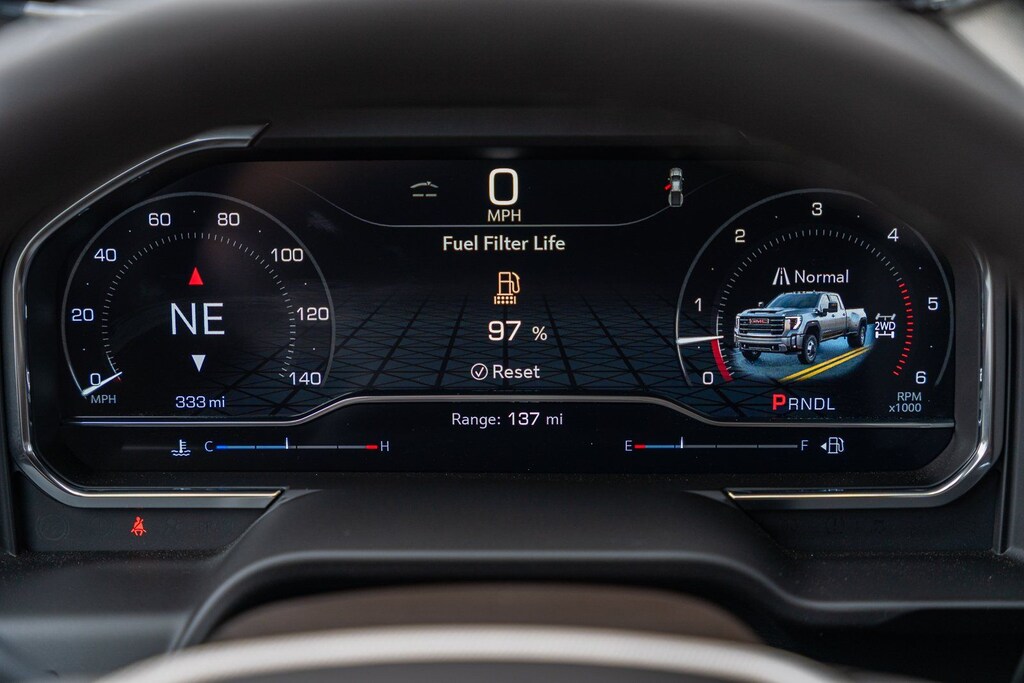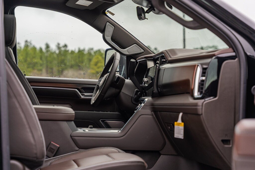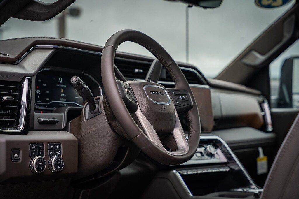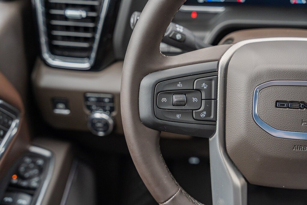 This vehicle comes equipped with Denali Reserve Package (Power Sunroof), Gooseneck/5th Wheel Prep Package, Preferred Equipment Group 5SA (120-Volt Bed Mounted Power Outlet, 120-Volt Instrument Panel Power Outlet, 2 Charge-Only Rear USB Ports, 2 Charge/Data USB Ports Inside Center Console, 2 USB Ports, 2-Speed Active Transfer Case, Bed View Camera w/2 Trailer Camera Provisions, Bose Premium 7-Speaker Sound System, Deep-Tinted Glass, Electric Rear-Window Defogger, Floor-Mounted Center Console, Front Rain-Sensing Wipers, HD Surround Vision, Heated 2nd Row Outboard Seats, Heated Driver & Front Outboard Passenger Seats, Keyless Open & Start, LED Cargo Area Lighting, LED Smoked Amber Roof Marker Lamps, Manual Tilt-Wheel/Telescoping Steering Column, Polished Exhaust Tip, Power Front Windows w/Passenger Express Up/Down, Power Sliding Rear Window w/Defogger, Push Button Start, Rear Cross Traffic Alert, Remote Vehicle Starter System, Safety Alert Seat, Signature Chrome Denali Grille, SiriusXM w/360L Trial Subscription, Spray-On Pickup Bedliner w/GMC Logo, Steering Wheel Audio Controls, Trailer Camera Provisions, Trailer Side Blind Zone Alert, Ultrasonic Front & Rear Park Assist, Unauthorized Entry Theft-Deterrent System, Universal Home Remote, Ventilated Driver & Front Passenger Seats, Wireless Charging, and Wireless Phone Projection), Technology Package (Auto-Dimming Inside Rearview Mirror w/Camera and Multicolor 15" Diagonal Head-Up Display), 10-Speed Automatic, 4WD, Atmosphere/Brownstone Leather, 12-Way Power Driver Seat Adjuster w/Lumbar, 12-Way Power Passenger Seat Adjuster w/Lumbar, 220 Amp Alternator, 3.42 Rear Axle Ratio, 3.73 Rear Axle Ratio, 4-Wheel Disc Brakes, 7 Speakers, ABS brakes, Air Conditioning, Alloy wheels, AM/FM radio: SiriusXM with 360L, Auto High-beam Headlights, Auto-dimming door mirrors, Auto-dimming Rear-View mirror, Automatic Emergency Braking, Automatic temperature control, Brake assist, Buckle to Drive, Bumpers: body-color, Compass, Delay-off headlights, Driver door bin, Driver Memory, Driver vanity mirror, Dual front impact airbags, Dual front side impact airbags, Electronic Stability Control, Engine Block Heater, Exhaust Brake, Exterior Parking Camera Rear, Following Distance Indicator, Forge Perforated Leather Seat Trim, Forward Collision Alert, Front anti-roll bar, Front Bucket Seats, Front Center Armrest, Front dual zone A/C, Front fog lights, Front Pedestrian Braking, Front reading lights, Front wheel independent suspension, Fully automatic headlights, Garage door transmitter, Genuine wood dashboard insert, Genuine wood door panel insert, GMC Premium 13.4" Diagonal Information Display, Heated door mirrors, Heated front seats, Heated rear seats, Heated steering wheel, Heavy-Duty 80 Amp-Hr Battery, Hitch Guidance w/Hitch View, Illuminated entry, IntelliBeam Automatic High Beam On/Off, Lane Departure Warning System, Low tire pressure warning, Memory seat, Occupant sensing airbag, Outside temperature display, Overhead airbag, Overhead console, Panic alarm, Passenger door bin, Passenger vanity mirror, Pickup Bed, Power door mirrors, Power driver seat, Power passenger seat, Power steering, Power windows, Power-Retractable Assist Steps, Radio: AM/FM w/Premium GMC Infotainment System, Rain sensing wipers, Rear reading lights, Rear seat center armrest, Rear step bumper, Rear window defroster, Remote keyless entry, Security system, Speed control, Speed-sensing steering, Split folding rear seat, Steering wheel mounted audio controls, Tachometer, Telescoping steering wheel, Tilt steering wheel, Traction control, Trip computer, Turn signal indicator mirrors, Variably intermittent wipers, Ventilated front seats, Voltmeter, and Winter Grille Cover.