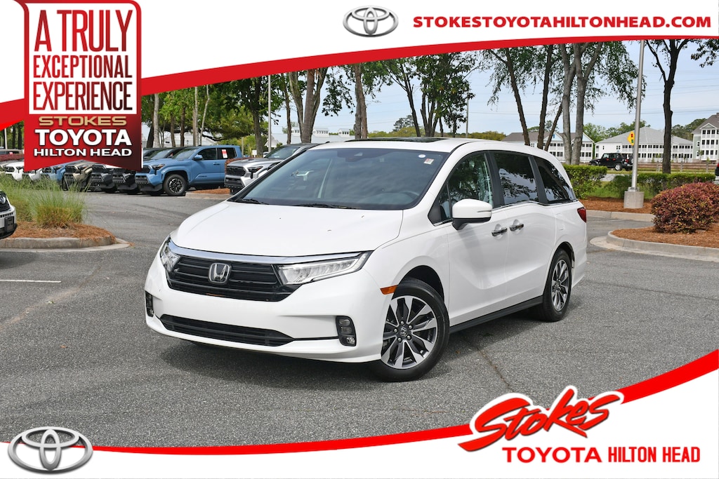***Stokes Toyota Hilton Head*** 2024 Honda Odyssey EX-L in Platinum White Pearl, Factory Equipped With: Leather Seats, Power Windows, Power Locks, Cruise Control, Remote Keyless Entry, Integrated Back Up Camera, Sunroof, Alloy Wheels, Heated Leather, Smart Key, Power Sliding Doors, Power Lift Gate, 18" Machine-Finished Alloy Wheels, 7 Speakers, ABS brakes, Adaptive Cruise Control: Adaptive Cruise Control (ACC) with Low-Speed Follow, Air Conditioning, Apple CarPlay/Android Auto, Auto High-beam Headlights, Automatic temperature control, Blind Spot Information (BSI) System warning, Bumpers: body-color, Dual front impact airbags, Dual front side impact airbags, Exterior Parking Camera Rear, Front Bucket Seats, Front dual zone A/C, Front fog lights, Heated door mirrors, Leather steering wheel, Low tire pressure warning, Panic alarm, Power door mirrors, Power driver seat, Rear air conditioning, Rear window defroster, Speed-Sensitive Wipers, Steering wheel mounted audio controls, Tilt steering wheel, Trip computer, Turn signal indicator mirrors, Variably intermittent wipers. CARFAX One-Owner. Clean CARFAX.