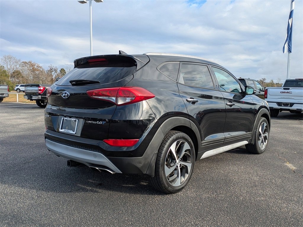 The Tucson's sleek, black exterior exudes a sense of confidence, while the turbocharged 1.6L engine delivers a thrilling and efficient ride. With an EPA-estimated 25 city/30 highway MPG, this SUV offers the perfect balance of power and efficiency, making it an exceptional choice for your daily commute or weekend adventures.