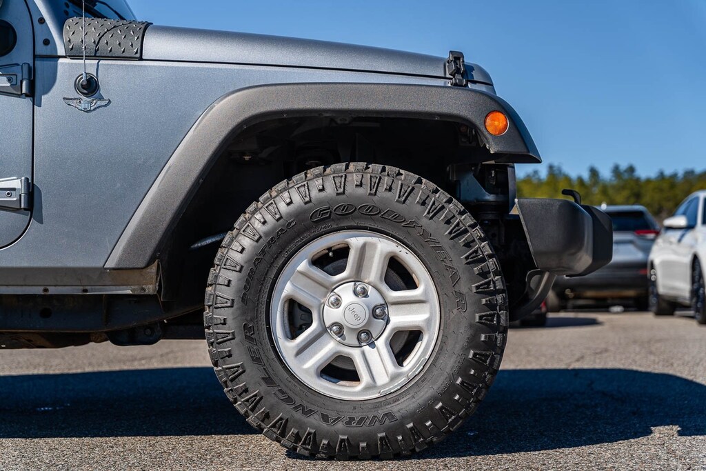 This vehicle comes equipped with Connectivity Group (Chrome/Leather Wrapped Shift Knob, Leather Wrapped Steering Wheel, Remote USB Port, Tire Pressure Monitoring Display, Uconnect Voice Command w/Bluetooth, and Vehicle Information Center), Max Tow Package (Class II Receiver Hitch and Trailer Tow w/4-Pin Connector Wiring), Quick Order Package 23C, 1-Year SiriusXM Radio Service, 16" x 7.0" Luxury Styled Steel Wheels, 4-Wheel Disc Brakes, 6 Speakers, ABS brakes, Air Conditioning, AM/FM radio, Anti-Spin Differential Rear Axle, Brake assist, CD player, Cloth Bucket Seats, Compass, Driver door bin, Driver vanity mirror, Dual front impact airbags, Electronic Stability Control, Front anti-roll bar, Front Bucket Seats, Front Center Armrest w/Storage, Front fog lights, Integrated roll-over protection, Low tire pressure warning, Normal Duty Suspension, Occupant sensing airbag, Outside temperature display, Passenger door bin, Passenger vanity mirror, Power steering, Radio: Uconnect 130 AM/FM/CD/MP3, Rear anti-roll bar, SIRIUS Satellite Radio, Speed control, Split folding rear seat, Steering wheel mounted audio controls, Sunrider Soft Top, Tachometer, Tilt steering wheel, Traction control, Trip computer, and Variably intermittent wipers.