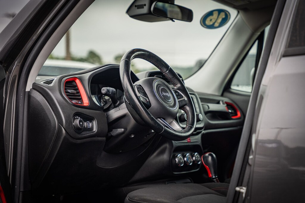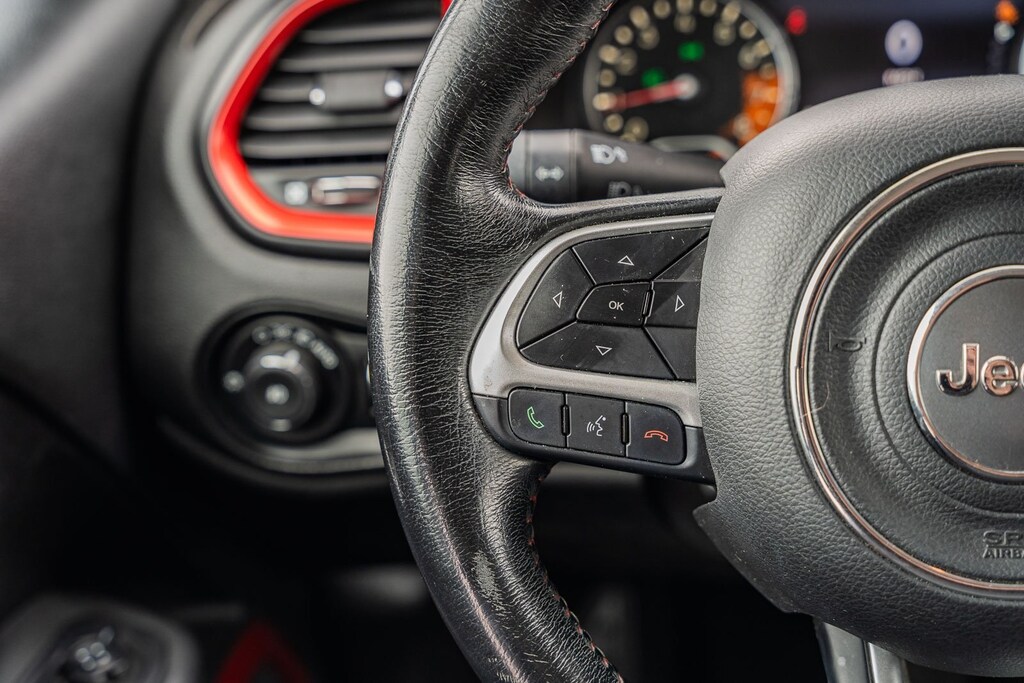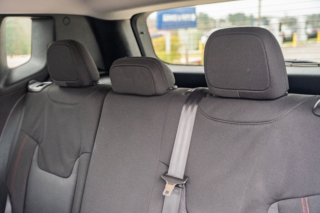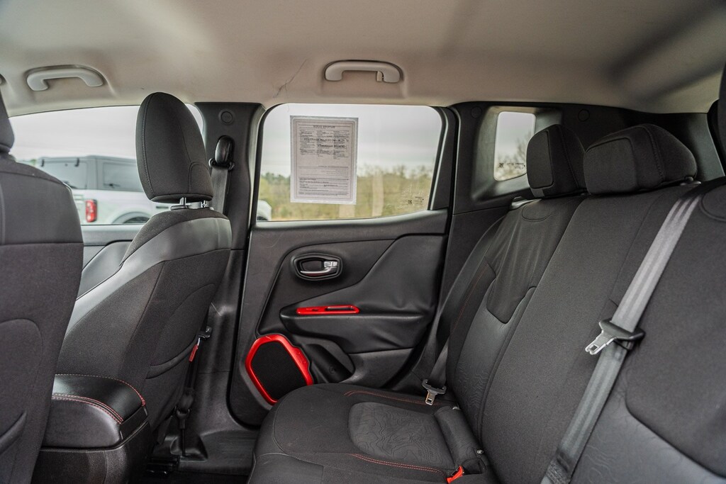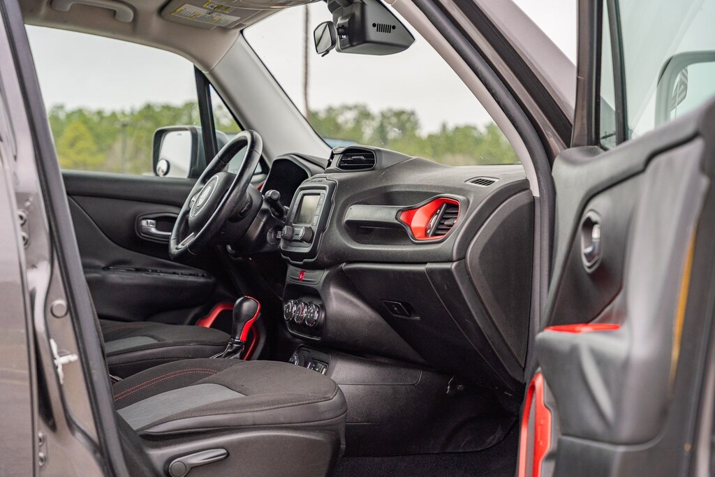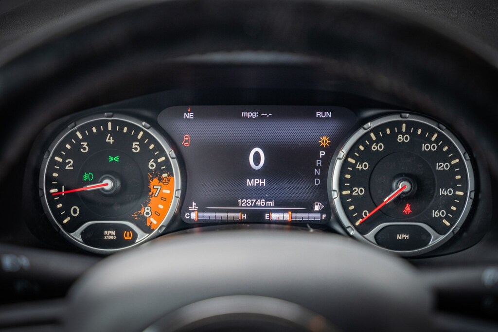 This vehicle comes equipped with Passive Entry Keyless Go Package, Quick Order Package 27E, Safety & Security Group (Blind Spot & Cross Path Detection, Security Alarm, and Tonneau Cover), 115V Auxiliary Power Outlet, 17" x 6.5" Aluminum Wheels, 4-Wheel Disc Brakes, 4.334 Axle Ratio, 6 Speakers, ABS brakes, Air Conditioning, Alloy wheels, AM/FM radio: SiriusXM, Anti-whiplash front head restraints, Brake assist, Compass, Delay-off headlights, Driver door bin, Driver vanity mirror, Dual front impact airbags, Dual front side impact airbags, Electronic Stability Control, Four wheel independent suspension, Front anti-roll bar, Front Bucket Seats, Front Center Armrest, Front fog lights, Front reading lights, Fully automatic headlights, Heated door mirrors, Illuminated entry, Knee airbag, Leather Shift Knob, Leather steering wheel, Low tire pressure warning, Normal Duty Suspension, Occupant sensing airbag, Outside temperature display, Overhead airbag, Overhead console, Panic alarm, ParkView Rear Back-Up Camera, Passenger door bin, Passenger vanity mirror, Passive Entry/Keyless Go (DISC), Power door mirrors, Power steering, Power windows, Premium Cloth Low-Back Bucket Seats, Radio data system, Radio: Uconnect 5.0, Rain sensing wipers, Rear anti-roll bar, Rear window defroster, Rear window wiper, Remote keyless entry, Remote Start System, Roof rack: rails only, Speed control, Split folding rear seat, Spoiler, Steering wheel mounted audio controls, Tachometer, Telescoping steering wheel, Tilt steering wheel, Traction control, Trip computer, Turn signal indicator mirrors, Variably intermittent wipers, and Voltmeter.