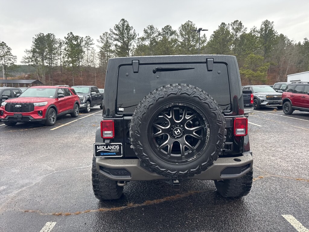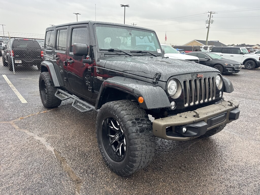 This vehicle comes equipped with Connectivity Group (Remote USB Port, Tire Pressure Monitoring Display, Uconnect Voice Command w/Bluetooth, and Vehicle Information Center), Jeep 75th Anniversary Package, Quick Order Package 24H 75th Anniversary (DISC) (2 Front & 1 Rear Bronze Tow Hook, 75th Anniversary Badge, Anti-Spin Differential Rear Axle, Body Color Grille w/Bronze Accent, Bronze Jeep Grille Badge, Bronze Steel Front Bumper, Bronze Steel Rear Bumper, Bronze Trail Rated Badge, Chrome/Leather Wrapped Shift Knob, Driver Height Adjuster Seat, Heated Front Seats, Hood w/Power Dome, IP Grab Handle w/75th Anniversary Logo, Leather Seat w/Cloth (Ombre Mesh) (DISC), Low Gloss Black Wrangler Decal, MOPAR Slush Mats, Moroccan Sun Instrument Panel Bezel, Moroccan Sun Interior Accents, Premium Black Sunrider Soft Top, Radio: 430 (DISC), and Wheels: 17 x 7.5 Aluminum Bronze (DISC)), 18" x 7.5" Polished Satin Carbon Wheels, 3.21 Rear Axle Ratio, 4-Wheel Disc Brakes, 40GB Hard Drive w/28GB Available, 5-Year SiriusXM Travel Link Service, 6.5" Touchscreen Display, 8 Speakers, ABS brakes, Air Conditioning, Alloy wheels, AM/FM radio: SiriusXM, Audio Jack Input for Mobile Devices, Auto-dimming Rear-View mirror, Brake assist, CD player, Cloth Seats w/Adjustable Head Restraints, Compass, Driver door bin, Driver vanity mirror, Dual front impact airbags, Electronic Stability Control, Freedom Panel Storage Bag, Front anti-roll bar, Front Bucket Seats, Front Center Armrest w/Storage, Front fog lights, Front reading lights, Fully automatic headlights, GPS Navigation, Heated door mirrors, Heavy Duty Suspension w/Gas Shocks (DISC), Illuminated entry, Integrated roll-over protection, Leather steering wheel, Low tire pressure warning, Occupant sensing airbag, Outside temperature display, Panic alarm, Passenger door bin, Passenger vanity mirror, Power door mirrors, Power steering, Power windows, Radio data system, Radio: 130, Radio: 430 Nav, Rear anti-roll bar, Rear Window Defroster, Rear Window Wiper/Washer, Remote keyless entry, Remote Start System, Security system, SiriusXM Travel Link, Speed control, Split folding rear seat, Steering wheel mounted audio controls, Tachometer, Tilt steering wheel, Traction control, Trip computer, and Variably intermittent wipers.