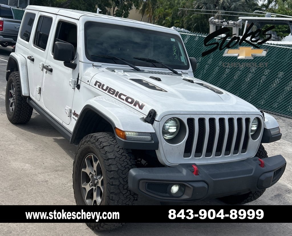 Bright White Clearcoat 2019 Jeep Wrangler Unlimited Rubicon 4WD 8-Speed Automatic 2.0L I4 DOHCRecent Arrival!**** Stokes Chevrolet is not responsible for any price discrepancies, statements of condition, or incorrect equipment listed on a vehicle. Vehicles may have minor road chips, light scratches, wheel scuffs, etc. Depending on the age of the vehicle, normal wear and tear should be anticipated. We may or may not have all the keys and floor mats. We will be happy to obtain extra oneâs for you at our dealer cost. Price does include all applicable rebates and incentives offered by manufacturer and/or finance source and $1000 trade assistance, must have trade to qualify. Price does not include dealer addendum *Reconditioning/UCI. The full cash price charged at any dealership depends on many factors, including all products and services bought with the vehicle. It is the customer's sole responsibility to verify the existence and condition of any equipment listed. Neither the dealership nor dealer website provider are responsible for misprints on prices or equipment. This site, and all information and materials appearing on it, are presented to the user as is without warranty of any kind, either express or implied. Customers must mention this advertisement to receive the advertised price. While great effort is made to ensure the accuracy of the information on this site, errors do occur so please verify information with a customer service rep. This is easily done by calling us at (843)761-8084 or by visiting us at the dealership. Anyone that submits a form online that includes a phone number has agreed to all forms of contact, which would include, calling and texting.. All vehicles are subject to prior sale. Prices shown do not tax, tag, registration, title, license charges and $599.50 Closing Fee on all vehicles. Vehicles shown at different locations are not currently in our inventory (Not in Stock) but can be made available to you at our location within a reasonable date from the time of your request, not to exceed one week.