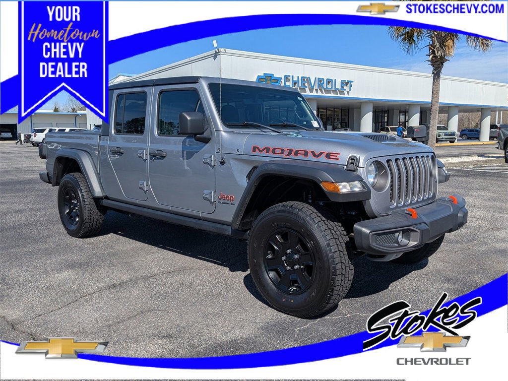 BACKUP CAMERA, AGGRESSIVE PRICING, ALLOY WHEELS, BLUETOOTH, CLIMATE PACKAGE, REMOTE START. Billet Silver Metallic Clearcoat 2021 Jeep Gladiator Mojave 4WD 8-Speed Automatic 3.6L V6 24V VVTRecent Arrival!**** Stokes Chevrolet is not responsible for any price discrepancies, statements of condition, or incorrect equipment listed on a vehicle. Vehicles may have minor road chips, light scratches, wheel scuffs, etc. Depending on the age of the vehicle, normal wear and tear should be anticipated. We may or may not have all the keys and floor mats. We will be happy to obtain extra oneâs for you at our dealer cost. Price does include all applicable rebates and incentives offered by manufacturer and/or finance source and $1000 trade assistance, must have trade to qualify. Price does not include dealer addendum *Reconditioning/UCI. The full cash price charged at any dealership depends on many factors, including all products and services bought with the vehicle. It is the customer's sole responsibility to verify the existence and condition of any equipment listed. Neither the dealership nor dealer website provider are responsible for misprints on prices or equipment. This site, and all information and materials appearing on it, are presented to the user as is without warranty of any kind, either express or implied. Customers must mention this advertisement to receive the advertised price. While great effort is made to ensure the accuracy of the information on this site, errors do occur so please verify information with a customer service rep. This is easily done by calling us at (843)761-8084 or by visiting us at the dealership. Anyone that submits a form online that includes a phone number has agreed to all forms of contact, which would include, calling and texting.. All vehicles are subject to prior sale. Prices shown do not tax, tag, registration, title, license charges and $599.50 Closing Fee on all vehicles. Vehicles shown at different locations are not currently in our inventory (Not in Stock) but can be made available to you at our location within a reasonable date from the time of your request, not to exceed one week.