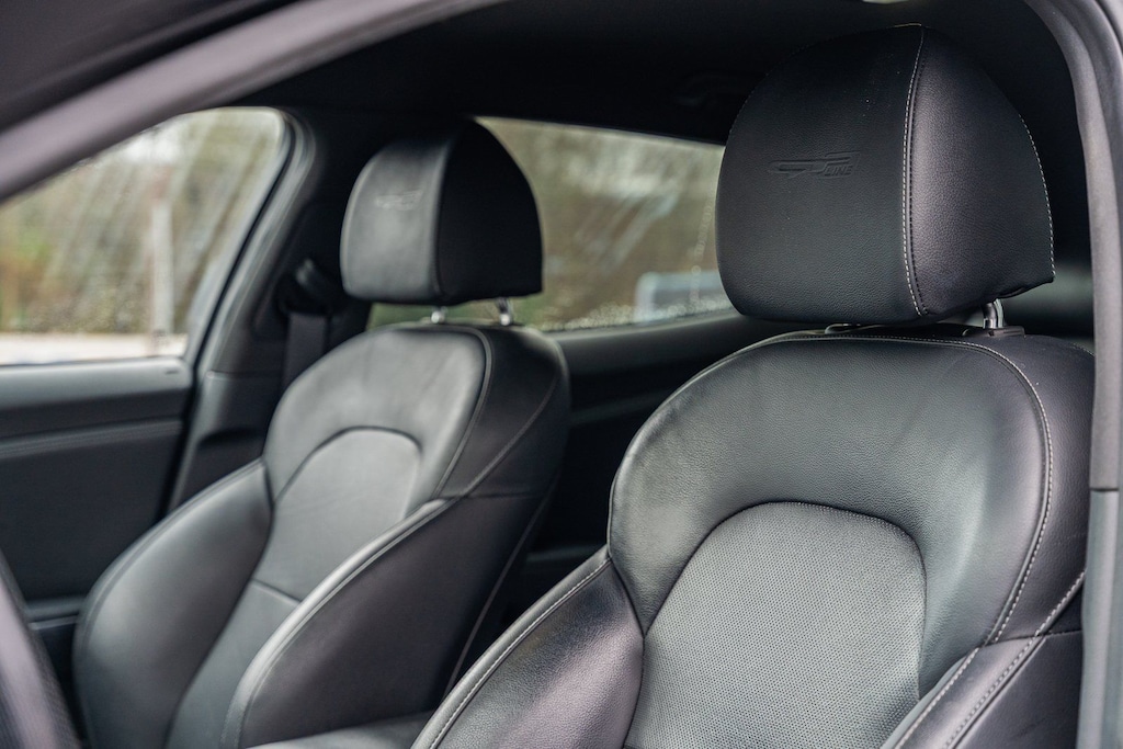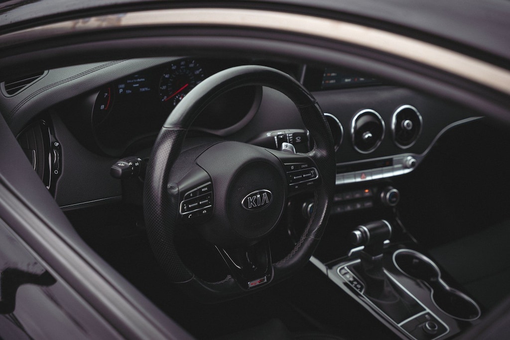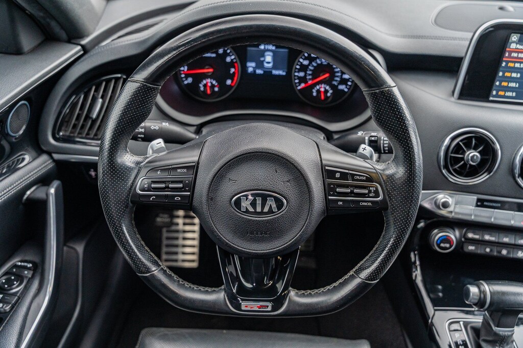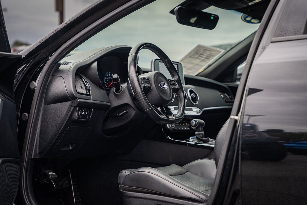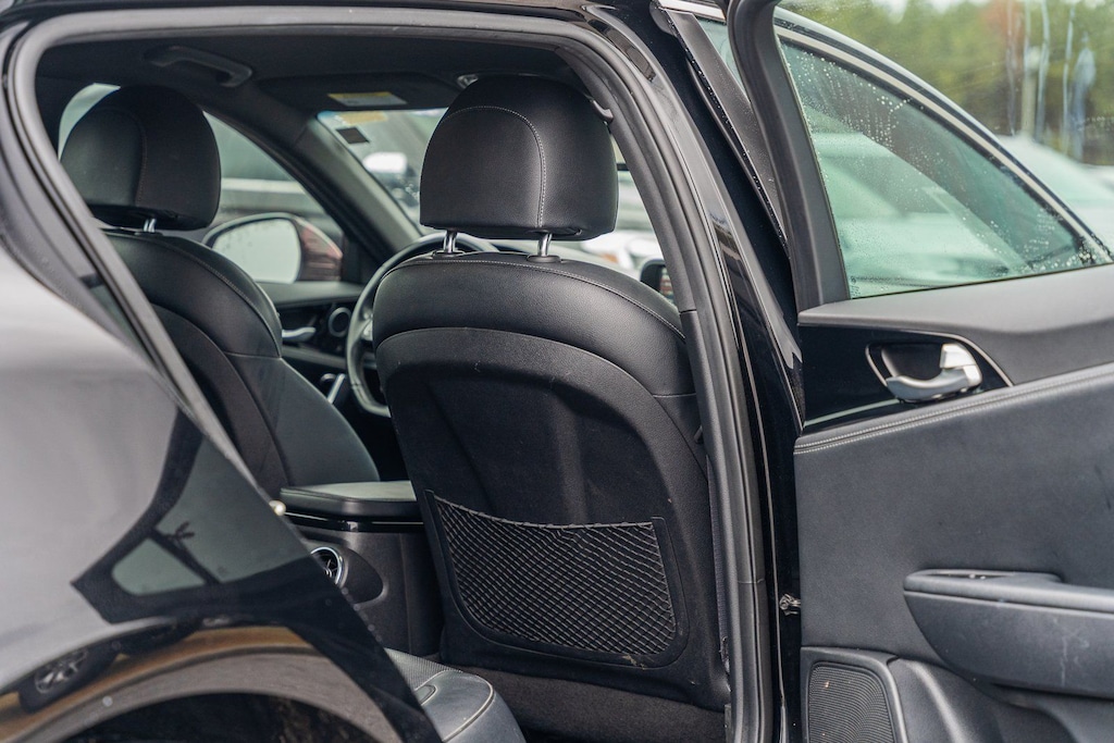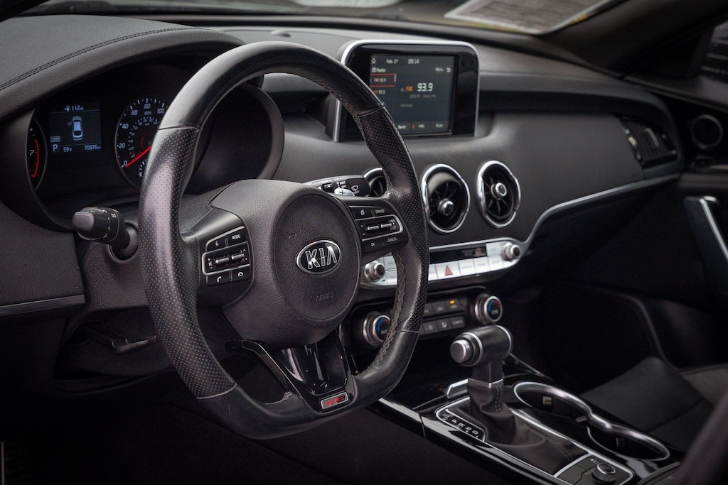 This vehicle comes equipped with 4-Wheel Disc Brakes, 6 Speakers, ABS brakes, Air Conditioning, Alloy wheels, AM/FM radio: SiriusXM, Anti-whiplash front head restraints, Apple CarPlay & Android Auto, Auto-dimming Rear-View mirror, Automatic temperature control, Brake assist, Bumpers: body-color, Cargo Tray, Delay-off headlights, Driver door bin, Driver vanity mirror, Dual front impact airbags, Dual front side impact airbags, EC Mirror w/Compass & HomeLink, Electronic Stability Control, Emergency communication system: UVO eServices, Exterior Parking Camera Rear, Four wheel independent suspension, Front anti-roll bar, Front Bucket Seats, Front Center Armrest, Front dual zone A/C, Front reading lights, Fully automatic headlights, Heated door mirrors, Heated Front Bucket Seats, Heated front seats, Illuminated entry, Knee airbag, Leather Seat Trim, Low tire pressure warning, Occupant sensing airbag, Outside temperature display, Overhead airbag, Overhead console, Panic alarm, Passenger door bin, Passenger vanity mirror, Power door mirrors, Power driver seat, Power steering, Power windows, Puddle Lamp, Radio: AM/FM/MP3/HD/SiriusXM Audio System, Rear air conditioning, Rear anti-roll bar, Rear seat center armrest, Rear window defroster, Remote keyless entry, Remote Start (Push-Button Start), Security system, Speed control, Speed-Sensitive Wipers, Split folding rear seat, Sport steering wheel, Steering wheel mounted audio controls, Tachometer, Telescoping steering wheel, Tilt steering wheel, Traction control, Trip computer, Turn signal indicator mirrors, Variably intermittent wipers, and Wheels: 8.0J x 18 Alloy.