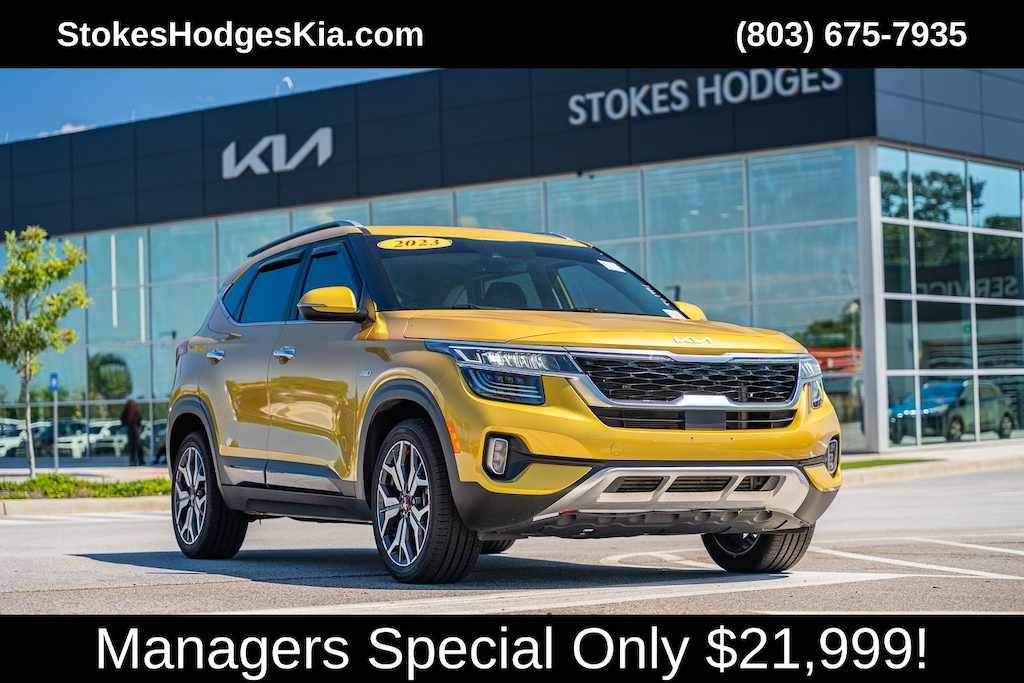Clean CARFAX. 2023 Kia Seltos SX Starbright Yellow CARFAX One-Owner.