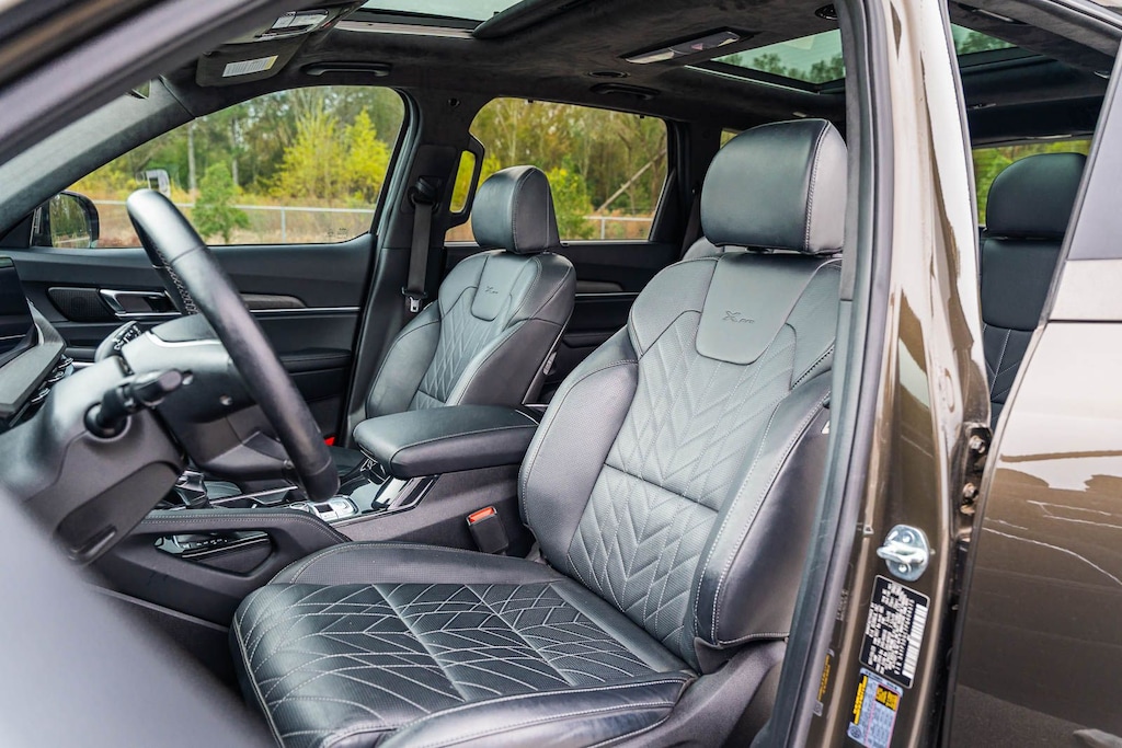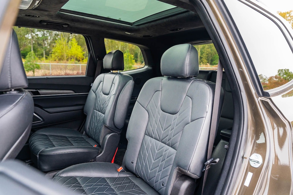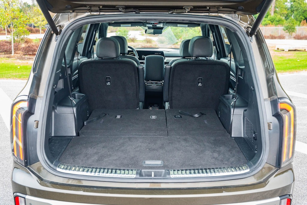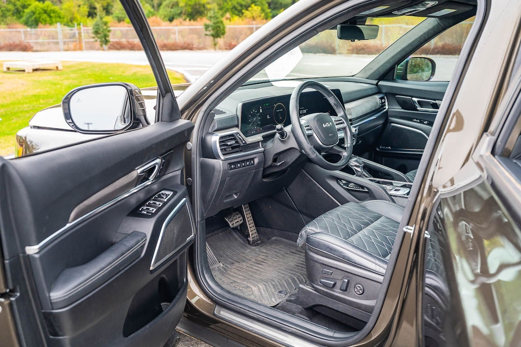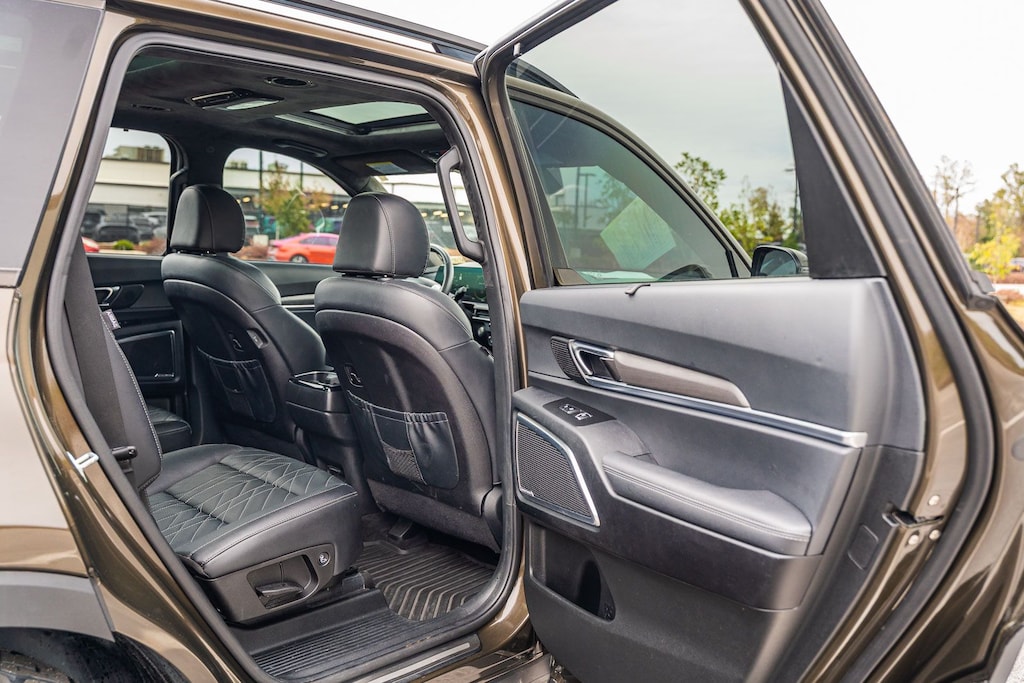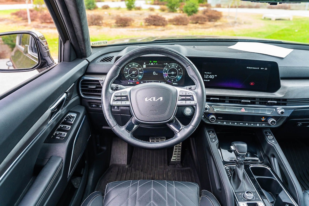 This Telluride SX-Prestige X-Pro includes 10 Speakers, 3.648 Axle Ratio, 3rd row seats: split-bench, 4-Wheel Disc Brakes, ABS brakes, Air Conditioning, Alloy wheels, AM/FM radio: SiriusXM, Apple CarPlay & Android Auto, Auto High-beam Headlights, Auto-dimming Rear-View mirror, Auto-leveling suspension, Automatic temperature control, Brake assist, Bumpers: body-color, Cargo Cover, Cargo Tray Seat Back, Carpet Floor Mats, Compass, Delay-off headlights, Driver door bin, Driver vanity mirror, Dual front impact airbags, Dual front side impact airbags, Electronic Stability Control, Emergency communication system: 911 Connect, Exterior Parking Camera Rear, Four wheel independent suspension, Front anti-roll bar, Front Bucket Seats, Front Center Armrest, Front dual zone A/C, Front fog lights, Front reading lights, Fully automatic headlights, Garage door transmitter: HomeLink, harman/kardon® Speakers, Heads-Up Display, Heated & Ventilated Front Bucket Seats, Heated door mirrors, Heated front seats, Heated rear seats, Heated steering wheel, Illuminated entry, Knee airbag, Leather Shift Knob, Leather steering wheel, Low tire pressure warning, Memory seat, Mud Guard Kit, Navigation System, Occupant sensing airbag, Outside temperature display, Overhead airbag, Overhead console, Panic alarm, Passenger door bin, Passenger vanity mirror, Power door mirrors, Power driver seat, Power Liftgate, Power moonroof, Power passenger seat, Power steering, Power windows, Premium Nappa Leather Seat Trim, Radio data system, Radio: AM/FM harman/kardon Audio System, Rain sensing wipers, Rear air conditioning, Rear anti-roll bar, Rear audio controls, Rear reading lights, Rear side impact airbag, Rear window defroster, Rear window wiper, Reclining 3rd row seat, Remote keyless entry, Roof rack: rails only, Security system, Smart Key w/ Push Button and Remote Start, Speed control, Speed-sensing steering, Split folding rear seat, Spoiler, Steering wheel mounted audio controls, Tachometer, Telescoping steering wheel, Tilt steering wheel, Traction control, Trip computer, Turn signal indicator mirrors, Variably intermittent wipers, Ventilated front seats, Ventilated rear seats, and Wheels: 18" x 7.5" Black Finish X-PRO Exclusive . While every effort has been made to ensure display of accurate data, the vehicle listings within this web site may not reflect all accurate vehicle items. All Inventory listed is subject to prior sale. The vehicle photo displayed may be an example only. Pricing throughout the web site does not include any options that may have been installed at the dealership. Please see the dealer for details. Vehicles may be in transit or currently in production. Some vehicles are shown with optional equipment. See the actual vehicle for complete accuracy of features, options & pricing. Because of the numerous possible combinations of vehicle models, styles, colors and options, the vehicle pictures on this site may not match your vehicle exactly; however, it will match as closely as possible. Some vehicle images shown are stock photos and may not reflect your exact choice of vehicle, color, trim and specification. Not responsible for pricing or typographical errors. Virtual Inventory, Available Configurations and In-Transit inventory contains vehicles that have not actually been manufactured. These vehicles show consumers sample vehicles that may be available. Pricing, Options, Color, and other data pertaining to these vehicles are provided for example only. All information pertaining to these vehicles should be independently verified through the dealer.