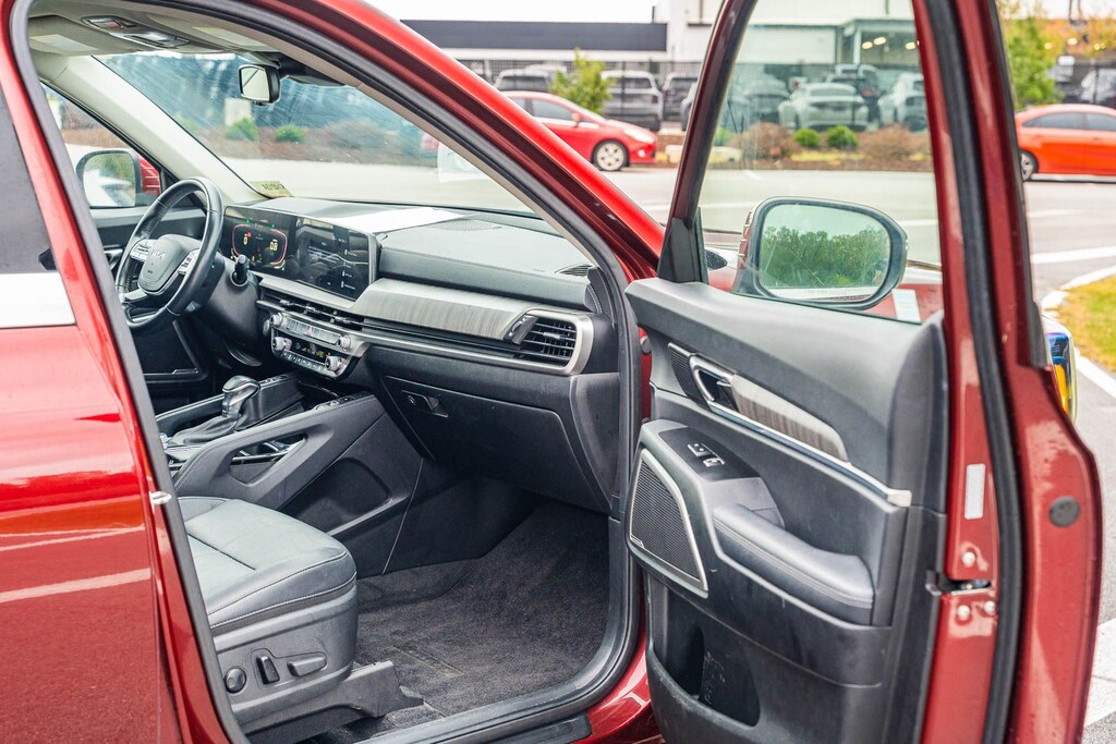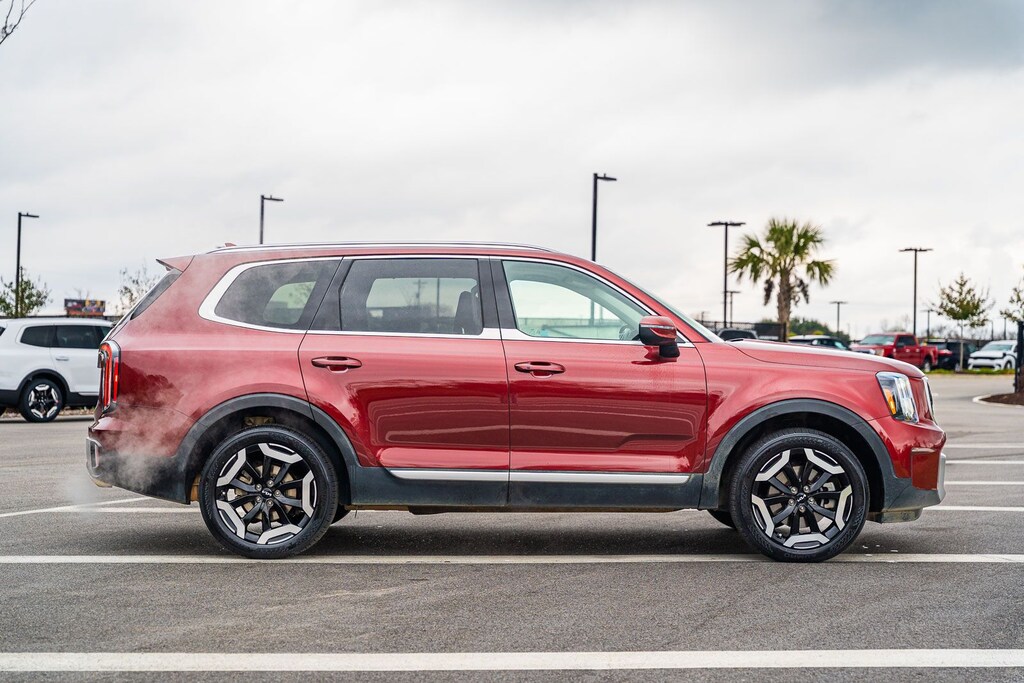 This Telluride EX includes EX Captain's Chair Package (2nd Row Captain Chairs), 3.510 Axle Ratio, 3rd row seats: split-bench, 4-Wheel Disc Brakes, 6 Speakers, ABS brakes, Air Conditioning, Alloy wheels, AM/FM radio: SiriusXM, Apple CarPlay & Android Auto, Auto High-beam Headlights, Auto-dimming Rear-View mirror, Automatic temperature control, Brake assist, Bumpers: body-color, Carpet Floor Mats, Compass, Delay-off headlights, Driver door bin, Driver vanity mirror, Dual front impact airbags, Dual front side impact airbags, Electronic Stability Control, Emergency communication system: 911 Connect, Exterior Parking Camera Rear, Four wheel independent suspension, Front anti-roll bar, Front Bucket Seats, Front Center Armrest, Front dual zone A/C, Front reading lights, Fully automatic headlights, Heated & Ventilated Front Bucket Seats, Heated door mirrors, Heated front seats, Illuminated entry, Knee airbag, Leather Seat Trim, Leather Shift Knob, Leather steering wheel, Low tire pressure warning, Navigation System, Occupant sensing airbag, Outside temperature display, Overhead airbag, Overhead console, Panic alarm, Passenger door bin, Passenger vanity mirror, Power door mirrors, Power driver seat, Power Liftgate, Power moonroof, Power passenger seat, Power steering, Power windows, Radio data system, Radio: AM/FM Display Audio System, Rear air conditioning, Rear anti-roll bar, Rear audio controls, Rear reading lights, Rear seat center armrest, Rear side impact airbag, Rear window defroster, Rear window wiper, Reclining 3rd row seat, Remote keyless entry, Roof rack: rails only, Security system, Smart Key w/ Push Button and Remote Start, Speed control, Speed-sensing steering, Split folding rear seat, Spoiler, Steering wheel mounted audio controls, Tachometer, Telescoping steering wheel, Tilt steering wheel, Traction control, Trip computer, Turn signal indicator mirrors, Variably intermittent wipers, Ventilated front seats, and Wheels: 20" x 7.5" Black Finish . While every effort has been made to ensure display of accurate data, the vehicle listings within this web site may not reflect all accurate vehicle items. All Inventory listed is subject to prior sale. The vehicle photo displayed may be an example only. Pricing throughout the web site does not include any options that may have been installed at the dealership. Please see the dealer for details. Vehicles may be in transit or currently in production. Some vehicles are shown with optional equipment. See the actual vehicle for complete accuracy of features, options & pricing. Because of the numerous possible combinations of vehicle models, styles, colors and options, the vehicle pictures on this site may not match your vehicle exactly; however, it will match as closely as possible. Some vehicle images shown are stock photos and may not reflect your exact choice of vehicle, color, trim and specification. Not responsible for pricing or typographical errors. Virtual Inventory, Available Configurations and In-Transit inventory contains vehicles that have not actually been manufactured. These vehicles show consumers sample vehicles that may be available. Pricing, Options, Color, and other data pertaining to these vehicles are provided for example only. All information pertaining to these vehicles should be independently verified through the dealer. 20/26 City/Highway MPG