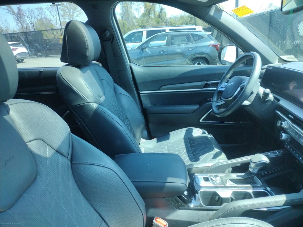 This Telluride SX X-Pro includes 10 Speakers, 3.648 Axle Ratio, 3rd row seats: split-bench, 4-Wheel Disc Brakes, ABS brakes, Air Conditioning, Alloy wheels, AM/FM radio: SiriusXM, Apple CarPlay & Android Auto, Auto High-beam Headlights, Auto-dimming Rear-View mirror, Auto-leveling suspension, Automatic temperature control, Brake assist, Bumpers: body-color, Cargo Cover, Cargo Tray Seat Back, Carpet Floor Mats, Compass, Delay-off headlights, Driver door bin, Driver vanity mirror, Dual front impact airbags, Dual front side impact airbags, Electronic Stability Control, Emergency communication system: 911 Connect, Exterior Parking Camera Rear, Four wheel independent suspension, Front anti-roll bar, Front Bucket Seats, Front Center Armrest, Front dual zone A/C, Front fog lights, Front reading lights, Fully automatic headlights, Garage door transmitter: HomeLink, harman/kardon® Speakers, Heated & Ventilated Front Bucket Seats, Heated door mirrors, Heated front seats, Heated steering wheel, Hybrid Cargo Net, Illuminated entry, Knee airbag, Leather Seat Trim, Leather Shift Knob, Leather steering wheel, Low tire pressure warning, Memory seat, Mud Guard Kit, Navigation System, Occupant sensing airbag, Outside temperature display, Overhead airbag, Overhead console, Panic alarm, Passenger door bin, Passenger vanity mirror, Power door mirrors, Power driver seat, Power Liftgate, Power moonroof, Power passenger seat, Power steering, Power windows, Radio data system, Radio: AM/FM harman/kardon Audio System, Rear air conditioning, Rear anti-roll bar, Rear audio controls, Rear reading lights, Rear side impact airbag, Rear window defroster, Rear window wiper, Reclining 3rd row seat, Remote keyless entry, Roof rack: rails only, Security system, Smart Key w/ Push Button and Remote Start, Speed control, Speed-sensing steering, Split folding rear seat, Spoiler, Steering wheel mounted audio controls, Tachometer, Telescoping steering wheel, Tilt steering wheel, Traction control, Trip computer, Turn signal indicator mirrors, Variably intermittent wipers, Ventilated front seats, and Wheels: 18" x 7.5" Black Finish X-PRO Exclusive . While every effort has been made to ensure display of accurate data, the vehicle listings within this web site may not reflect all accurate vehicle items. All Inventory listed is subject to prior sale. The vehicle photo displayed may be an example only. Pricing throughout the web site does not include any options that may have been installed at the dealership. Please see the dealer for details. Vehicles may be in transit or currently in production. Some vehicles are shown with optional equipment. See the actual vehicle for complete accuracy of features, options & pricing. Because of the numerous possible combinations of vehicle models, styles, colors and options, the vehicle pictures on this site may not match your vehicle exactly; however, it will match as closely as possible. Some vehicle images shown are stock photos and may not reflect your exact choice of vehicle, color, trim and specification. Not responsible for pricing or typographical errors. Virtual Inventory, Available Configurations and In-Transit inventory contains vehicles that have not actually been manufactured. These vehicles show consumers sample vehicles that may be available. Pricing, Options, Color, and other data pertaining to these vehicles are provided for example only. All information pertaining to these vehicles should be independently verified through the dealer.