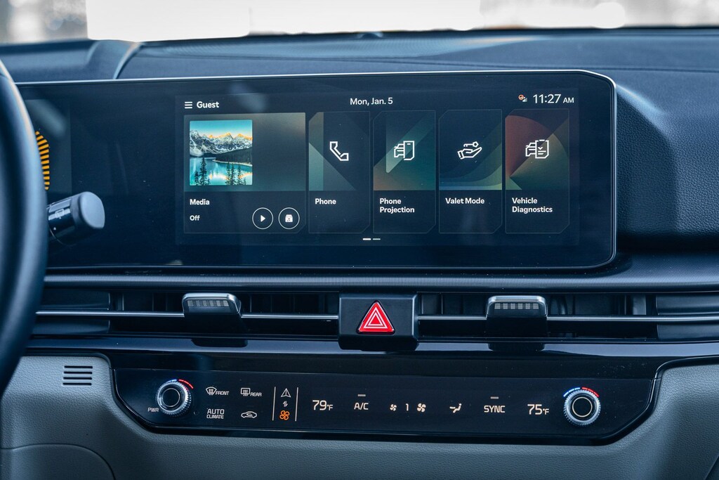 This Sportage EX includes 18" x 7.5J Alloy Wheels, 4-Wheel Disc Brakes, 6 Speakers, ABS brakes, Air Conditioning, Alloy wheels, Auto High-beam Headlights, Automatic temperature control, Brake assist, Bumpers: body-color, Carpeted Floor Mats, Delay-off headlights, Driver door bin, Driver vanity mirror, Dual front impact airbags, Dual front side impact airbags, Electronic Stability Control, Emergency communication system: Kia Connect (includes 1 year free trial), Four wheel independent suspension, Front anti-roll bar, Front Bucket Seats, Front Center Armrest, Front dual zone A/C, Fully automatic headlights, Heated door mirrors, Heated Front Bucket Seats, Heated front seats, Illuminated entry, Leather Shift Knob, Leather steering wheel, Low tire pressure warning, Occupant sensing airbag, Outside temperature display, Overhead airbag, Overhead console, Panic alarm, Passenger door bin, Passenger vanity mirror, Power door mirrors, Power driver seat, Power Liftgate, Power steering, Power windows, Radio: AM/FM/HD Audio System, Rain sensing wipers, Rear anti-roll bar, Rear seat center armrest, Rear side impact airbag, Rear window defroster, Rear window wiper, Remote keyless entry, Security system, Speed control, Speed-sensing steering, Split folding rear seat, Spoiler, Steering wheel mounted audio controls, Syntex Leatherette Seat Trim, Tachometer, Telescoping steering wheel, Tilt steering wheel, Traction control, Trip computer, Turn signal indicator mirrors, and Variably intermittent wipers . While every effort has been made to ensure display of accurate data, the vehicle listings within this web site may not reflect all accurate vehicle items. All Inventory listed is subject to prior sale. The vehicle photo displayed may be an example only. Pricing throughout the web site does not include any options that may have been installed at the dealership. Please see the dealer for details. Vehicles may be in transit or currently in production. Some vehicles are shown with optional equipment. See the actual vehicle for complete accuracy of features, options & pricing. Because of the numerous possible combinations of vehicle models, styles, colors and options, the vehicle pictures on this site may not match your vehicle exactly; however, it will match as closely as possible. Some vehicle images shown are stock photos and may not reflect your exact choice of vehicle, color, trim and specification. Not responsible for pricing or typographical errors. Virtual Inventory, Available Configurations and In-Transit inventory contains vehicles that have not actually been manufactured. These vehicles show consumers sample vehicles that may be available. Pricing, Options, Color, and other data pertaining to these vehicles are provided for example only. All information pertaining to these vehicles should be independently verified through the dealer. 25/33 City/Highway MPG