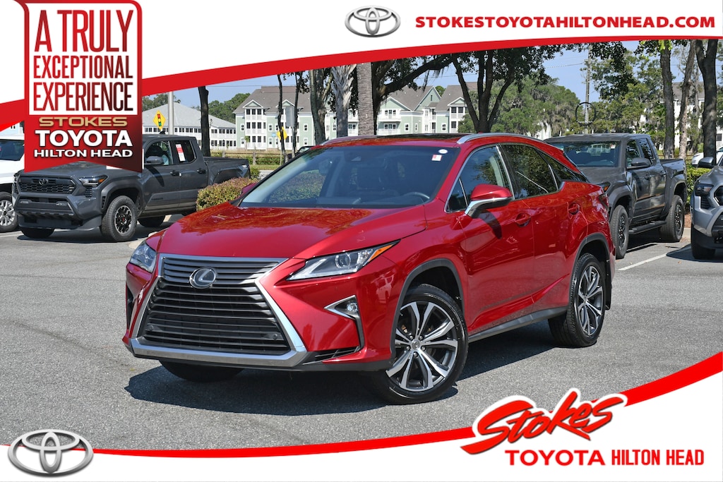 ***Stokes Toyota Hilton Head*** 2017 Lexus RX 350 in Matador Red Mica, Factory Equipped With: 12.3" Navigation System, 4-Way Power Lumbar, Accessory Package, Alloy Wheel Locks, Aluminum Roof Rails, Black Wheel Caps, Cargo Net, Carpet Cargo Mat, Driver Seat/Steering/Mirror Memory - 3 Settings, Front Illuminated Aluminum Scuff Plates, Heated Hard Maple Steering Wheel, Illuminated Aluminum & Wood Door Trim, Key Gloves, Lexus Enform App Suite, Lexus Enform Destinations, Luxury Package, Rear Armrest Storage Compartment, Rear Door Sunshades, Semi-Aniline Leather Seat Trim, Single-Disc DVD Changer, Stainless Steel Rear Bumper Protector, Wheels: 20" x 8" Super Chrome Machine Finished. CARFAX One-Owner. Clean CARFAX.
