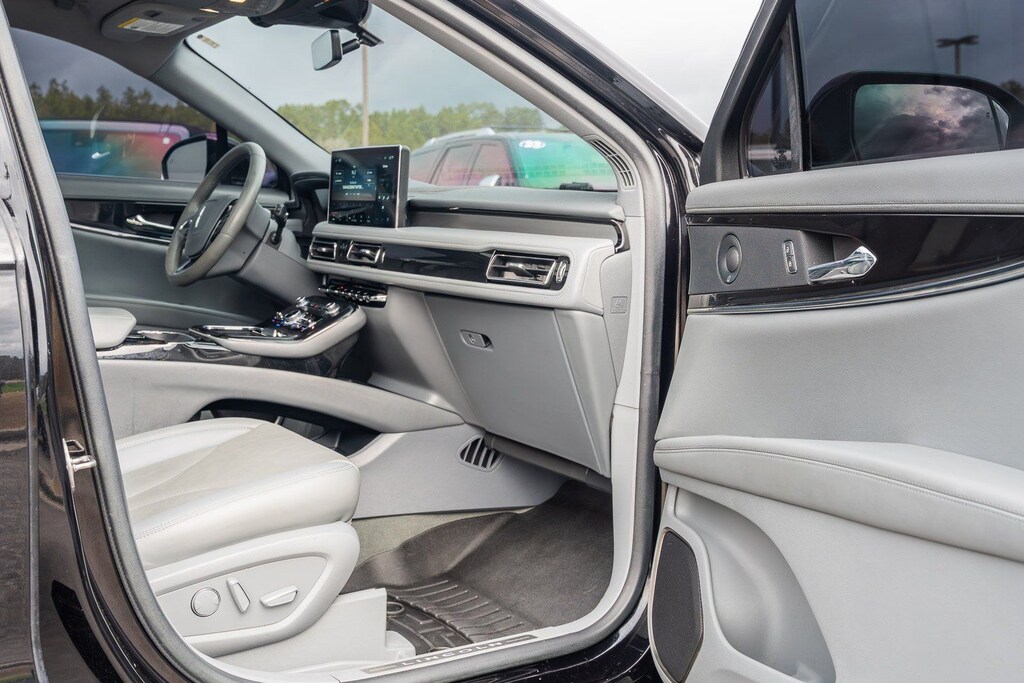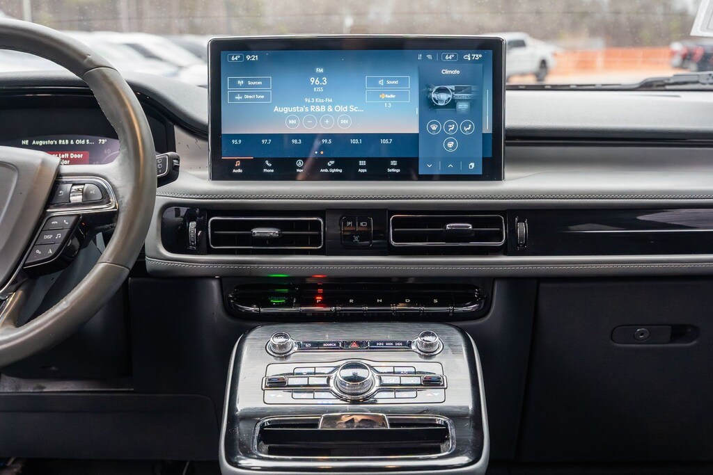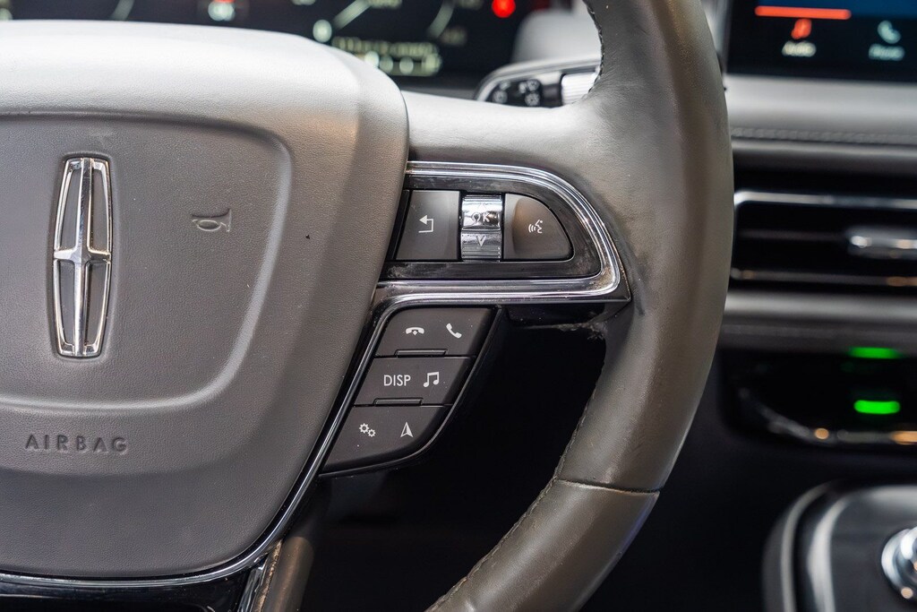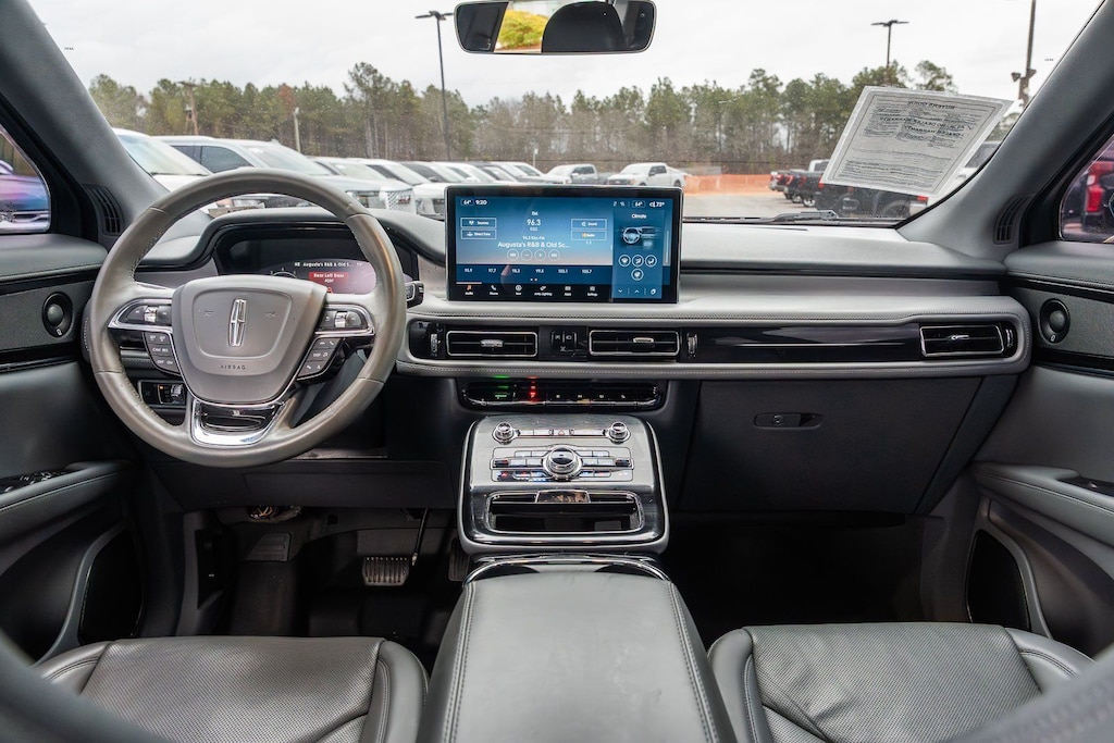 This vehicle comes equipped with Cargo Utility Package (110V/150W AC Power Outlet, Cargo Compartment w/Reversible Mat, Interior Cargo Cover, Molded Plastic Storage Bins, and Rear Cargo Management System), Equipment Group 200A, Monochromatic Package (20" Wheels, Black Lower Grille w/Painted Black Accent Trim, Body-Color Painted Nautilus Badging, Unique Body-Color Mesh Upper Grille, and Wheels: 20" Black Aluminum), 13 Speakers, 3.80 Axle Ratio, 4-Wheel Disc Brakes, ABS brakes, Air Conditioning, Alloy wheels, AM/FM radio: SiriusXM with 360L, Auto High-beam Headlights, Auto tilt-away steering wheel, Auto-dimming door mirrors, Auto-dimming Rear-View mirror, Automatic temperature control, Brake assist, Bumpers: body-color, Compass, Delay-off headlights, Driver door bin, Driver vanity mirror, Dual front impact airbags, Dual front side impact airbags, Electronic Stability Control, Emergency communication system: 911 Assist, Four wheel independent suspension, Front anti-roll bar, Front Bucket Seats, Front Center Armrest w/Storage, Front dual zone A/C, Front reading lights, Fully automatic headlights, Garage door transmitter: HomeLink, Heated door mirrors, Heated front seats, Heated rear seats, Heated steering wheel, Illuminated entry, Knee airbag, Leather steering wheel, Linear Brushed Aluminum Applique, Low tire pressure warning, Memory seat, Navigation System, Occupant sensing airbag, Outside temperature display, Overhead airbag, Overhead console, Panic alarm, Passenger door bin, Passenger vanity mirror, Power door mirrors, Power driver seat, Power Liftgate, Power moonroof: Panoramic Vista Roof, Power passenger seat, Power steering, Power windows, Prem Lthr-Trimmed Heated/Ventilated Captain Seats, Radio data system, Radio: Revel AM/FM/HD Audio System, Rain sensing wipers, Rear anti-roll bar, Rear reading lights, Rear seat center armrest, Rear window defroster, Rear window wiper, Remote keyless entry, Satin Roof Rack Side Rails w/o Crossbars, Security system, Speed control, Speed-sensing steering, Speed-Sensitive Wipers, Split folding rear seat, Spoiler, Steering wheel memory, Steering wheel mounted A/C controls, Steering wheel mounted audio controls, SYNC 4 w/Enhanced Voice Recognition, Tachometer, Telescoping steering wheel, Tilt steering wheel, Traction control, Trip computer, Turn signal indicator mirrors, Variably intermittent wipers, Ventilated front seats, and Wheels: 18" Premium Painted Bright Machined Alum.