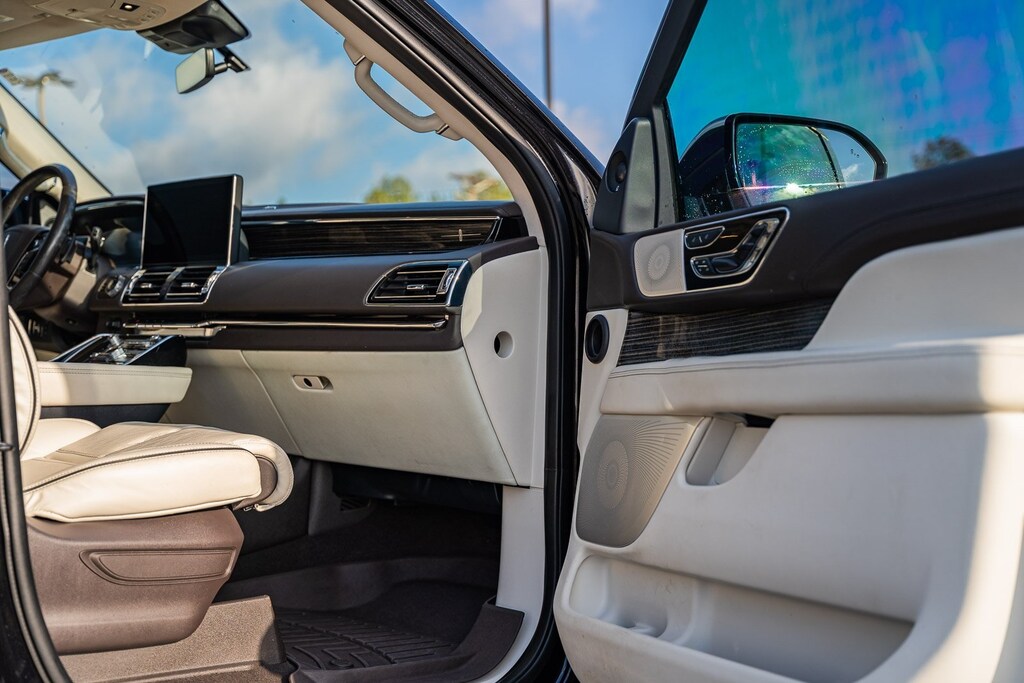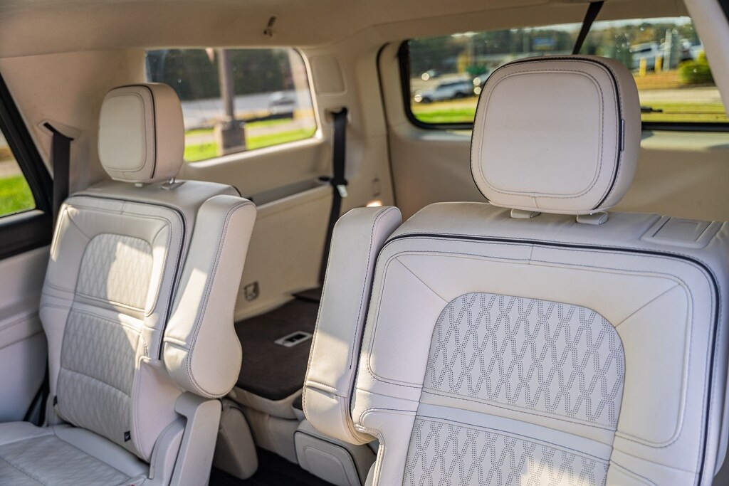 This vehicle comes equipped with Equipment Group 800A Black Label, Heavy-Duty Trailer Tow Package (Class IV w/4-Pin & 7-Pin Connectors, Front Tow Hooks, Pro-Trailer Backup Assist 2.0, Smart Trailer Tow, Tiered Cargo Area Management System, Trailer Brake Controller, and Trailer Sway Control), 4WD, Alpine W/Black Stitch Leather, 28 Speakers, 3.73 Axle Ratio, 3rd row seats: split-bench, 4-Wheel Disc Brakes, ABS brakes, Active Park Assist 2.0 Prep Kit, Adaptive suspension, Adjustable pedals, Air Conditioning, Alloy wheels, AM/FM radio: SiriusXM with 360L, Audio memory, Auto High-beam Headlights, Auto Start-Stop Technology, Auto tilt-away steering wheel, Auto-dimming door mirrors, Auto-dimming Rear-View mirror, Auto-leveling suspension, Automatic temperature control, Bodyside moldings, Brake assist, Bumpers: body-color, Compass, Delay-off headlights, Driver door bin, Driver vanity mirror, Driver's Seat Mounted Armrest, Dual front impact airbags, Dual front side impact airbags, Electronic Stability Control, Emergency communication system: 911 Assist, Exterior Parking Camera Rear, Four wheel independent suspension, Front anti-roll bar, Front Bucket Seats, Front dual zone A/C, Front fog lights, Front reading lights, Fully automatic headlights, Garage door transmitter, Genuine wood console insert, Genuine wood door panel insert, Hands-Free Liftgate Delete, Head restraints memory, Heads-Up Display, Heated door mirrors, Heated front seats, Heated rear seats, Heated steering wheel, HVAC memory, Illuminated entry, Leather steering wheel, Low tire pressure warning, Memory seat, Navigation system: Connected Navigation (3-year trial), Occupant sensing airbag, Outside temperature display, Overhead airbag, Overhead console, Panic alarm, Passenger door bin, Passenger seat mounted armrest, Passenger vanity mirror, Pedal memory, Power adjustable front head restraints, Power adjustable rear head restraints, Power door mirrors, Power driver seat, Power Liftgate, Power moonroof: Panoramic Vista Roof, Power passenger seat, Power steering, Power windows, Radio data system, Radio: Revel Ultima 3D AM/FM/HD/MP3 Audio System, Rain sensing wipers, Rear air conditioning, Rear anti-roll bar, Rear audio controls, Rear reading lights, Rear window defroster, Rear window wiper, Reclining 3rd row seat, Remote keyless entry, Security system, SiriusXM w/360L, Slow Climb Drive Mode, Speed control, Speed-sensing steering, Speed-Sensitive Wipers, Split folding rear seat, Spoiler, Steering wheel memory, Steering wheel mounted audio controls, SYNC 4 Communications & Entertainment System, Tachometer, Telescoping steering wheel, Tilt steering wheel, Traction control, Trip computer, Turn signal indicator mirrors, Variably intermittent wipers, Venetian Lthr Auto Htd/Ventilatd Capt's Chairs (B), Ventilated front seats, Ventilated rear seats, Voice-Activated Touchscreen Navigation System, and Wheels: 22" 14-Spoke Bright Machined Aluminum.