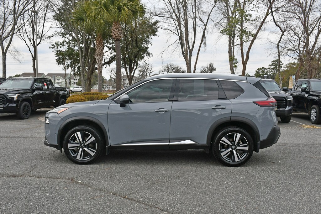 ***Stokes Toyota Hilton Head*** 2022 Nissan Rogue SL in Boulder Gray, Factory Equipped With. 19" Aluminum Alloy Wheels, ABS brakes, Air Conditioning, Automatic temperature control, Bose Premium Audio System, Dual front impact airbags, Dual front side impact airbags, Front Bucket Seats, Front Center Armrest, Front, Side & Rear Sonar, Heated Front Bucket Seats, Knee airbag, Low tire pressure warning, Nissan Door To Door Navigation, Power driver seat, Power Liftgate, Power moonroof, Power steering, ProPILOT Assist w/Navi-link, Rear air conditioning, Rear Door Sunshades, SiriusXM Traffic, SL Premium Package, Steering wheel mounted audio controls, Turn signal indicator mirrors. CARFAX One-Owner. Clean CARFAX.