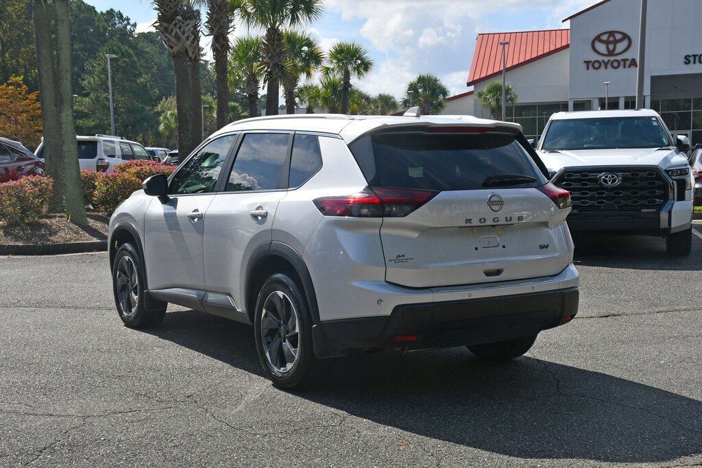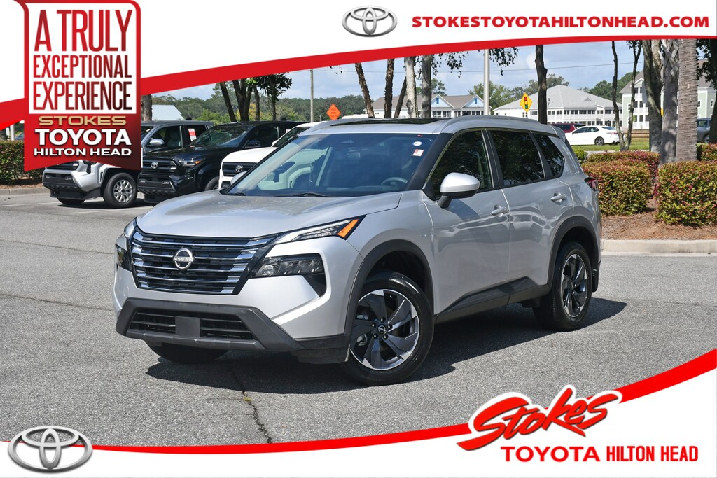 ***Stokes Toyota Hilton Head*** Panoramic Roof** 2024 Nissan Rogue Rogue SV in Brilliant Silver Metallic, factory Equipped With. Heated Front Seats, Heated Leather-Wrapped Steering Wheel, Leatherette Door Trim Inserts w/Stitch, Panoramic Moonroof, Prima-Tex Leatherette Seat Trim w/Perforation, Rear Door Sunshades, Rear Personal Lights, Silver Painted Roof Rails, SV Premium Package. CARFAX One-Owner. Clean CARFAX.