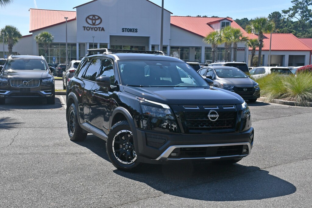 ***Stokes Toyota Hilton Head*** 2025 Nissan Pathfinder Rock Creek in Super Black, Factory Equipped With: Power Windows, Power Locks, Cruise Control, Remote Keyless Entry, 8-Way Power Drivers Seat, Integrated Back Up Camera, Alloy Wheels, 4X4, 6 Speakers, ABS brakes, Air Conditioning, Automatic temperature control, Dual front impact airbags, Dual front side impact airbags, Low tire pressure warning, Power driver seat, Power Liftgate, Power steering, Rear air conditioning, Steering wheel mounted audio controls. Clean CARFAX.
