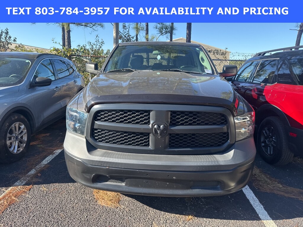 This vehicle comes equipped with Popular Equipment Group (2nd Row In Floor Storage Bins, 40/20/40 Split Bench Seat, Carpet Floor Covering, Cloth 40/20/40 Bench Seat, Front Armrest w/3 Cupholders, Front Floor Mats, Manual Adjust Seats, Rear Floor Mats, Rear Folding Seat, Remote Keyless Entry w/All-Secure, and Storage Tray), Quick Order Package 27B Tradesman, Tradesman Black Package (DISC) (Black Exterior Truck Badging, Black Grille w/Black RAM's Head, Black Headlamp Bezels, Black RAM Head Tailgate Badge, Semi-Gloss Black Hub, and Wheels: 17" x 7" Semi-Gloss Black Aluminum (DISC)), Tradesman Package, 17" x 7" Steel Wheels, 4-Wheel Disc Brakes, 6 Speakers, ABS brakes, Active Grille Shutters, Air Conditioning, AM/FM radio, Anti-Spin Differential Rear Axle, Black Exterior Mirrors, Brake assist, Center Hub, Compass, Delay-off headlights, Driver door bin, Dual front impact airbags, Dual front side impact airbags, Electronic Shift, Electronic Stability Control, Exterior Mirrors w/Heating Element, For More Info, Call 800-643-2112, Front anti-roll bar, Front Center Armrest, Front wheel independent suspension, Fully automatic headlights, Heated door mirrors, Heavy Duty Vinyl 40/20/40 Split Bench Seat, Low tire pressure warning, No Satellite Coverage w/HI/AK/PR/VI/GU, Occupant sensing airbag, Outside temperature display, Overhead airbag, Overhead console, ParkView Rear Back-Up Camera, Passenger door bin, Power door mirrors, Power steering, Power windows, Radio data system, Radio: Uconnect 3 w/5" Display, Rear anti-roll bar, Rear seat center armrest, Rear step bumper, Remote USB Port - Charge Only, Rotary Shifter-Black, SiriusXM Radio Service, SiriusXM Satellite Radio, Speed control, Tachometer, Tilt steering wheel, Tip Start, Traction control, Variably intermittent wipers, and Voltmeter.