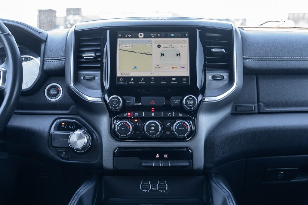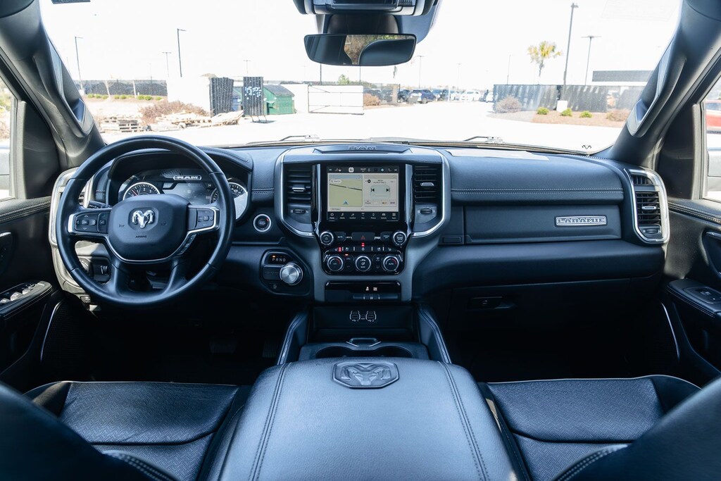 This 1500 Laramie includes Quick Order Package 27H Laramie, 10 Speakers, 3 Rear Seat Head Restraints, 3.21 Rear Axle Ratio, 4 Way Front Headrests, 4-Wheel Disc Brakes, 48V Belt Starter Generator, 4G LTE Wi-Fi Hot Spot, ABS brakes, Air Conditioning, Alloy wheels, AM/FM radio: SiriusXM with 360L, Apple CarPlay, Apple CarPlay/Android Auto, Audio memory, Auto-dimming door mirrors, Auto-Dimming Exterior Driver Mirror, Auto-dimming Rear-View mirror, Automatic temperature control, Brake assist, Bumpers: chrome, Chrome Exterior Mirrors, Compass, Connected Travel & Traffic Services, Connectivity - US/Canada, Convex Wide-Angle Exterior Mirror Insert, Delay-off headlights, Driver door bin, Driver Seat Memory, Driver vanity mirror, Dual front impact airbags, Dual front side impact airbags, Electronic Stability Control, Exterior Mirrors Courtesy Lamps, Exterior Mirrors w/Heating Element, Exterior Mirrors w/Memory, Exterior Mirrors w/Supplemental Signals, Exterior Parking Camera Rear, For Details, Visit DriveUconnect.com, For More Info, Call 800-643-2112, Front anti-roll bar, Front Center Armrest w/Storage, Front dual zone A/C, Front fog lights, Front License Plate Bracket, Front reading lights, Front Seat Back Map Pockets, Front wheel independent suspension, Fully automatic headlights, Garage door transmitter, Global Telematics Box Module (TBM), Google Android Auto, GPS Navigation, HD Radio, Heated door mirrors, Heated Front Seats, Heated front seats, Heated Steering Wheel, Heated steering wheel, Illuminated entry, Integrated Voice Command w/Bluetooth, Leather steering wheel, Leather Trim 40/20/40 Bench Seat, Low tire pressure warning, Manufacturer's Statement of Origin, Memory seat, Navigation System, Occupant sensing airbag, Outside temperature display, Overhead airbag, Overhead console, Panic alarm, Passenger door bin, Passenger vanity mirror, Power 2-Way Driver Lumbar Adjust, Power 2-Way Passenger Lumbar Adjust, Power 8-Way Driver & Passenger Seats, Power door mirrors, Power driver seat, Power passenger seat, Power steering, Power windows, Power-Folding Mirrors, Radio data system, Radio: Uconnect 5 Nav w/8.4" Display, RAM Grille Badge - Chrome, Rear 60/40 Folding Seat, Rear anti-roll bar, Rear seat center armrest, Rear step bumper, Remote keyless entry, Security system, SiriusXM Radio Service, SiriusXM w/360L, Speed control, Split folding rear seat, Steering wheel mounted audio controls, Tachometer, Telescoping steering wheel, Tilt steering wheel, Traction control, Trip computer, Turn signal indicator mirrors, Variably intermittent wipers, Ventilated Front Seats, Ventilated front seats, Voltmeter, Wheels: 18" x 8" Aluminum Base Painted, and Wheels: 20" x 9" Premium Paint/Polished . While every effort has been made to ensure display of accurate data, the vehicle listings within this web site may not reflect all accurate vehicle items. All Inventory listed is subject to prior sale. The vehicle photo displayed may be an example only. Pricing throughout the web site does not include any options that may have been installed at the dealership. Please see the dealer for details. Vehicles may be in transit or currently in production. Some vehicles are shown with optional equipment. See the actual vehicle for complete accuracy of features, options & pricing. Because of the numerous possible combinations of vehicle models, styles, colors and options, the vehicle pictures on this site may not match your vehicle exactly; however, it will match as closely as possible. Some vehicle images shown are stock photos and may not reflect your exact choice of vehicle, color, trim and specification. Not responsible for pricing or typographical errors. Virtual Inventory, Available Configurations and In-Transit inventory contains vehicles that have not actually been manufactured. These vehicles show consumers sample vehicles that may be available. Pricing, Options, Color, and o