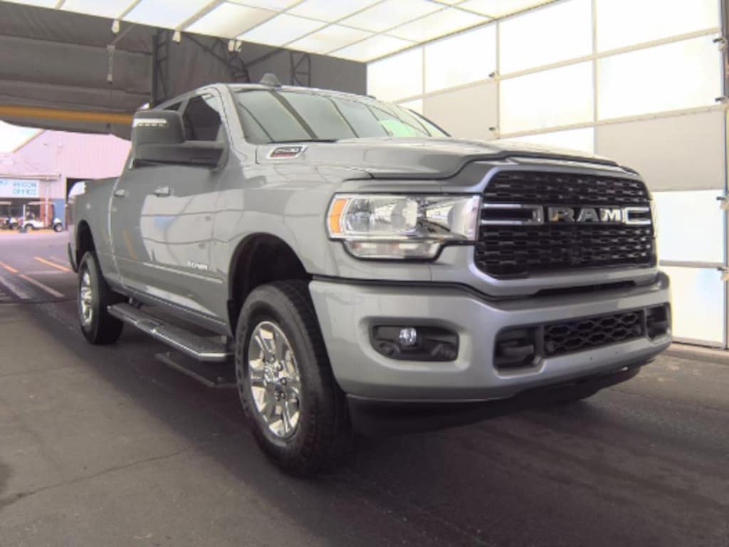 This 2500 Big Horn includes Bed Utility Group (LED Bed Lighting, MOPAR Deployable Bed Step, and MOPAR Spray In Bedliner), Level 1 Equipment Group (2 Way Rear Headrest Seat, 2nd Row In Floor Storage Bins, 4 Way Front Headrests, 40/20/40 Split Bench Seat, 4G LTE Wi-Fi Hot Spot, 8.4" Touchscreen Display, Apple CarPlay, Auto Power-Folding Mirrors, Big Horn IP Badge, Black Exterior Mirrors, Bluetooth Handsfree Phone & Audio, Center Hub, Connectivity - US/Canada, Dual Glove Boxes, Exterior Mirrors Courtesy Lamps, Exterior Mirrors w/Heating Element, Exterior Mirrors w/Supplemental Signals, Foam Bottle Insert (Door Trim Panel), Footwell Courtesy Lamp, For Details, Visit DriveUconnect.com, For More Info, Call 800-643-2112, Forward & Reverse Utility Lights, Front Armrest w/Cupholders, Front Center Seat Cushion Storage, Front Fog Lamps, Front Seat Back Map Pockets, Global Telematics Box Module (TBM), Glove Box Lamp, Google Android Auto, GPS Antenna Input, Integrated Center Stack Radio, Integrated Voice Command w/Bluetooth, Leather Wrapped Steering Wheel, Locking Lower Glove Box, Manual Adjust 4-Way Front Passenger Seat, Mirror Running Lights, Power 2-Way Driver Lumbar Adjust, Power Adjust 8-Way Driver Seat, Power Adjust Mirrors, Power Adjustable Convex Aux Mirrors, Power Heated Fold Telescope Mirrors, Power Telescoping Mirrors, Rear 60/40 Folding Seat, Rear Dome w/On/Off Switch Lamp, Remote USB Port - Charge Only, Selectable Tire Fill Alert, SiriusXM Radio Service, SiriusXM Satellite Radio, Steering Wheel Mounted Audio Controls, Storage Tray, and Wheels: 18" x 8.0" Polished Aluminum), Protection Group (Tow Hooks), Quick Order Package 2GZ Big Horn, Sport Appearance Package (Black Interior Accents, Body Color Door Handles, Body Color Grille Surround, Painted Front Bumper, Painted Rear Bumper, ParkSense Front/Rear Park Assist System, and Sport Decal), 12" Touchscreen Display, 3.73 Axle Ratio, 4-Wheel Disc Brakes, 6 Speakers, 9 Alpine Speakers w/Subwoofer, ABS brakes, Active Noise Control System, Air Conditioning, Air Conditioning ATC w/Dual Zone Control, Alexa Built-In, All R1 High Radios, All Radio Equipped Vehicles, Anti-Spin Differential Rear Axle, Brake assist, Bumpers: chrome, Center Stack Storage Drawer, Chrome Flat Cab-Length Side Steps, Cloth 40/20/40 Bench Seat, Compass, Connected Travel & Traffic Services, Delay-off headlights, Disassociated Touchscreen Display, Driver door bin, Dual front impact airbags, Dual front side impact airbags, Electronic Stability Control, Electronically Controlled Throttle, Emergency communication system: SiriusXM Guardian, Front anti-roll bar, Front Center Armrest w/Storage, Front License Plate Bracket, Front reading lights, Fully automatic headlights, GPS Navigation, HD Radio, Heated door mirrors, Illuminated entry, Low tire pressure warning, Manual Adjust 4-Way Driver Seat, Manufacturer's Statement of Origin, Occupant sensing airbag, Off-Road Information Pages, Outside temperature display, Overhead airbag, Overhead console, Panic alarm, ParkView Rear Back-Up Camera, Passenger door bin, Passenger vanity mirror, Power door mirrors, Power steering, Power windows, Premium Cloth 40/20/40 Bench Seat (DISC), Radio data system, Radio: Uconnect 3 w/5" Display, Radio: Uconnect 5 Nav w/12.0" Display, Radio: Uconnect 5 W w/8.4" Display, Rear anti-roll bar, Rear Folding Seat, Rear seat center armrest, Rear step bumper, Remote keyless entry, SiriusXM w/360L, Speed control, Tachometer, Tilt steering wheel, Tip Start, Traction control, Trailer Tow Pages, Trip computer, Turn signal indicator mirrors, Variably intermittent wipers, Voltmeter, and Wheels: 18" x 8.0" Steel Chrome Clad . While every effort has been made to ensure display of accurate data, the vehicle listings within this web site may not reflect all accurate vehicle items. All Inventory listed is subject to prior sale