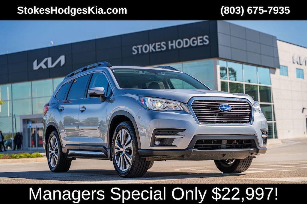This Ascent Limited includes Popular Package #2 (All-Weather Floor Liners, Auto-Dimming Exterior Mirror w/Approach Light, Cargo Tray, Rear Bumper Cover, and Splash Guards), Technology Package (Cargo Area Cover, Dual Glass Panoramic Power Moonroof, and Radio: Subaru STARLINK 8.0" Multimedia Nav System), 3rd row seats: bench, 4-Wheel Disc Brakes, 6 Speakers, ABS brakes, Air Conditioning, Alloy wheels, AM/FM radio: SiriusXM, Auto High-beam Headlights, Auto-dimming Rear-View mirror, Automatic temperature control, Axle Ratio: 4.44, Brake assist, Bumpers: body-color, Cargo Net, CD player, Compass, Cup Holder Insert, Delay-off headlights, Driver door bin, Driver vanity mirror, Dual front impact airbags, Dual front side impact airbags, Electronic Stability Control, Emergency communication system: STARLINK Safety and Security (Subscription Required), Exterior Parking Camera Rear, Four wheel independent suspension, Front anti-roll bar, Front Bucket Seats, Front Center Armrest, Front dual zone A/C, Front fog lights, Front reading lights, Fully automatic headlights, Garage door transmitter: HomeLink, Heated door mirrors, Heated Front Bucket Seats, Heated front seats, Heated rear seats, Heated steering wheel, Illuminated entry, Knee airbag, Low tire pressure warning, Memory seat, Occupant sensing airbag, Outside temperature display, Overhead airbag, Overhead console, Panic alarm, Passenger door bin, Passenger vanity mirror, Perforated Leather-Trimmed Upholstery, Power door mirrors, Power driver seat, Power Liftgate, Power passenger seat, Power steering, Power windows, Radio data system, Radio: Subaru STARLINK 8.0" Multimedia Plus System, Rear air conditioning, Rear anti-roll bar, Rear reading lights, Rear window defroster, Rear window wiper, Reclining 3rd row seat, Remote keyless entry, Security system, Speed control, Split folding rear seat, Spoiler, STARLINK/Apple CarPlay/Android Auto, Steering wheel mounted audio controls, Tachometer, Telescoping steering wheel, Tilt steering wheel, Traction control, Trip computer, Turn signal indicator mirrors, Variably intermittent wipers, and Wheels: 20" x 7.5 J Dk Gray Alloy w/Machine Finish . While every effort has been made to ensure display of accurate data, the vehicle listings within this web site may not reflect all accurate vehicle items. All Inventory listed is subject to prior sale. The vehicle photo displayed may be an example only. Pricing throughout the web site does not include any options that may have been installed at the dealership. Please see the dealer for details. Vehicles may be in transit or currently in production. Some vehicles are shown with optional equipment. See the actual vehicle for complete accuracy of features, options & pricing. Because of the numerous possible combinations of vehicle models, styles, colors and options, the vehicle pictures on this site may not match your vehicle exactly; however, it will match as closely as possible. Some vehicle images shown are stock photos and may not reflect your exact choice of vehicle, color, trim and specification. Not responsible for pricing or typographical errors. Virtual Inventory, Available Configurations and In-Transit inventory contains vehicles that have not actually been manufactured. These vehicles show consumers sample vehicles that may be available. Pricing, Options, Color, and other data pertaining to these vehicles are provided for example only. All information pertaining to these vehicles should be independently verified through the dealer. 20/26 City/Highway MPG