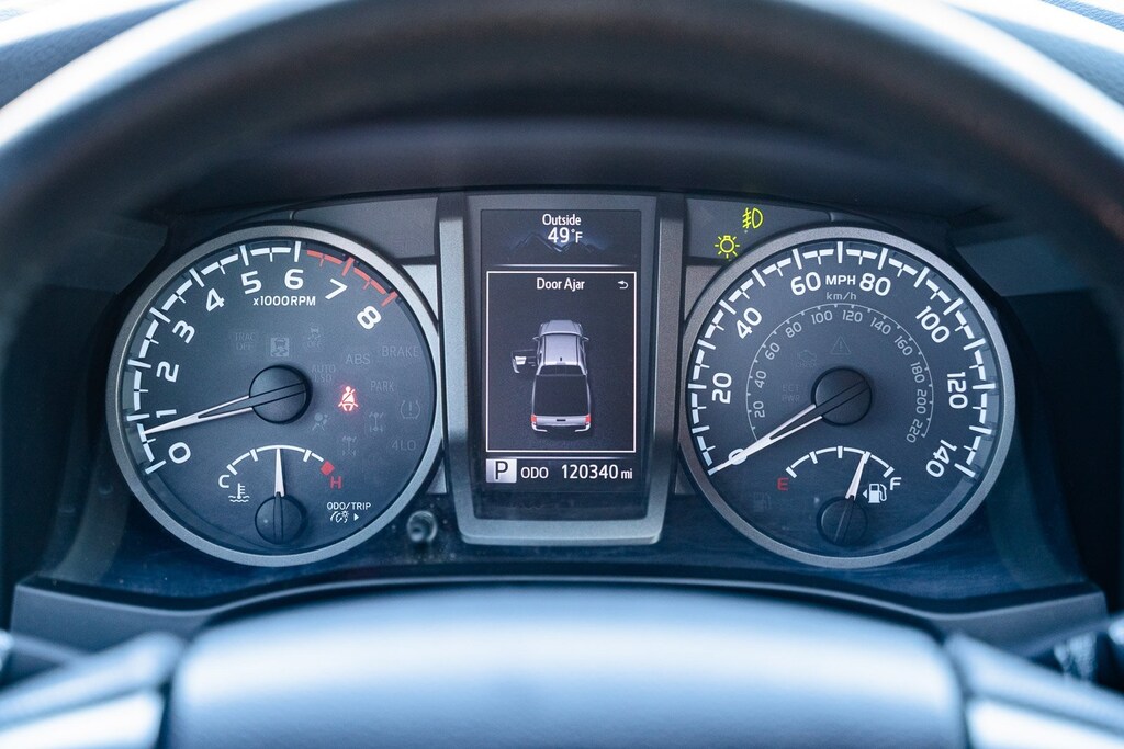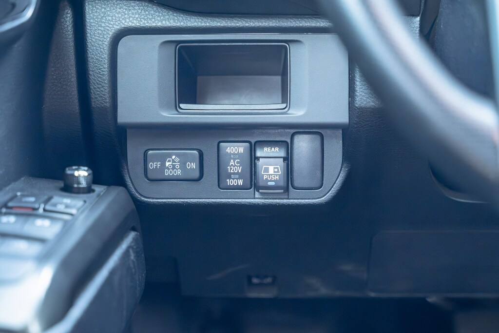 This vehicle comes equipped with 4WD, ABS brakes, Air Conditioning, Alloy wheels, Compass, Electronic Stability Control, Illuminated entry, Low tire pressure warning, Remote keyless entry, Traction control, 120V/400W Deck Mounted AC Power, 6 Speakers, AM/FM radio: SiriusXM, Anti-whiplash front head restraints, Auto-Dimming Inside Rear-View Mirror w/Compass, Auto-dimming Rear-View mirror, Axle Ratio: 3.91, Brake assist, Bumpers: body-color, CD player, Cruise Control, Driver door bin, Dual front impact airbags, Dual front side impact airbags, Engine Immobilizer, Exterior Parking Camera Rear, Fabric Seat Trim (FD), Front anti-roll bar, Front Bucket Seats, Front Center Armrest, Front fog lights, Front reading lights, Front wheel independent suspension, Knee airbag, Leather Shift Knob, LED Daytime Running Lights, Occupant sensing airbag, ORP Black Overfenders, Outside temperature display, Overhead airbag, Overhead console, Panic alarm, Passenger door bin, Power door mirrors, Power Sliding Rear Window w/Privacy Glass, Power steering, Power windows, Radio: Entune Premium w/AM/FM/CD/Nav/App Suite, Rear step bumper, Remote Keyless Entry System, Security system, Smart Key w/Push Button Start, Speed control, Speed-sensing steering, Split folding rear seat, Steering wheel mounted audio controls, Tachometer, Telescoping steering wheel, Tilt steering wheel, TRD-Tuned Off-Road Suspension, Trip computer, Turn signal indicator mirrors, Variable Intermittent Wipers, Variably intermittent wipers, Wheels: 16" x 7" Machined Contrast Alloy, and Wide Angle Front Fog Lamps.