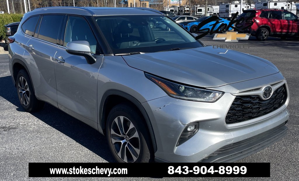 NAVIGATION SYSTEM, BACKUP CAMERA, AGGRESSIVE PRICING, ALLOY WHEELS, BLUETOOTH, HEAT PACKAGE, LEATHER SEATS, MEMORY PACKAGE, POWER PACKAGE, REMOTE START, SUNROOF/MOONROOF, TOW PACKAGE, APPLE CAR PLAY. Celestial Silver Metallic 2021 Toyota Highlander XLE FWD 8-Speed Automatic 3.5L V6 DOHCOdometer is 4647 miles below market average! 21/29 City/Highway MPG Recent Arrival!**** Stokes Chevrolet is not responsible for any price discrepancies, statements of condition, or incorrect equipment listed on a vehicle. Vehicles may have minor road chips, light scratches, wheel scuffs, etc. Depending on the age of the vehicle, normal wear and tear should be anticipated. We may or may not have all the keys and floor mats. We will be happy to obtain extra oneâs for you at our dealer cost. Price does include all applicable rebates and incentives offered by manufacturer and/or finance source and $1000 trade assistance, must have trade to qualify. Price does not include dealer addendum *Reconditioning/UCI. The full cash price charged at any dealership depends on many factors, including all products and services bought with the vehicle. It is the customer's sole responsibility to verify the existence and condition of any equipment listed. Neither the dealership nor dealer website provider are responsible for misprints on prices or equipment. This site, and all information and materials appearing on it, are presented to the user as is without warranty of any kind, either express or implied. Customers must mention this advertisement to receive the advertised price. While great effort is made to ensure the accuracy of the information on this site, errors do occur so please verify information with a customer service rep. This is easily done by calling us at (843)761-8084 or by visiting us at the dealership. Anyone that submits a form online that includes a phone number has agreed to all forms of contact, which would include, calling and texting.. All vehicles are subject to prior sale. Prices shown do not tax, tag, registration, title, license charges and $599.50 Closing Fee on all vehicles. Vehicles shown at different locations are not currently in our inventory (Not in Stock) but can be made available to you at our location within a reasonable date from the time of your request, not to exceed one week.