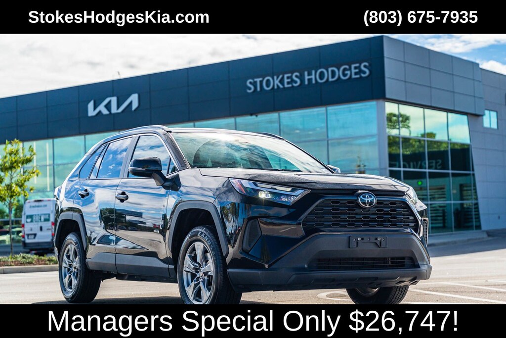 This RAV4 XLE includes Black Cloth, 4-Wheel Disc Brakes, 6 Speakers, ABS brakes, Air Conditioning, Alloy wheels, AM/FM radio: SiriusXM, Auto High-beam Headlights, Automatic temperature control, Axle Ratio: 3.177, Brake assist, Bumpers: body-color, Delay-off headlights, Driver door bin, Driver vanity mirror, Dual front impact airbags, Dual front side impact airbags, Electronic Stability Control, Emergency communication system: Safety Connect (10-year trial), Exterior Parking Camera Rear, Fabric Seat Trim, Four wheel independent suspension, Front anti-roll bar, Front Bucket Seats, Front Center Armrest, Front dual zone A/C, Front reading lights, Fully automatic headlights, Heated door mirrors, Illuminated entry, Knee airbag, Low tire pressure warning, Occupant sensing airbag, Outside temperature display, Overhead airbag, Overhead console, Panic alarm, Passenger door bin, Passenger vanity mirror, Power door mirrors, Power driver seat, Power steering, Power windows, Radio data system, Radio: AM/FM/XM Audio System, Rear anti-roll bar, Rear seat center armrest, Rear window defroster, Rear window wiper, Remote keyless entry, Speed control, Speed-sensing steering, Split folding rear seat, Spoiler, Steering wheel mounted audio controls, Tachometer, Telescoping steering wheel, Tilt steering wheel, Traction control, Trip computer, Turn signal indicator mirrors, Variably intermittent wipers, and Wheels: 17" 5-Spoke Silver Alloy . While every effort has been made to ensure display of accurate data, the vehicle listings within this web site may not reflect all accurate vehicle items. All Inventory listed is subject to prior sale. The vehicle photo displayed may be an example only. Pricing throughout the web site does not include any options that may have been installed at the dealership. Please see the dealer for details. Vehicles may be in transit or currently in production. Some vehicles are shown with optional equipment. See the actual vehicle for complete accuracy of features, options & pricing. Because of the numerous possible combinations of vehicle models, styles, colors and options, the vehicle pictures on this site may not match your vehicle exactly; however, it will match as closely as possible. Some vehicle images shown are stock photos and may not reflect your exact choice of vehicle, color, trim and specification. Not responsible for pricing or typographical errors. Virtual Inventory, Available Configurations and In-Transit inventory contains vehicles that have not actually been manufactured. These vehicles show consumers sample vehicles that may be available. Pricing, Options, Color, and other data pertaining to these vehicles are provided for example only. All information pertaining to these vehicles should be independently verified through the dealer. 27/34 City/Highway MPG