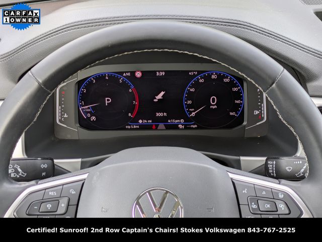 The Atlas has an infotainment system that is easy to use and intuitive, and it allows for swiping and pinch zooming. Apple Car Play is awesome! Surprisingly, some manufacturers have not integrated this feature at this time. The digital instrument panel has a very nice, modern look, and it offers 5 or 6 different views. One of the really cool things about the Atlas- you can display the nav map in the middle of the instrument panel. Additionally, you can make the map bigger and the gauges smaller, which allows you to see more map detail- a really nice option. The car even has an altimeter, which is really cool to me (I’m a pilot by trade). Not so much for my wife…